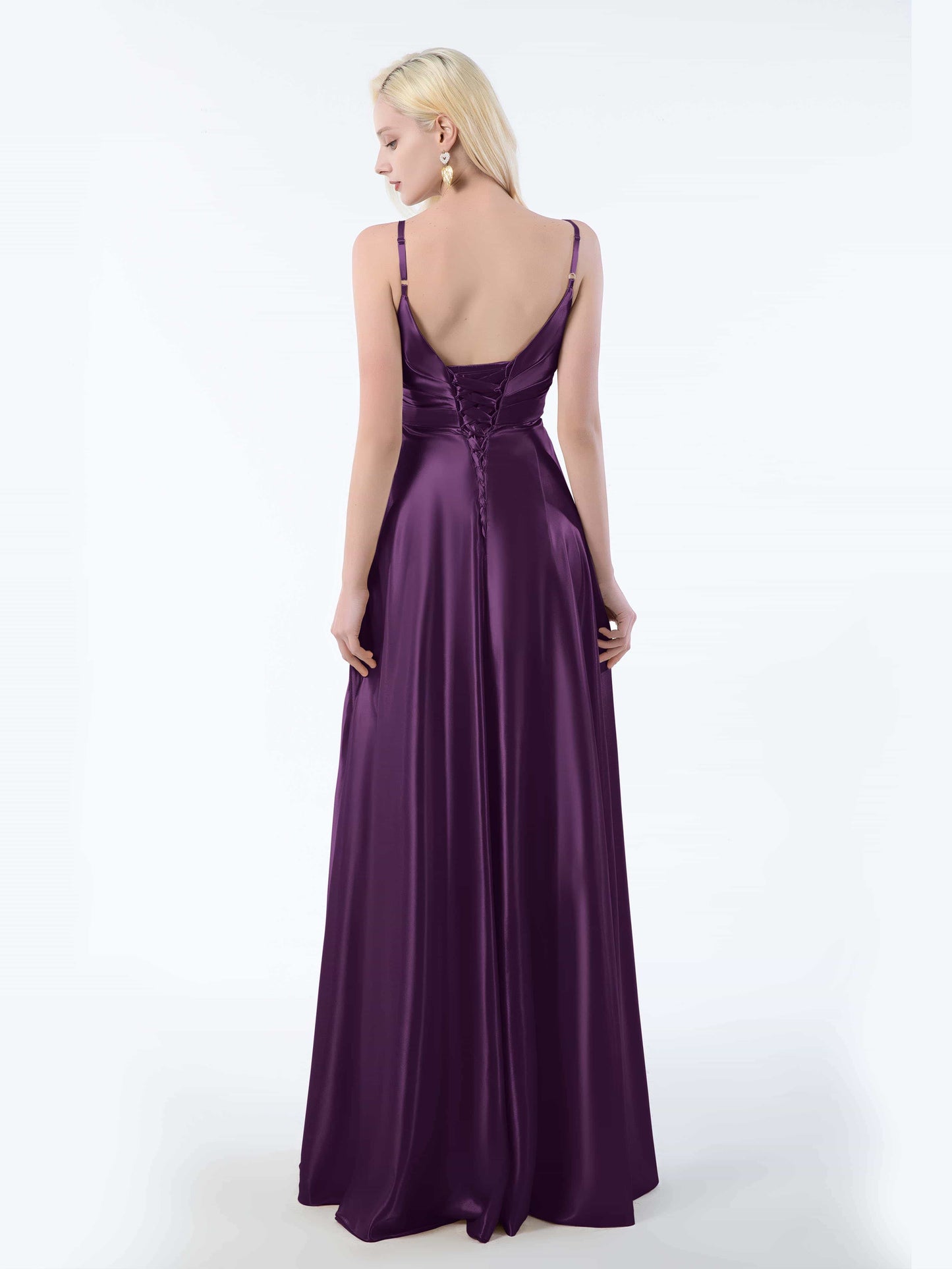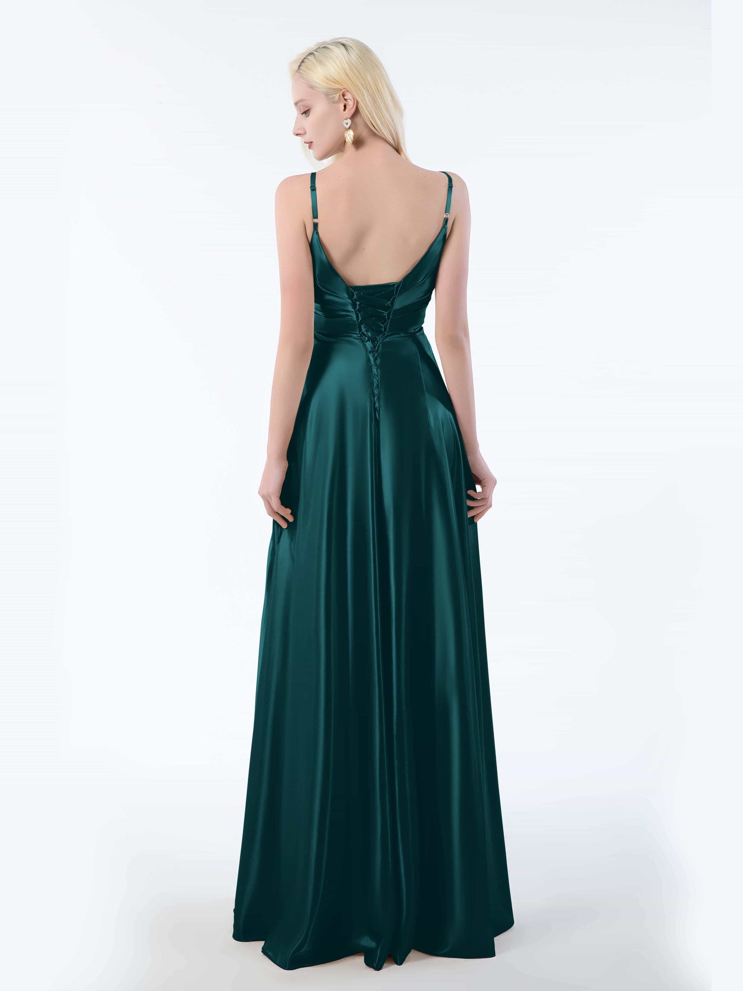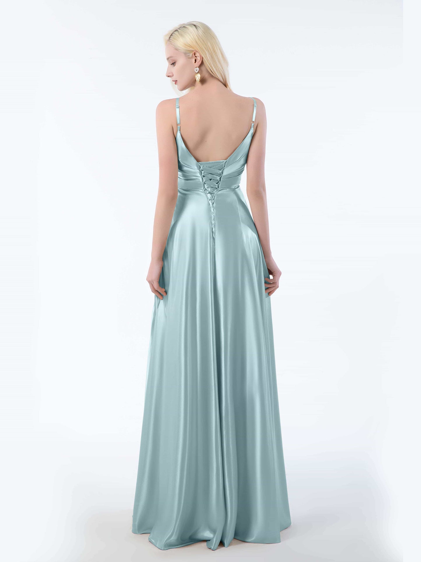 Modern V Neck Spaghetti Straps Slit Satin Bridesmaid Dresses UK