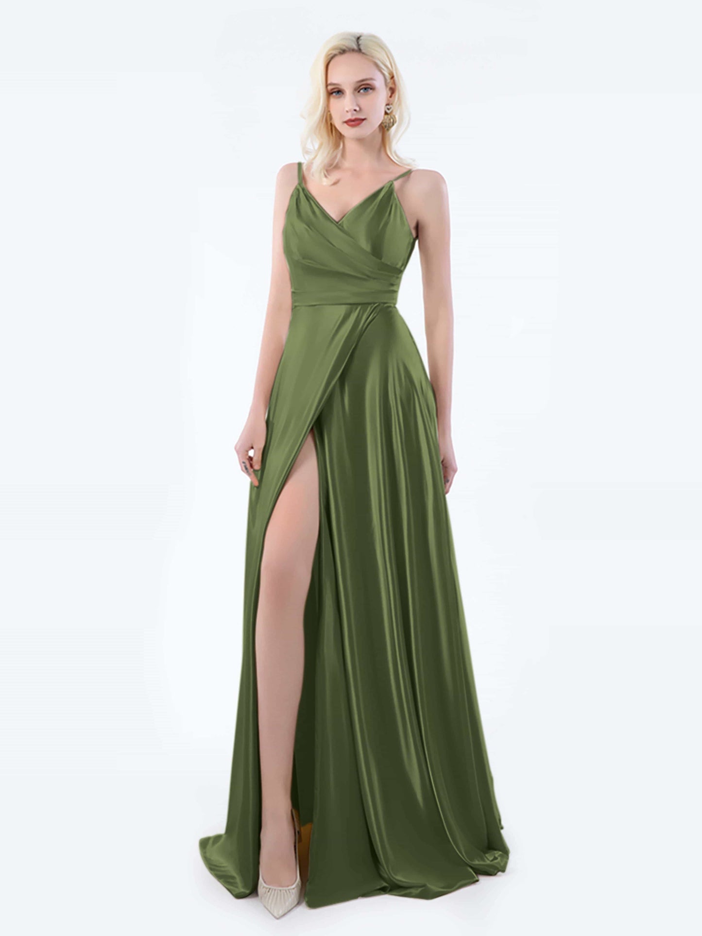 • Experience modernity with the Layla Modern V Neck Spaghetti Straps Slit Satin Bridesmaid Dress by Mollyevers. Featuring a modern V-neckline, spaghetti straps, and a stylish slit, this dress is a fashion-forward choice.