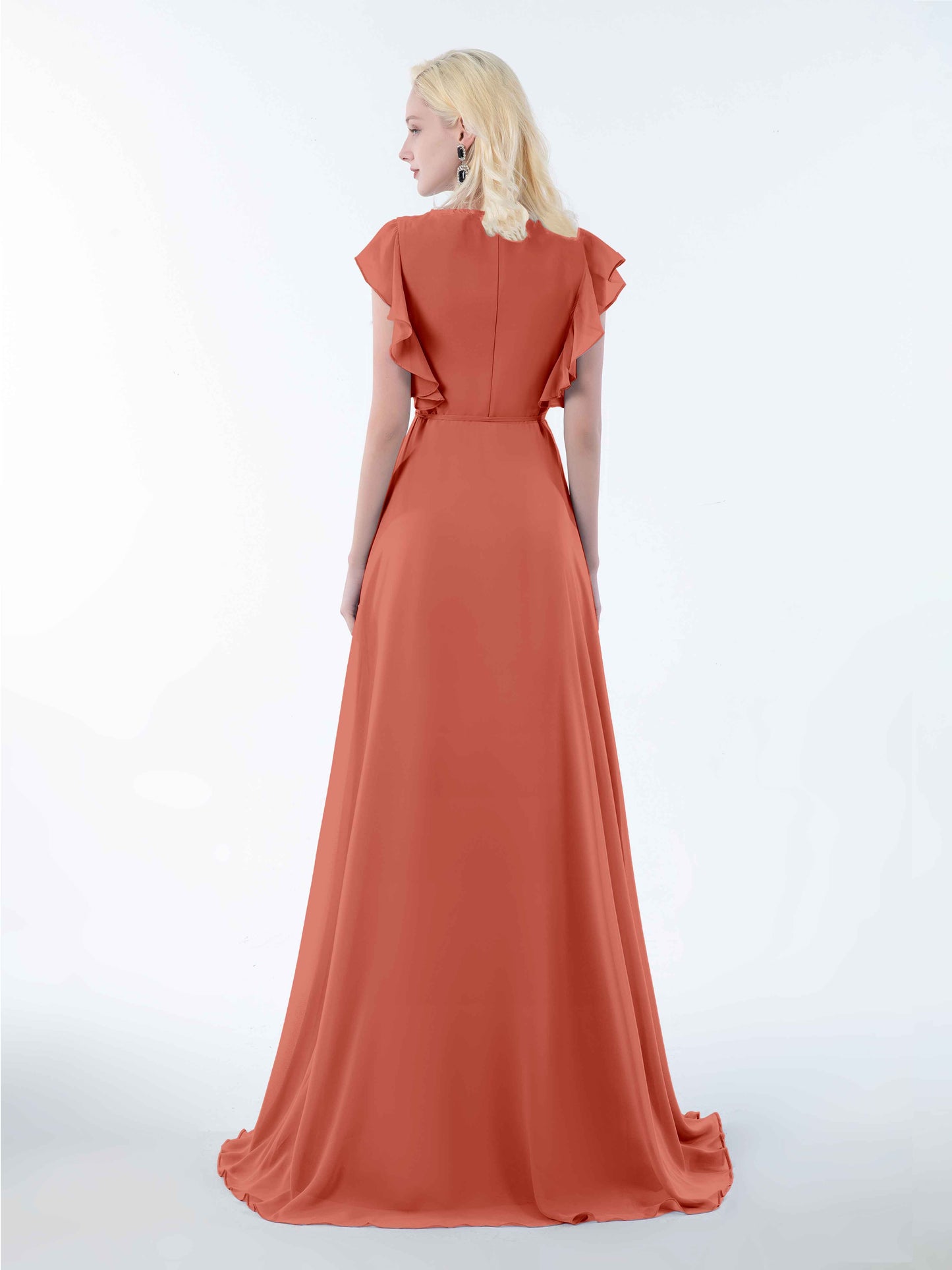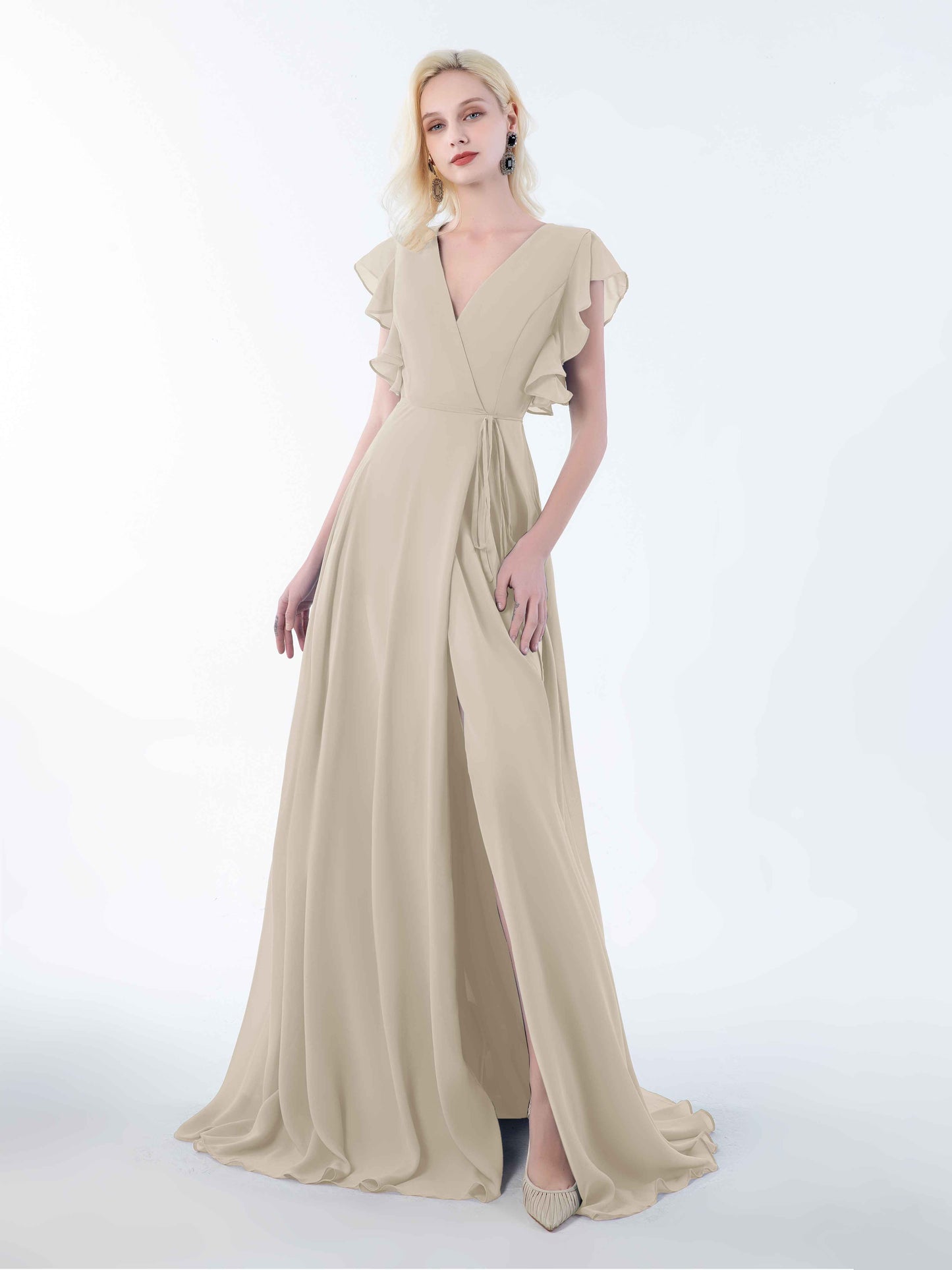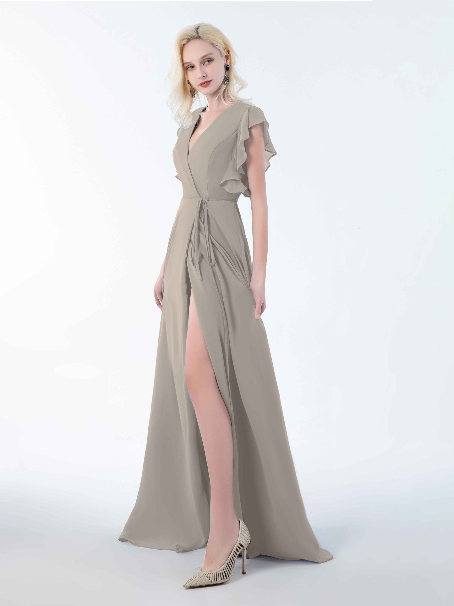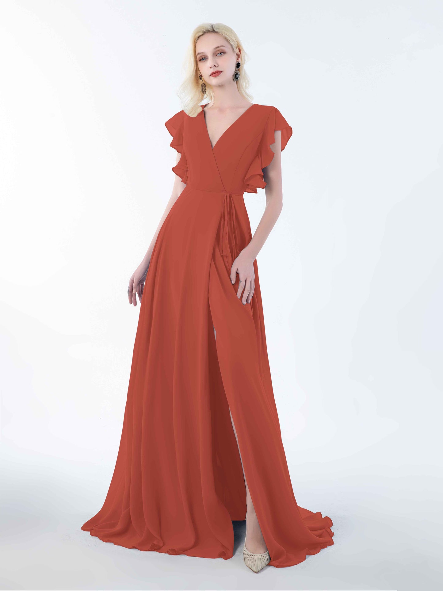 • Introducing Mollevers' contemporary Bridesmaid Dresses. These dresses embody modern sophistication with their wrap-style design, flattering V-neckline, and charming ruffles.