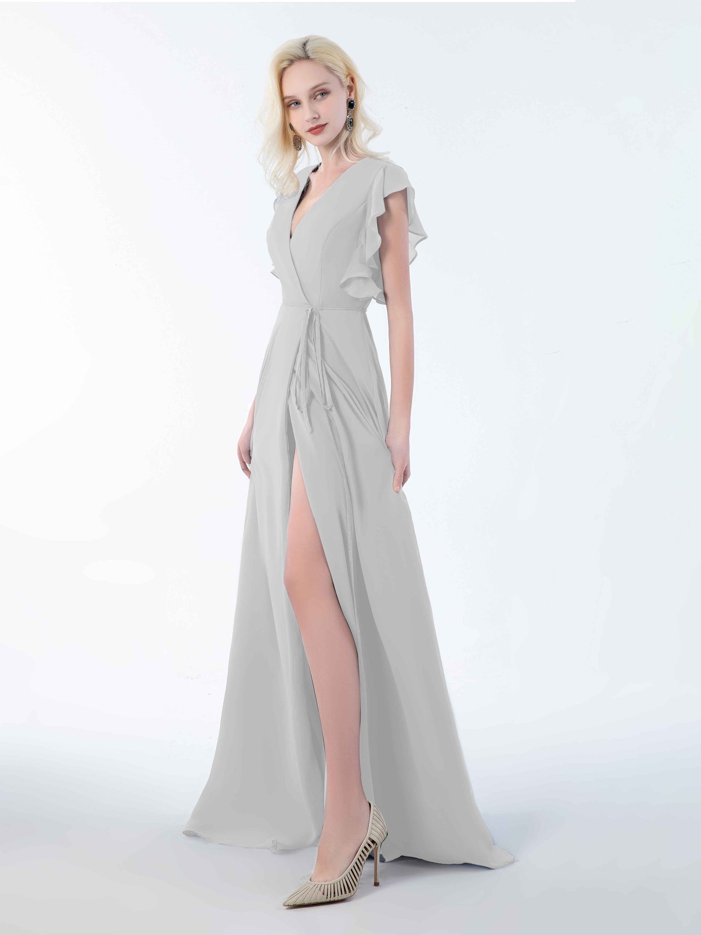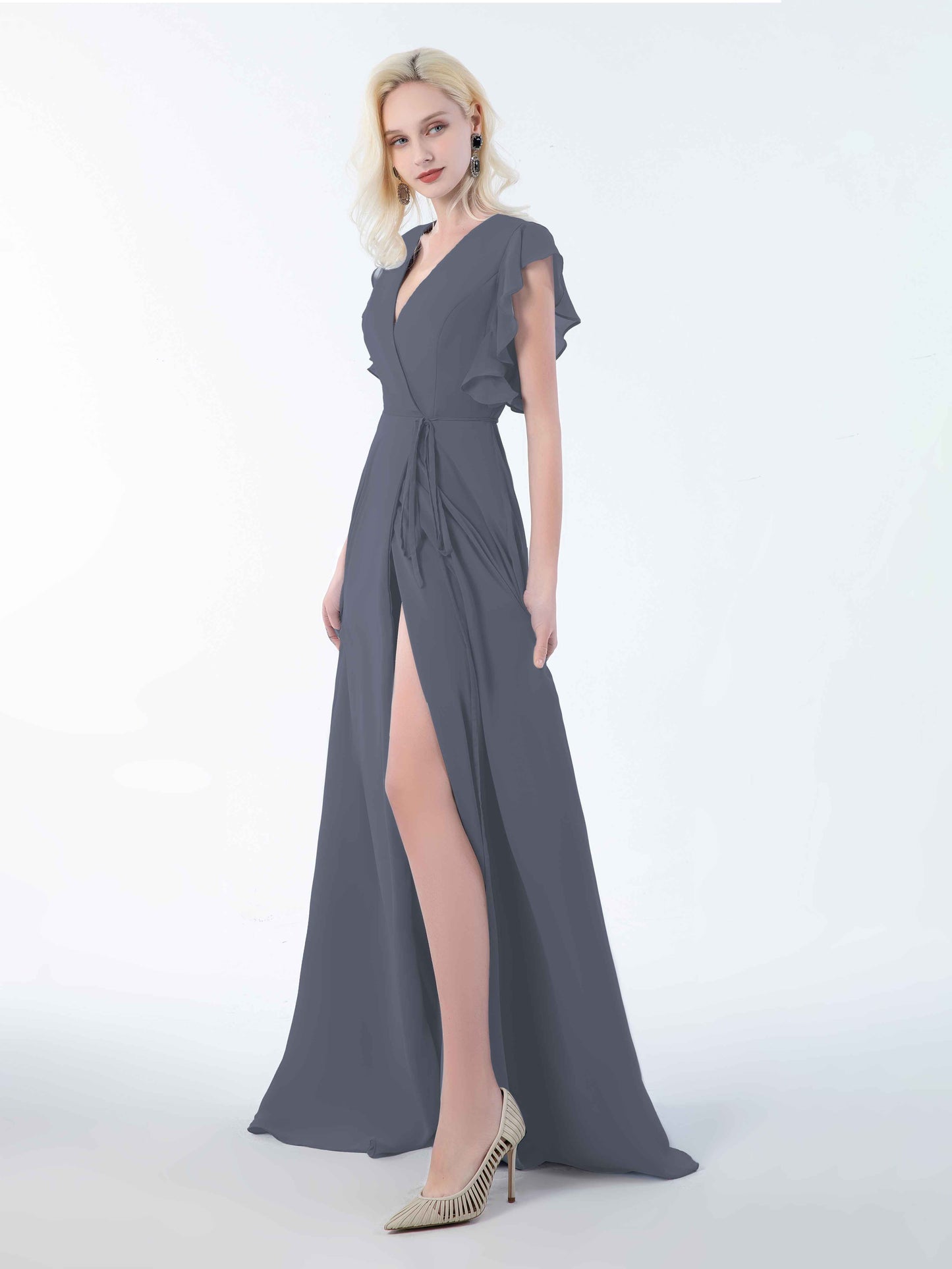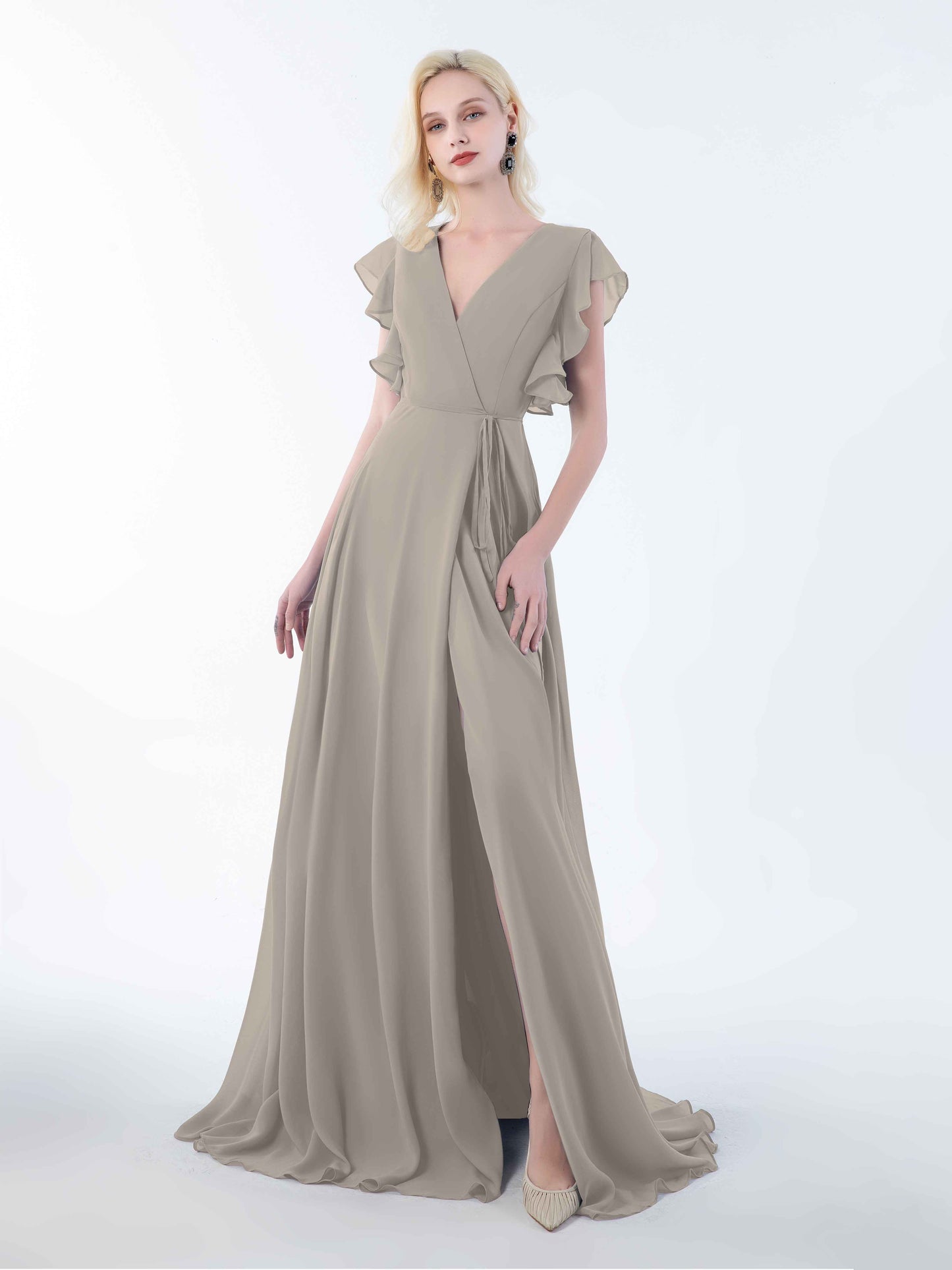 • Introducing Mollevers' contemporary Bridesmaid Dresses. These dresses embody modern sophistication with their wrap-style design, flattering V-neckline, and charming ruffles.