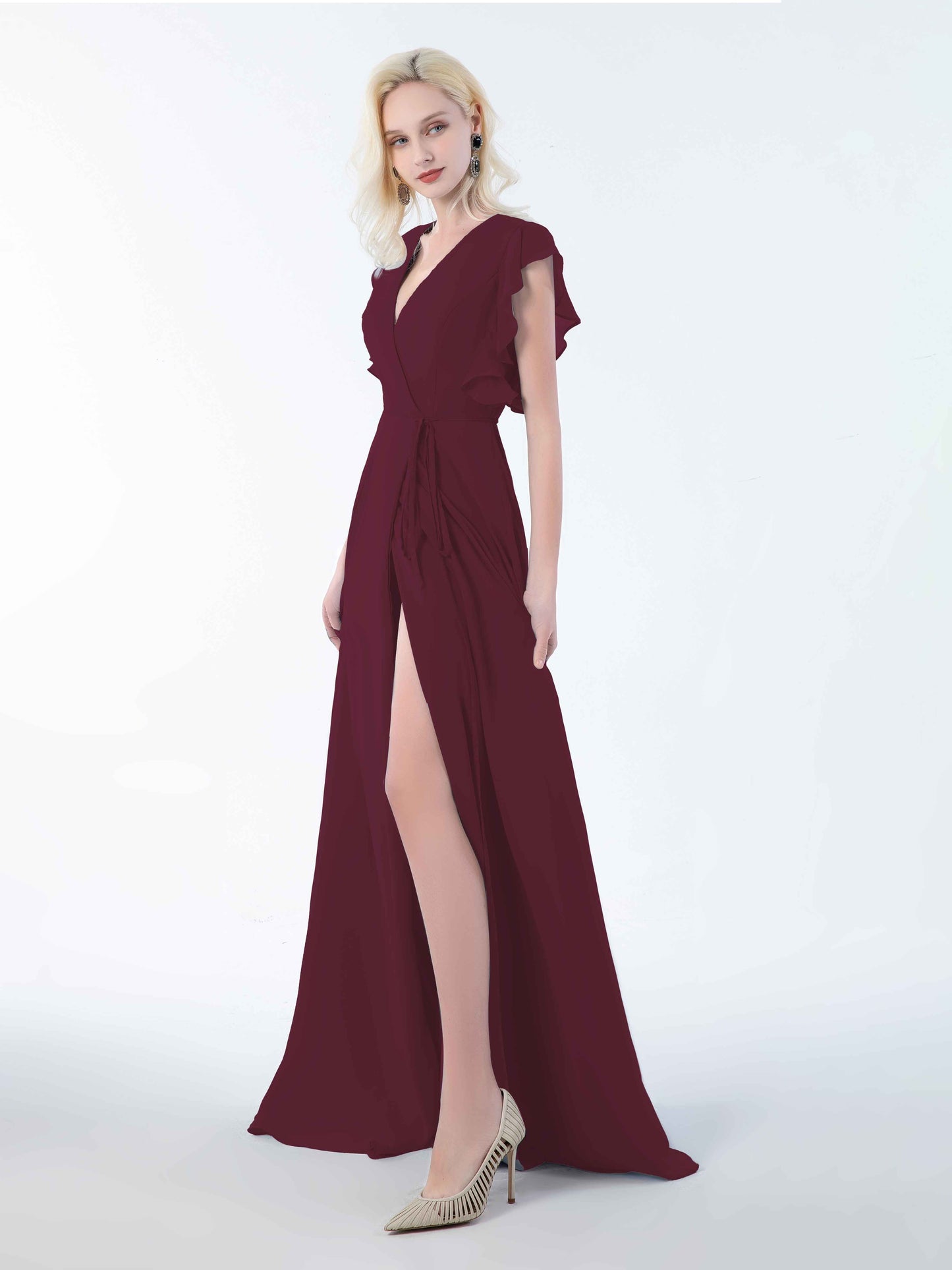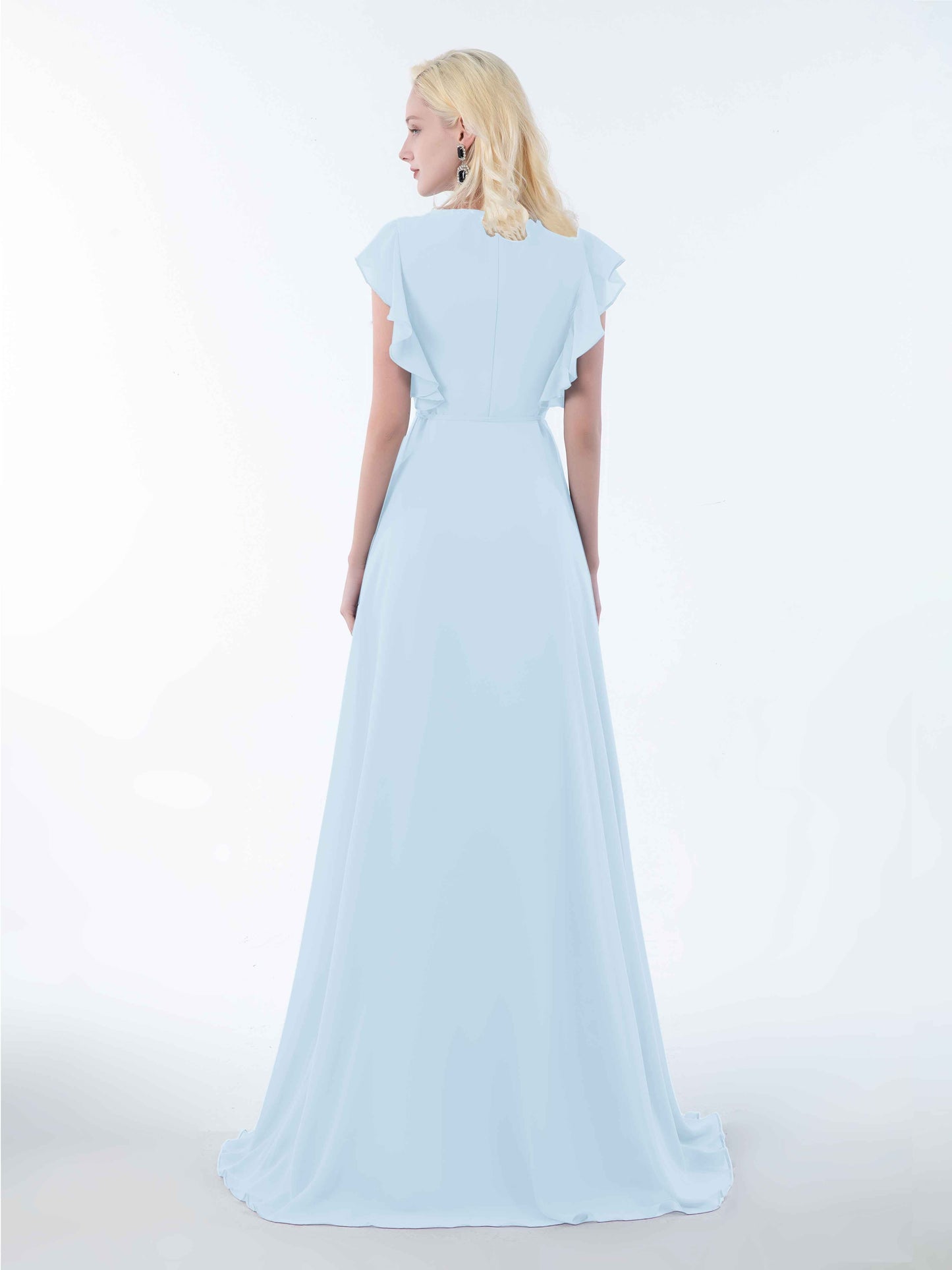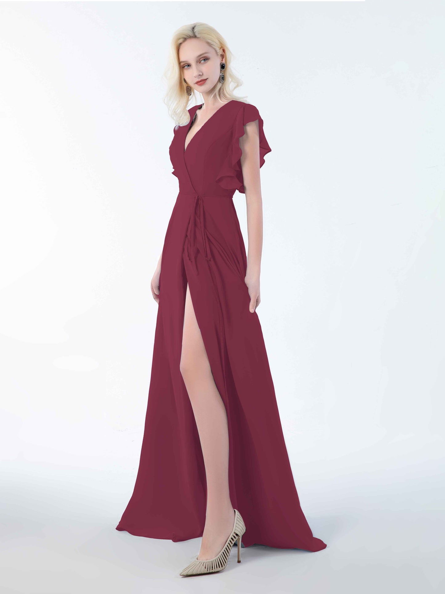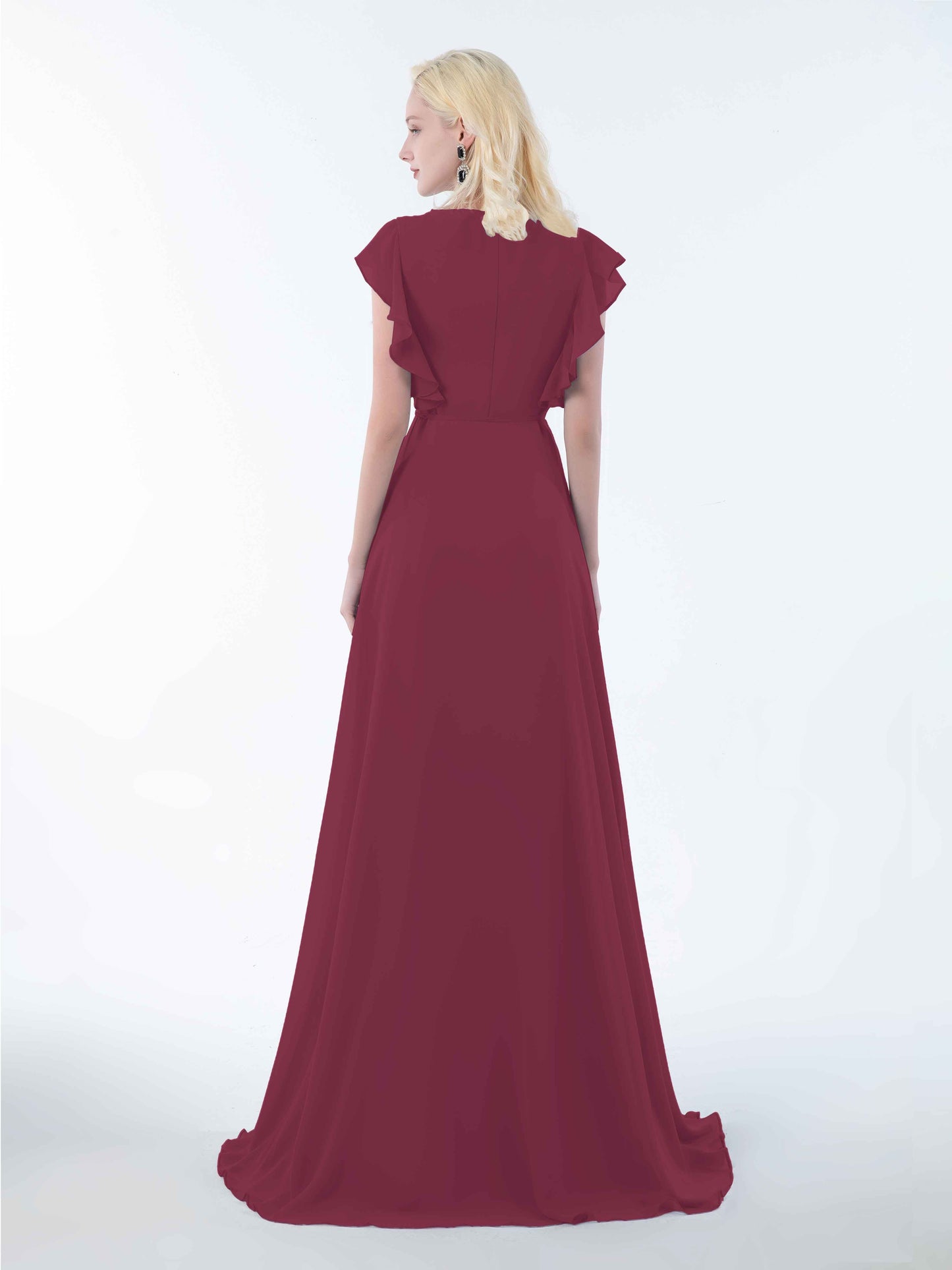 • Introducing Mollevers' contemporary Bridesmaid Dresses. These dresses embody modern sophistication with their wrap-style design, flattering V-neckline, and charming ruffles.