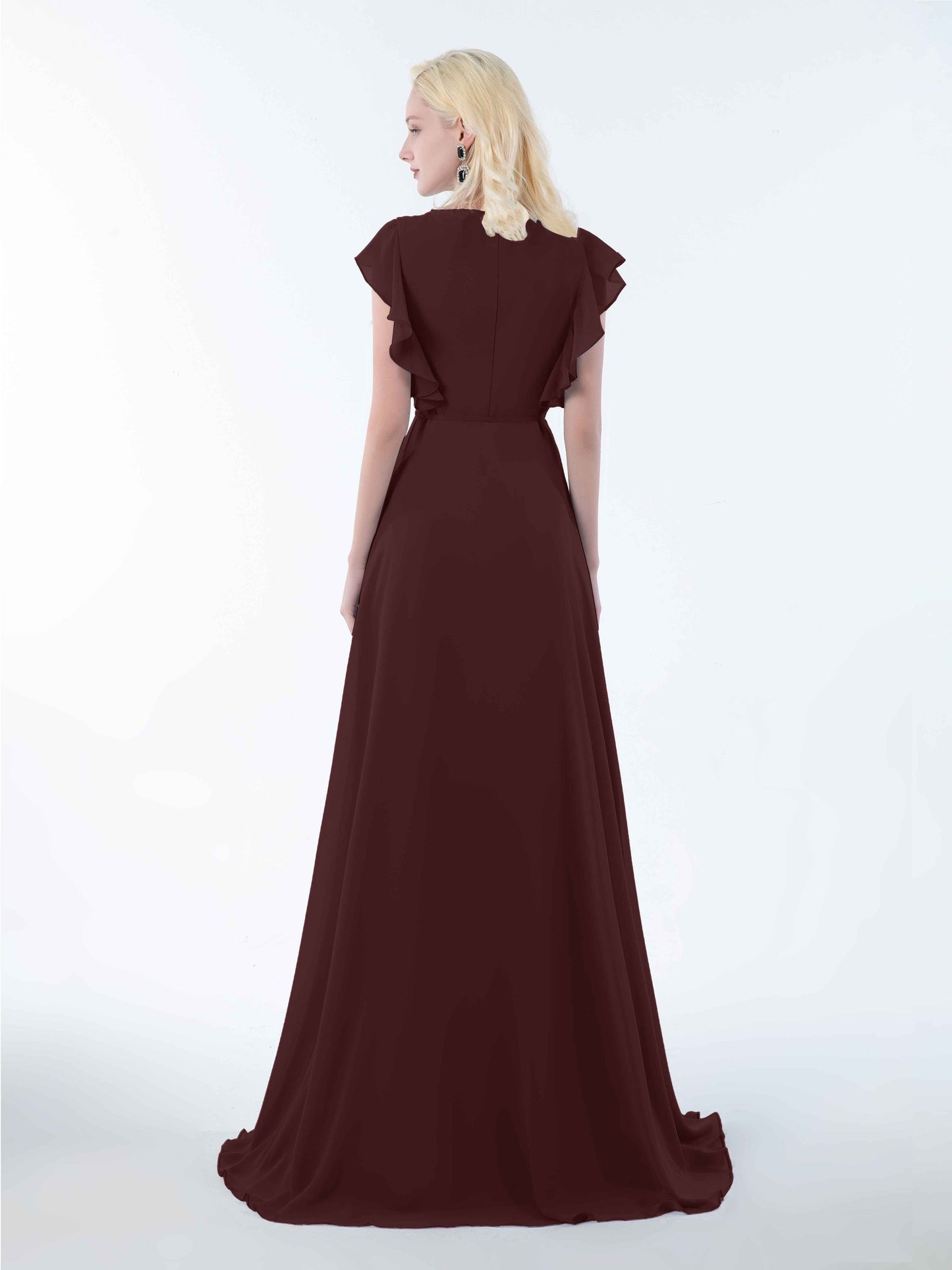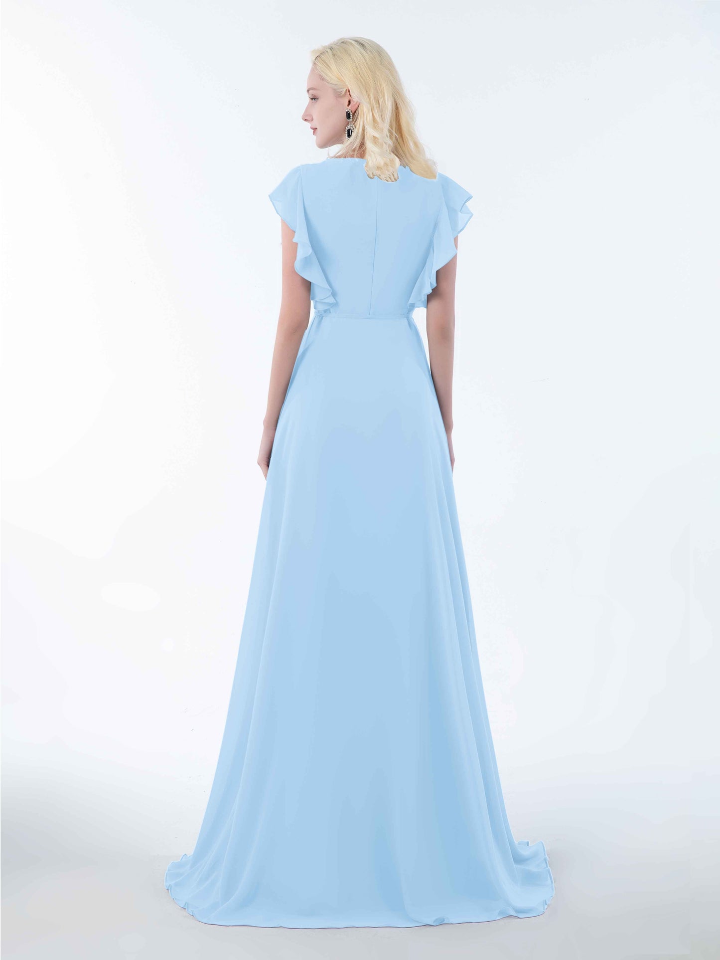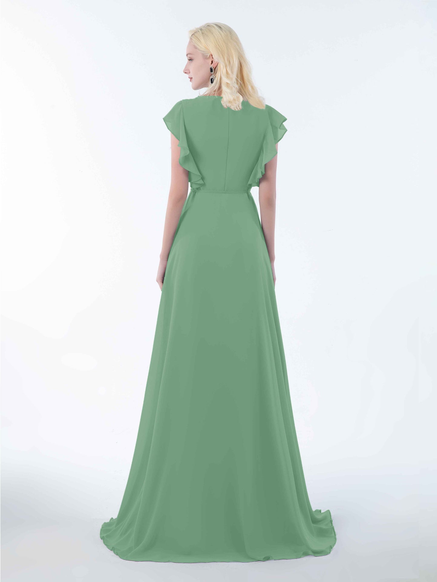 Modern Wrap V Neck Ruffles Floor Length Chiffon Bridesmaid Dresses UK