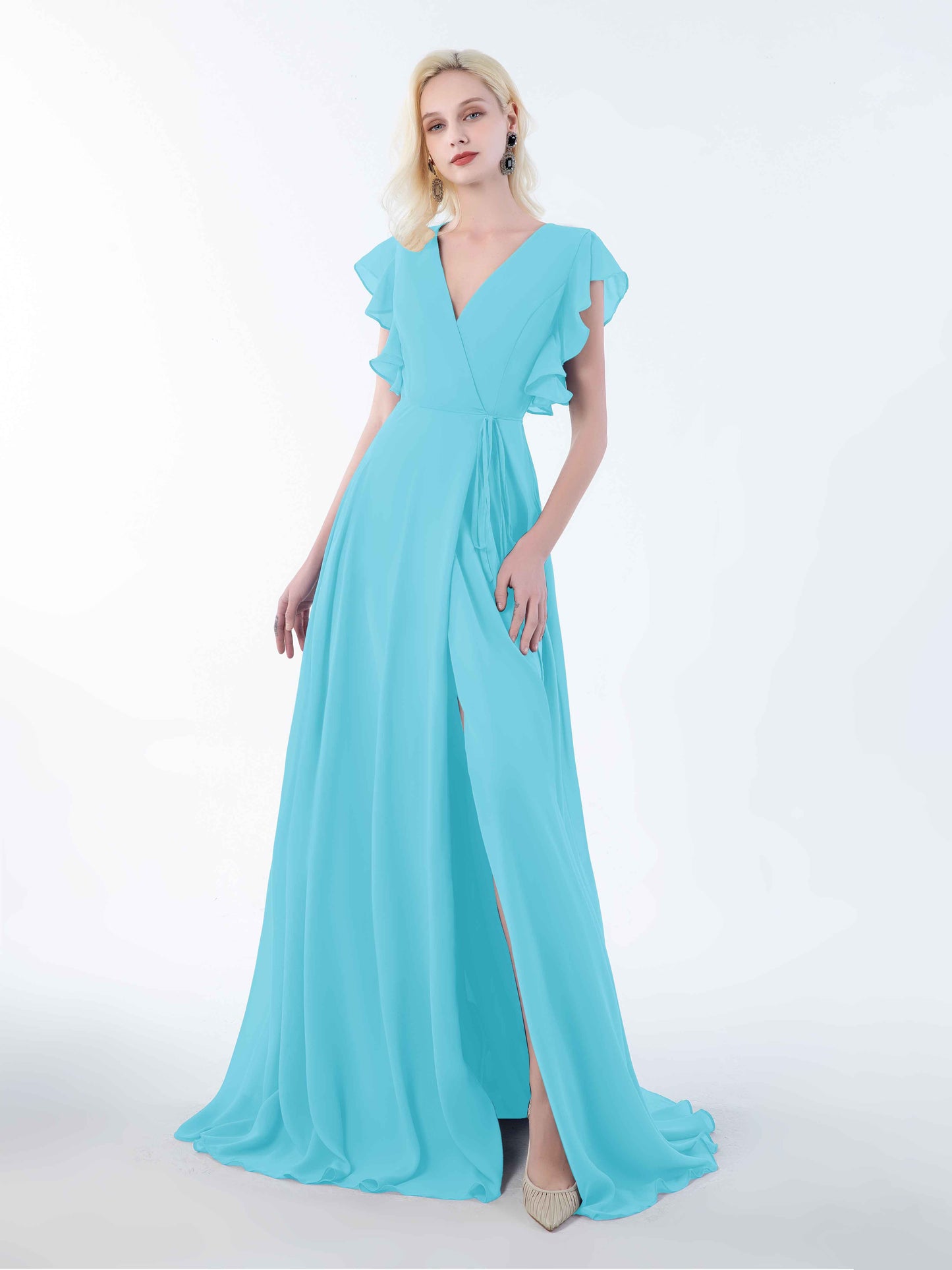 I was worried about the length (I'm quite petite), but it worked perfectly with a small heel. The chiffon is breathable and doesn't stick in the summer heat, plus the wrap makes it easy to adjust. My bridesmaids and I all bought matching dresses, and we looked like a coordinated dream. A definite win!