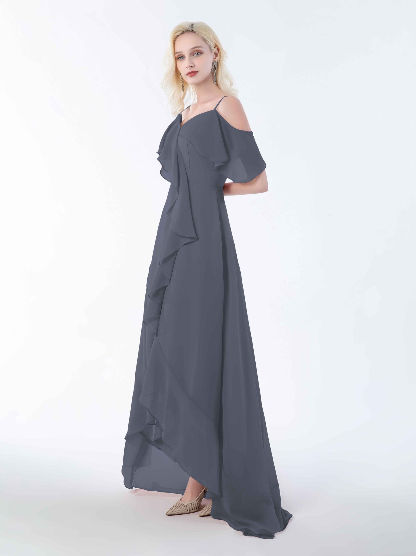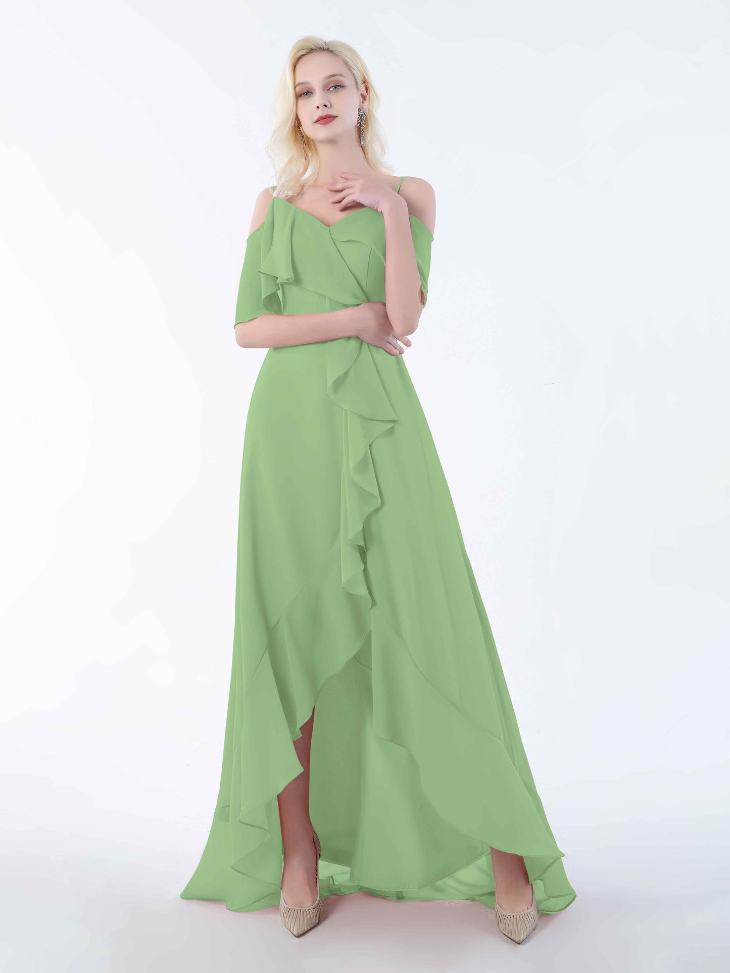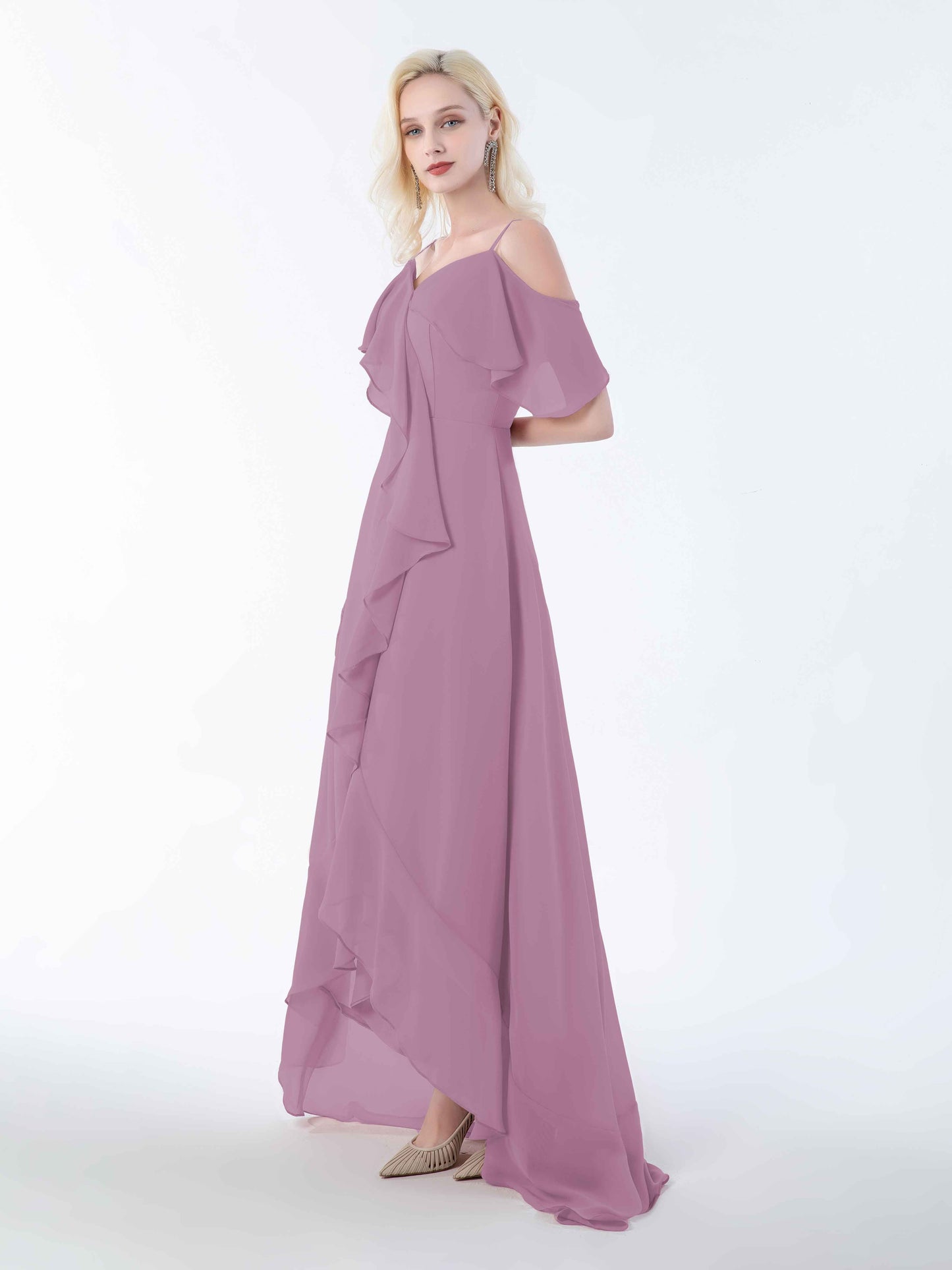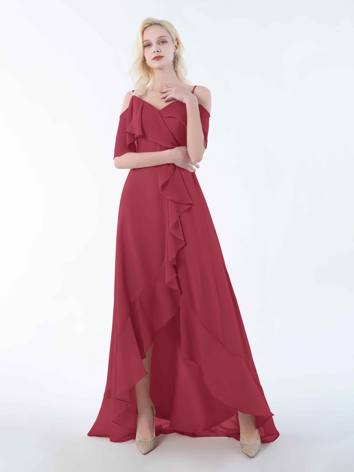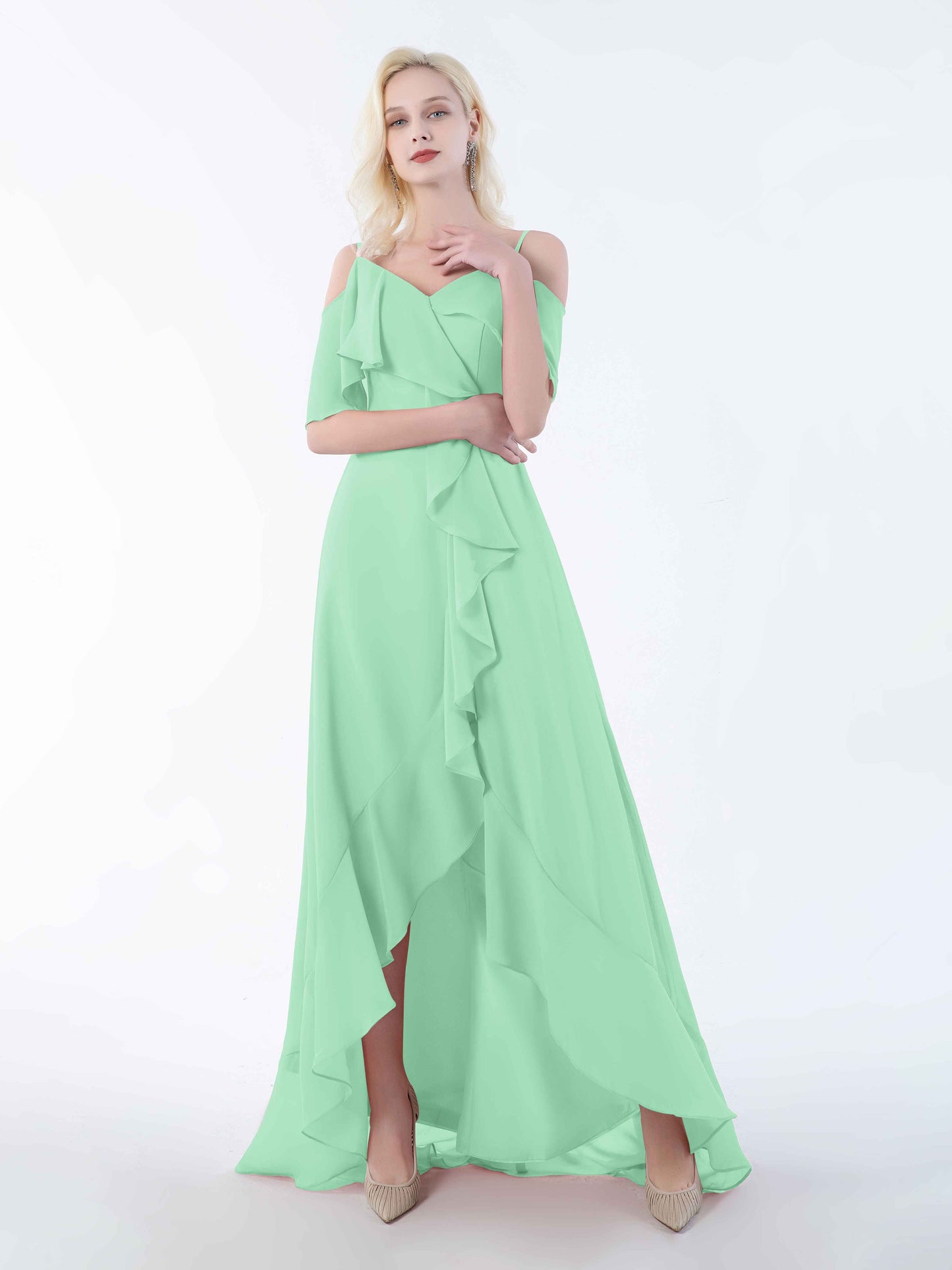• Uncover the allure of Mollevers' captivating Bridesmaid Dresses. These dresses showcase pretty ruffles and a trendy high-low hemline, infusing your bridal party with a touch of elegance and style.