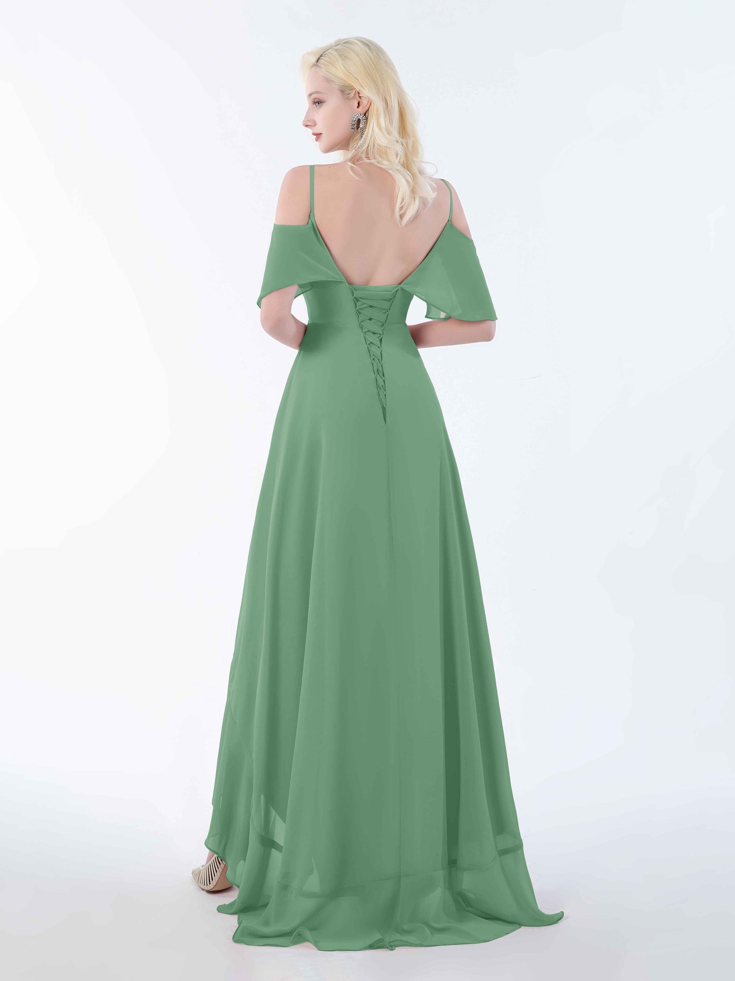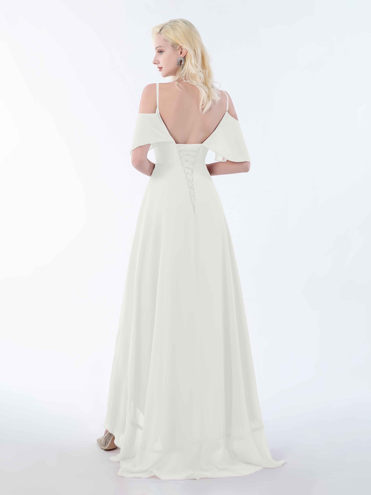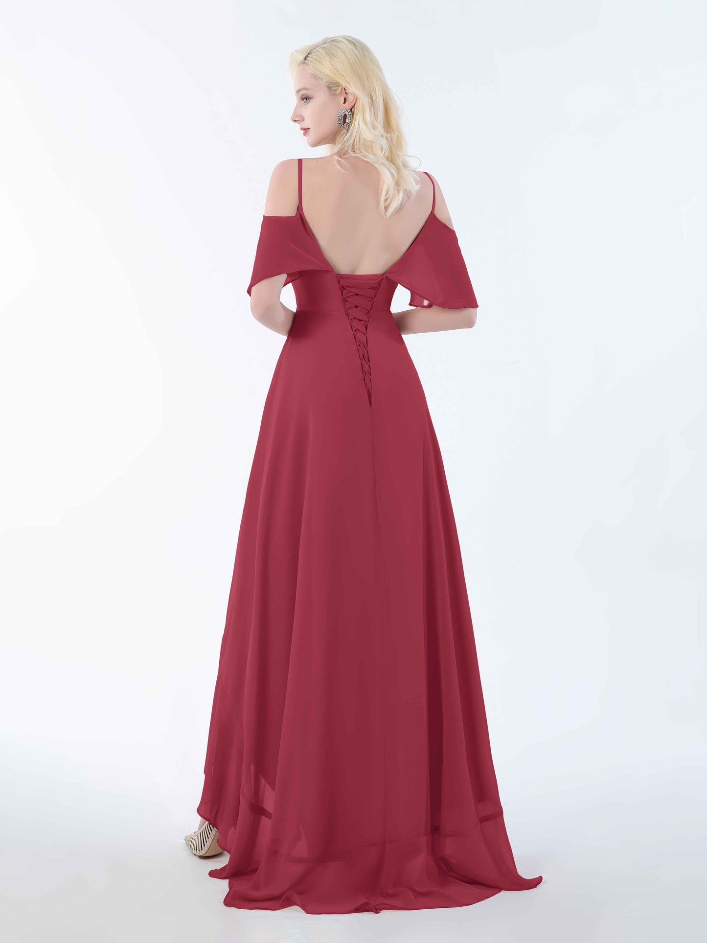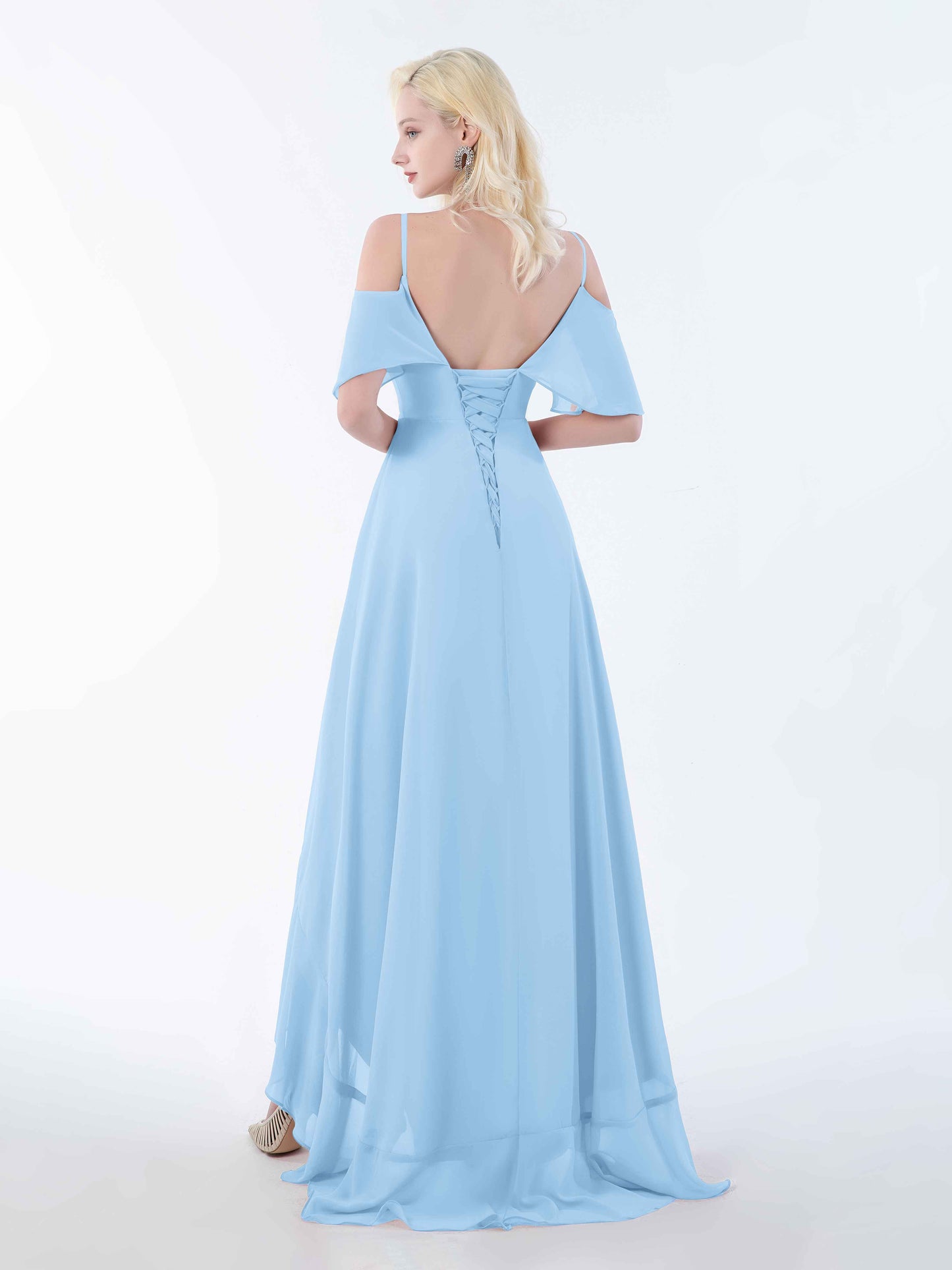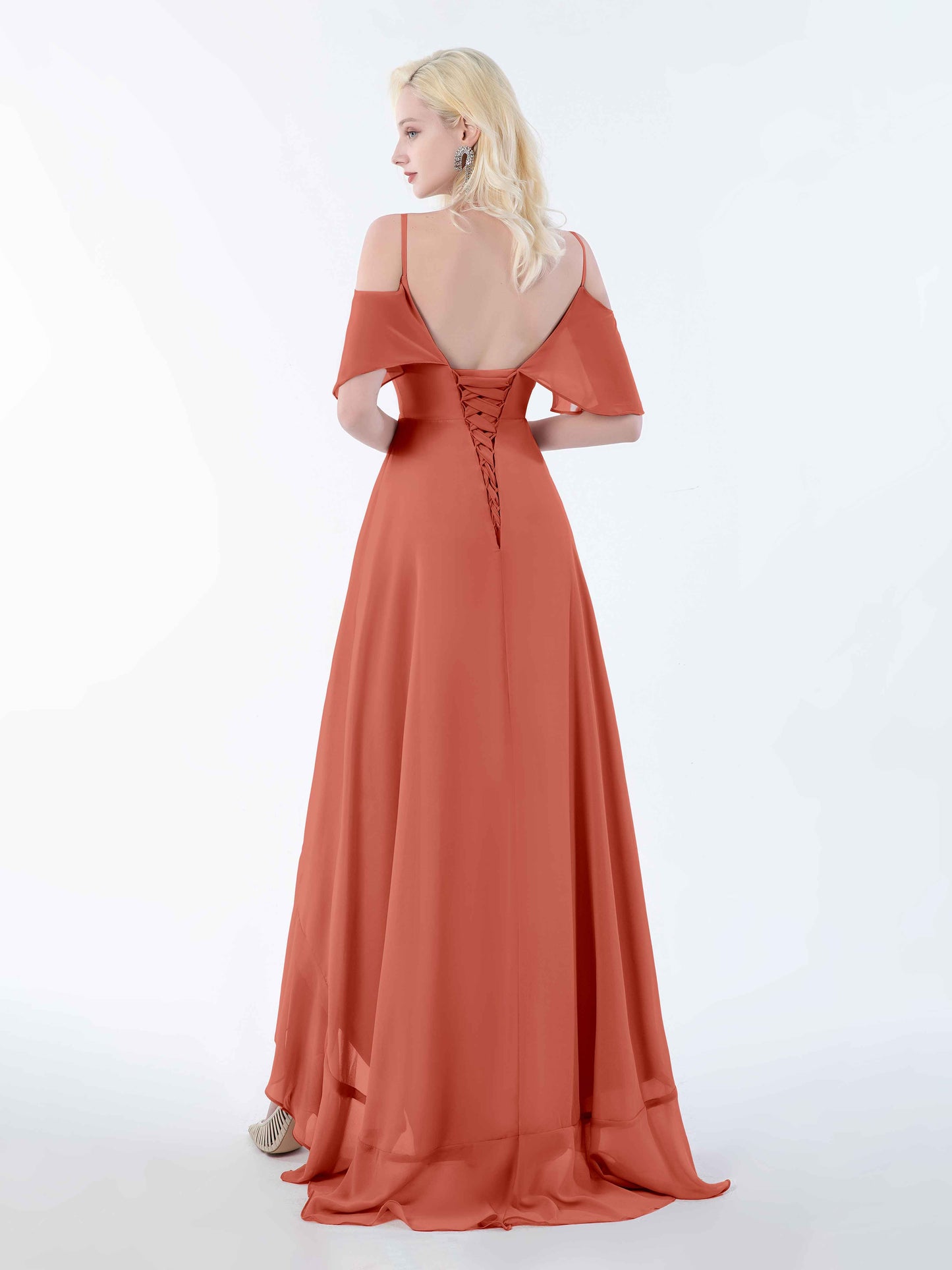 The chiffon is so soft, it feels like wearing a cloud. I was worried the high-low might be too dramatic, but it was just perfect for dancing all night. Only tiny gripe is the lace-up needs a bit of patience, but nothing I couldn't manage with a cup of tea in hand. Truly a bridesmaid's dream dress!