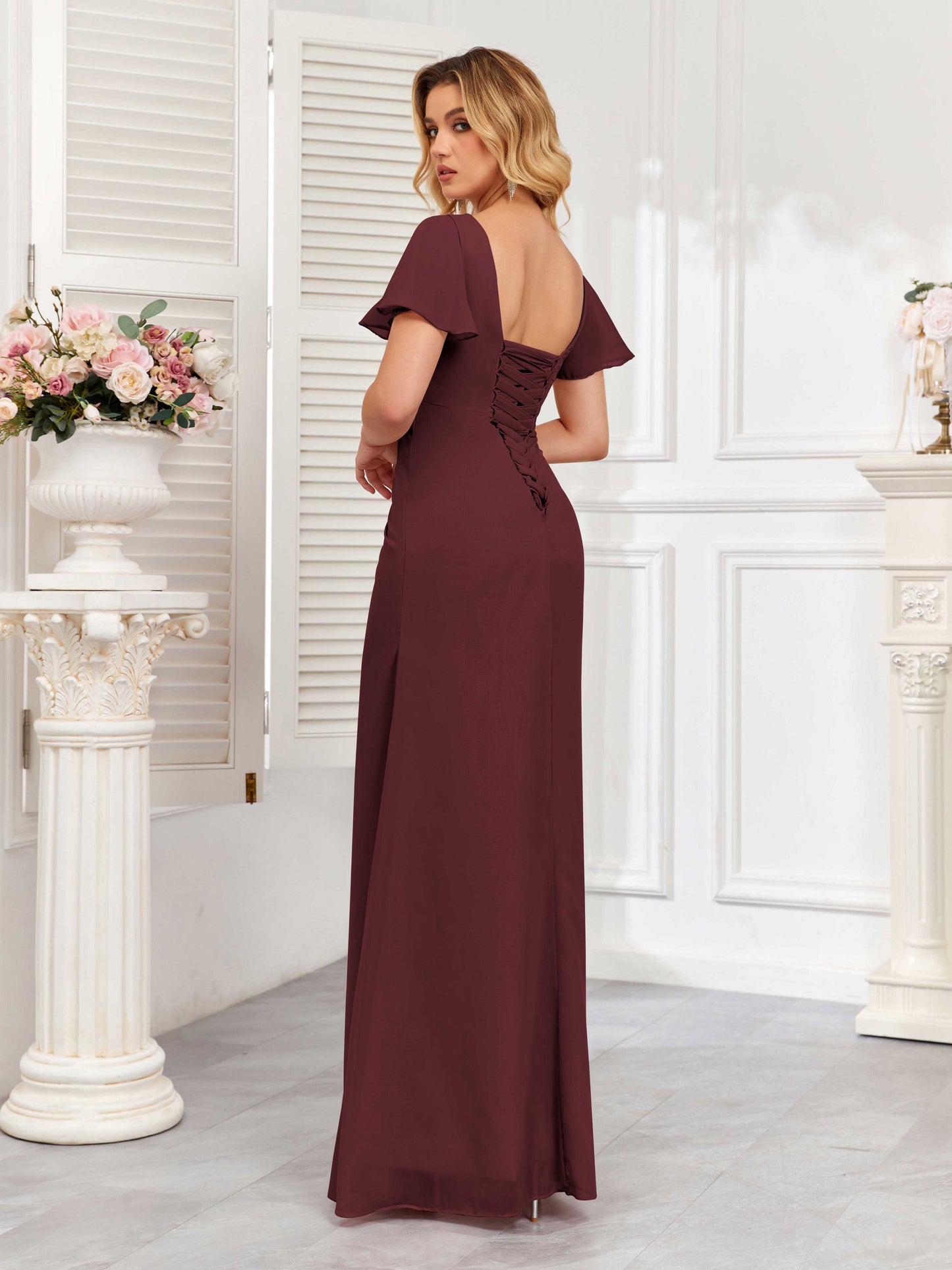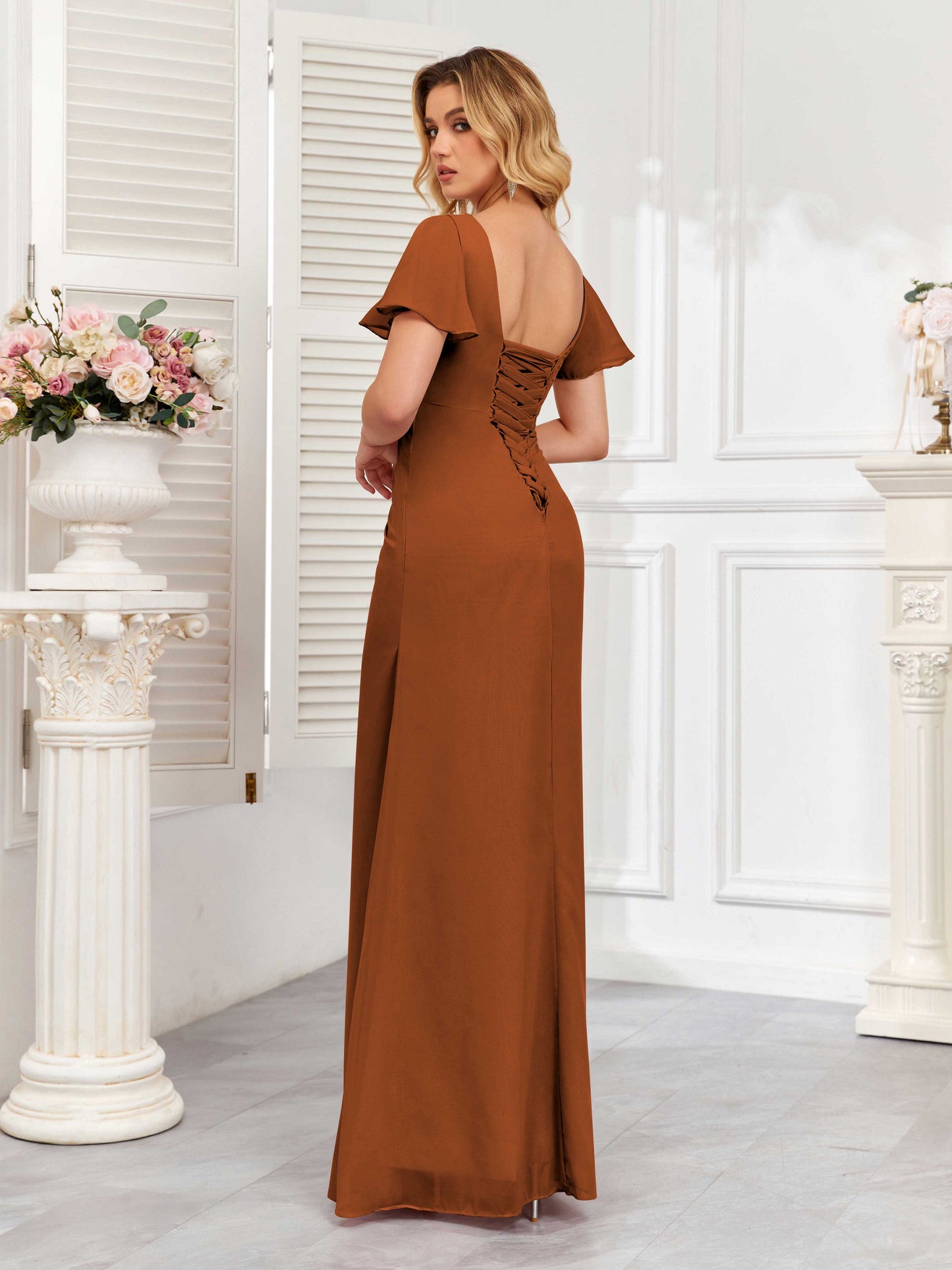 We had a garden wedding, and this dress was ideal. The chiffon caught the breeze beautifully, creating a soft, romantic look. I loved how the ruched side added a bit of shape, and the slit was elegant without being too daring. Couldn't have asked for a better bridesmaid dress!
