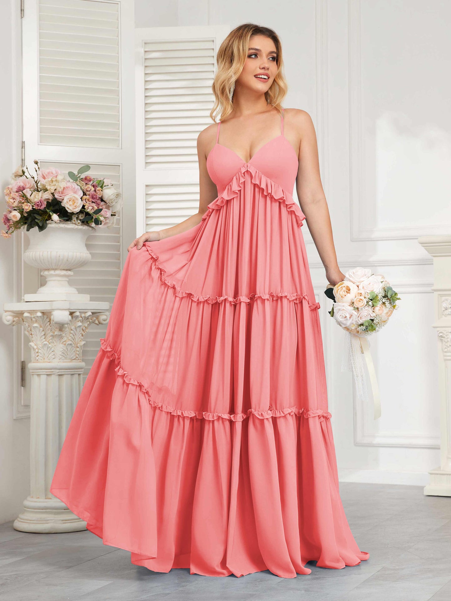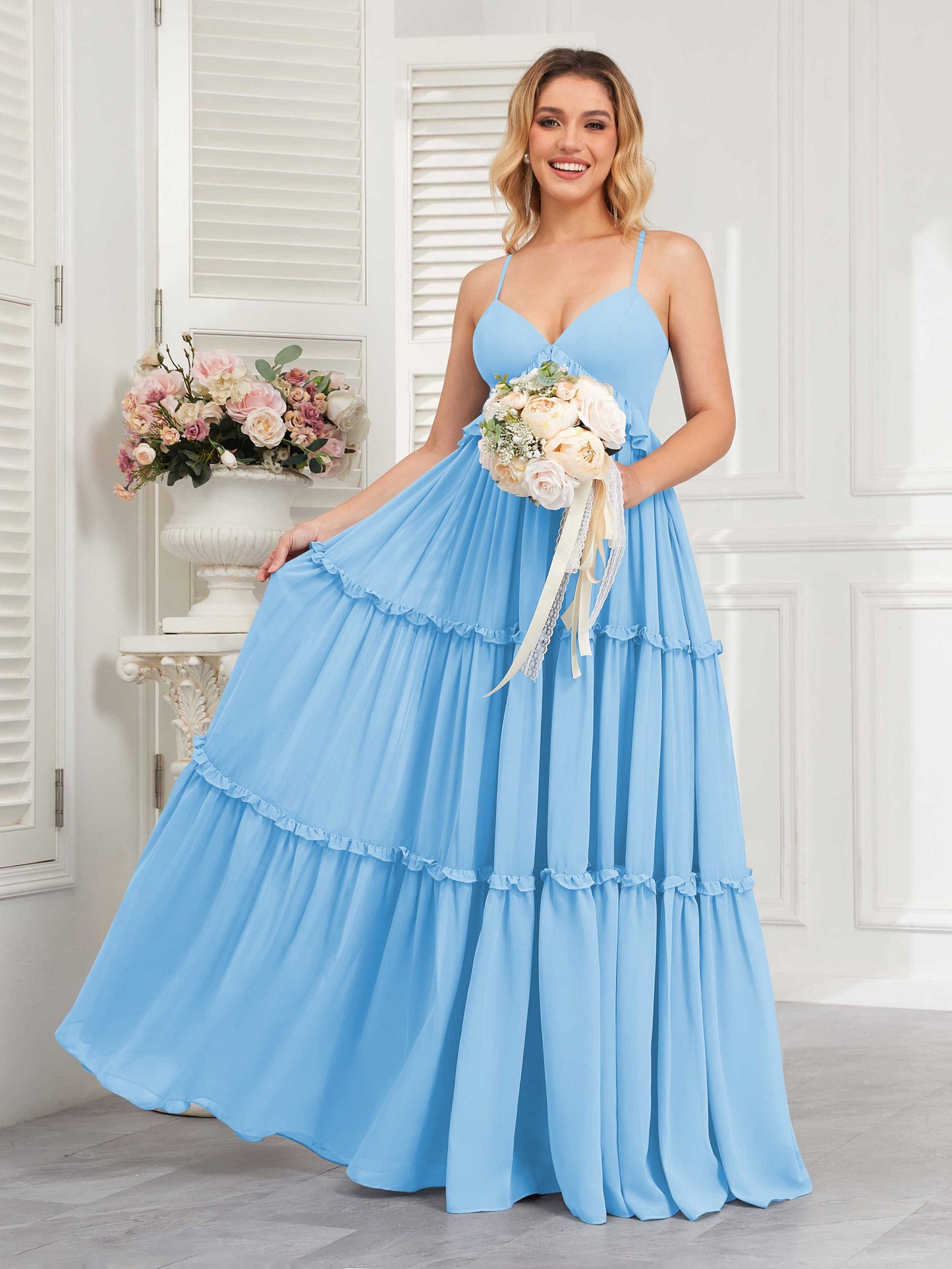 Romantic Empire Waist V-Neck Sleeveless Chiffon Bridesmaid Dresses UK