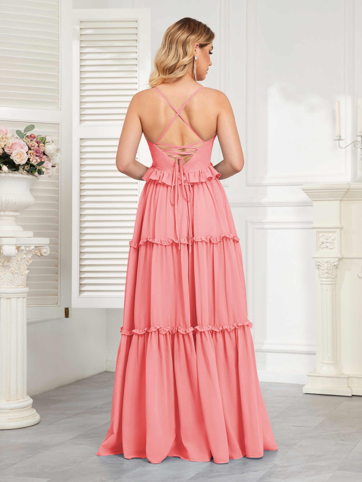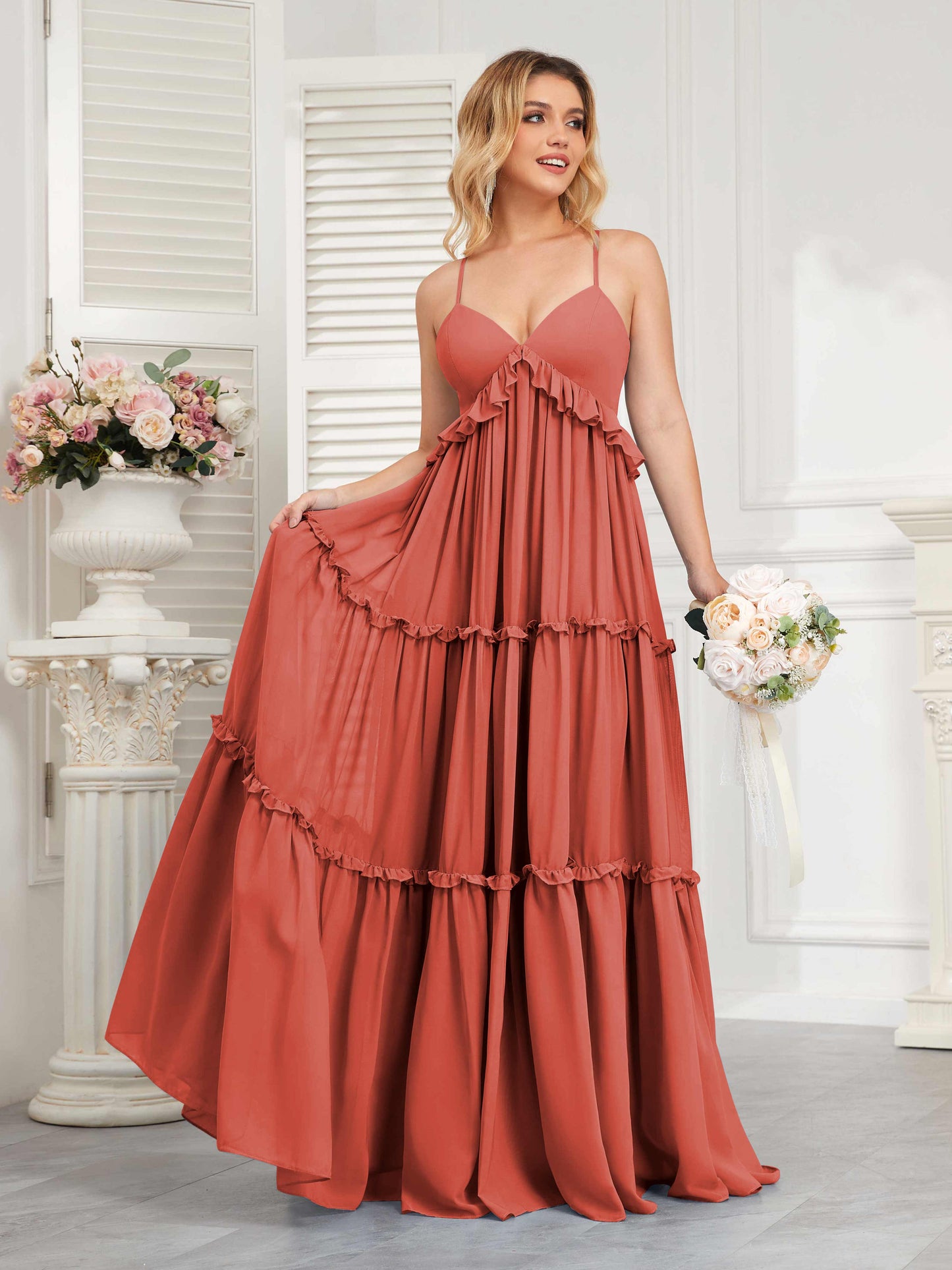 Absolutely loved this dress! The chiffon feels so soft and flows beautifully as I walked down the aisle. The V-neck was flattering without being too revealing, and the empire waist gave me a lovely silhouette. I got so many compliments from the other bridesmaids. Truly happy with my choice!
