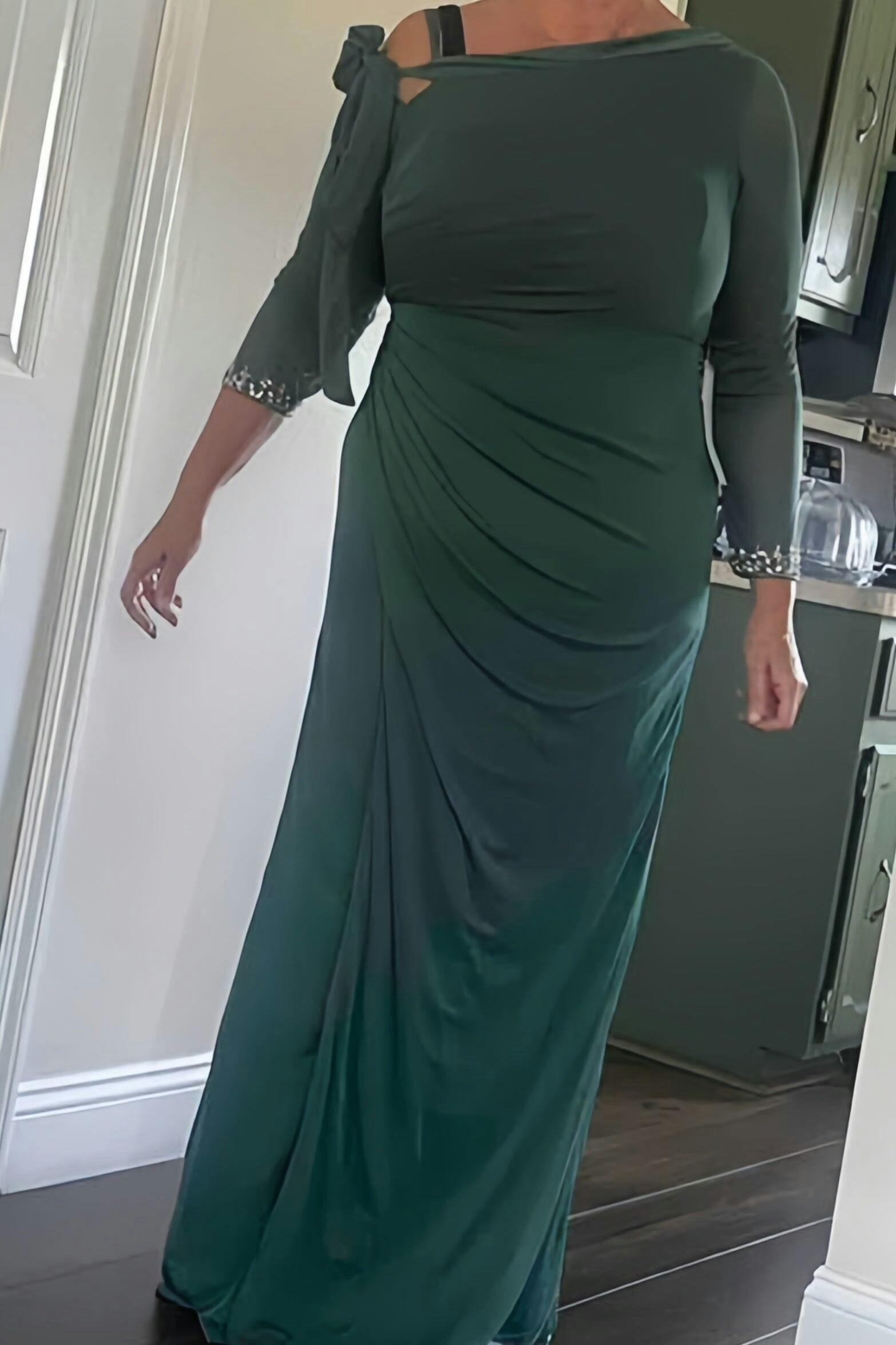 Sheath/Column One-Shoulder Long Sleeves Floor-Length Plus Size Mother of the Bride Dresses with Beaded, Pleated & Split Side UK