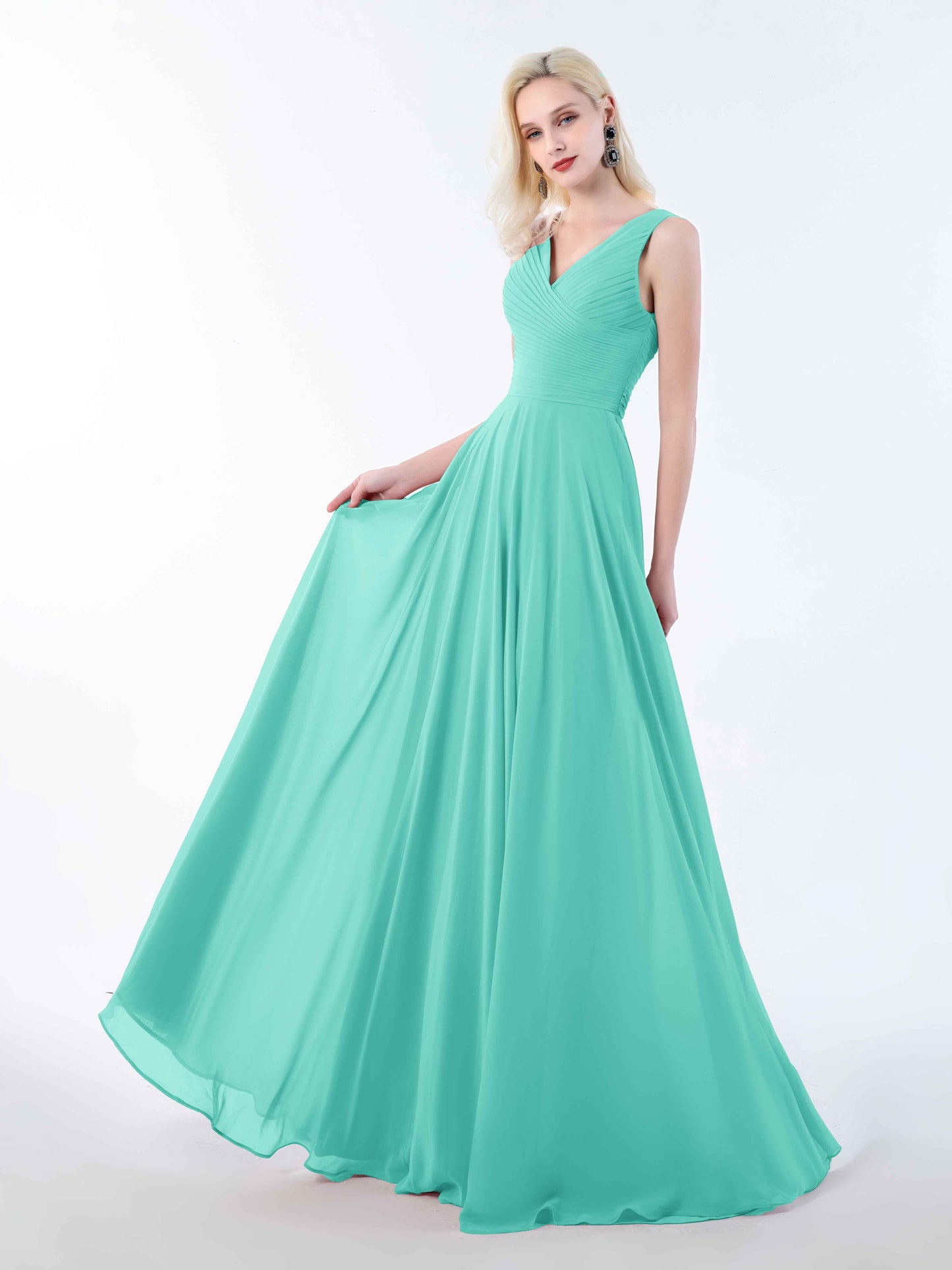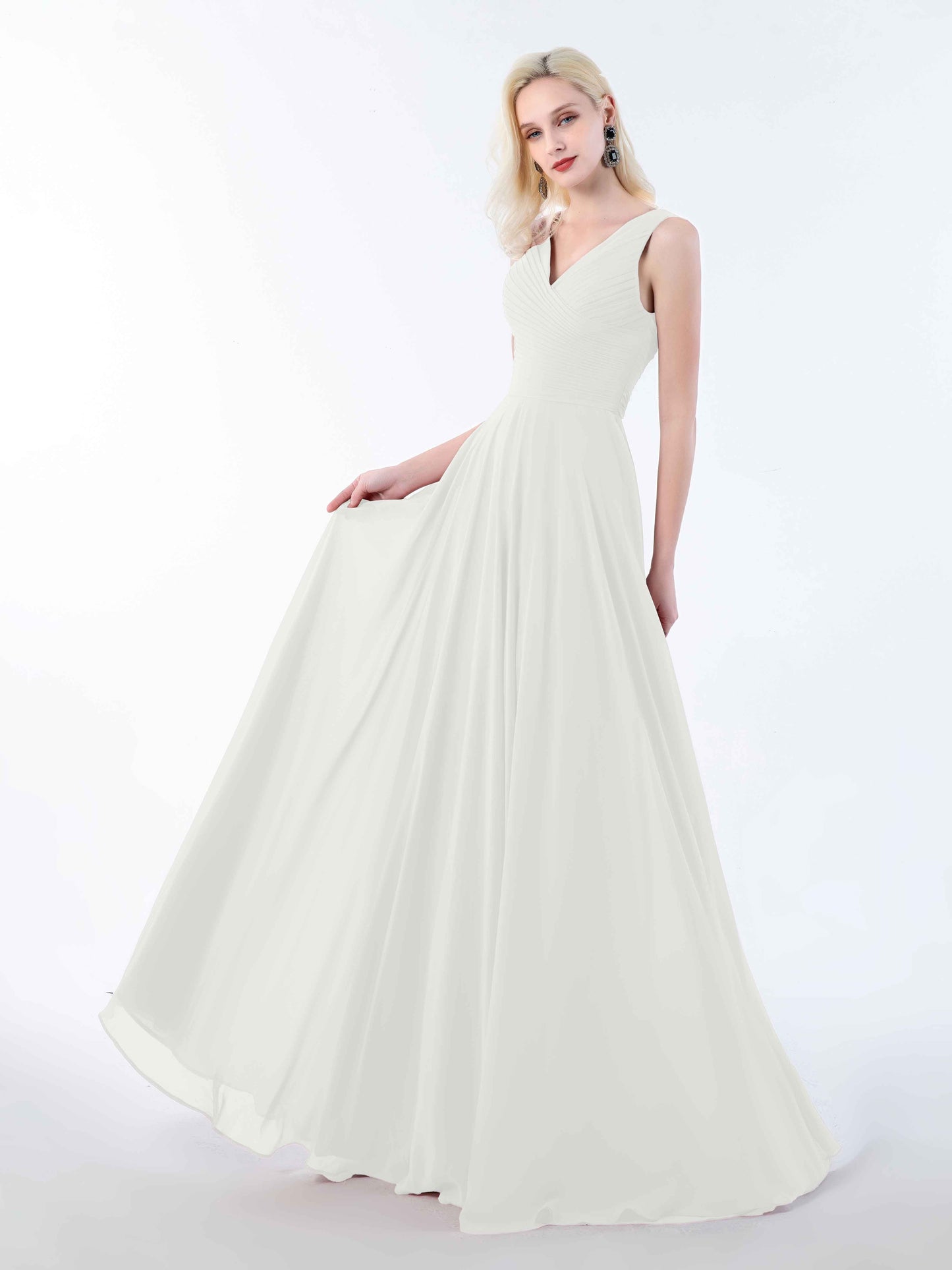 • Mollevers presents the Simple Sleeveless Bow Back Floor Length Chiffon Bridesmaid Dresses UK. These dresses offer a classic and timeless look with their sleeveless design and charming bow back detail.