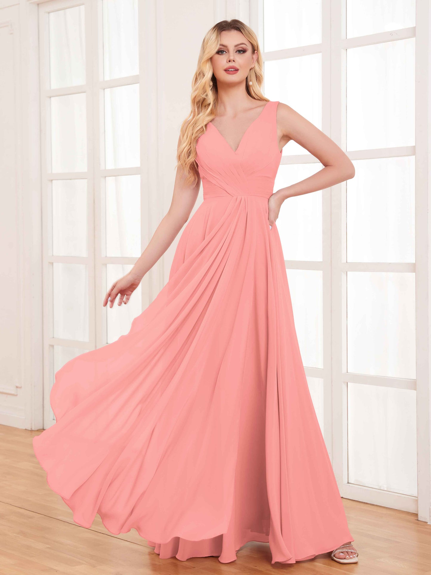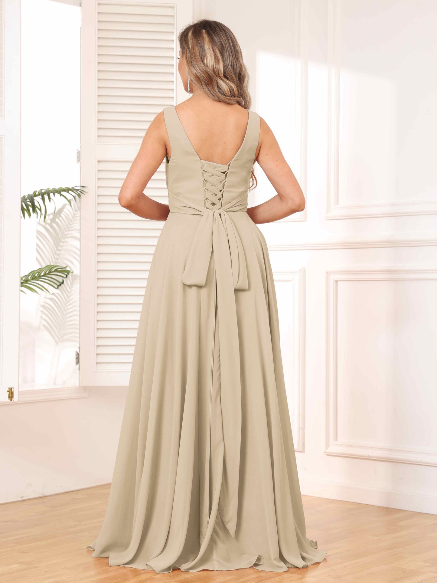 Simple Sleeveless Ruffles Bow Back Chiffon Bridesmaid Dresses UK