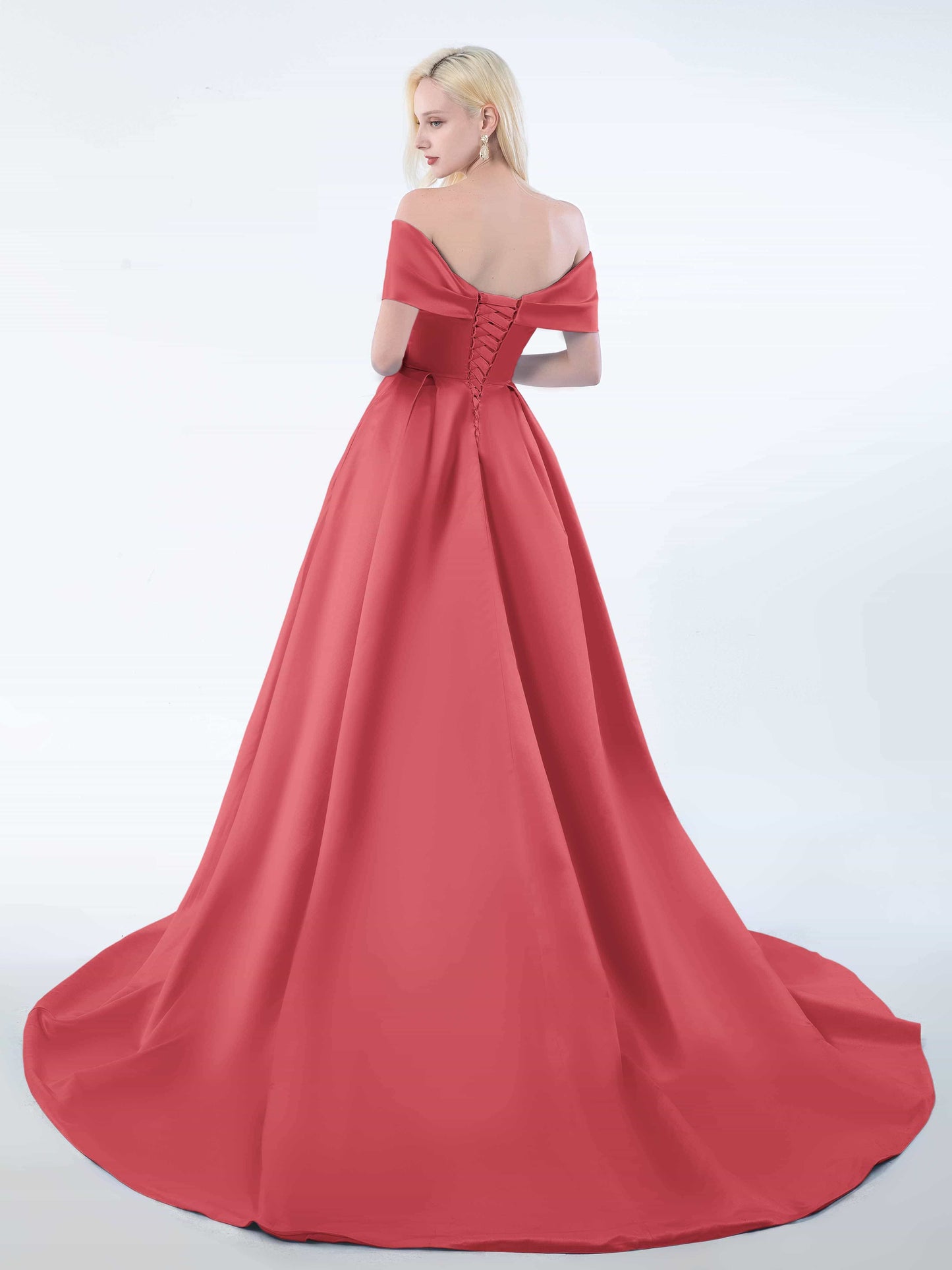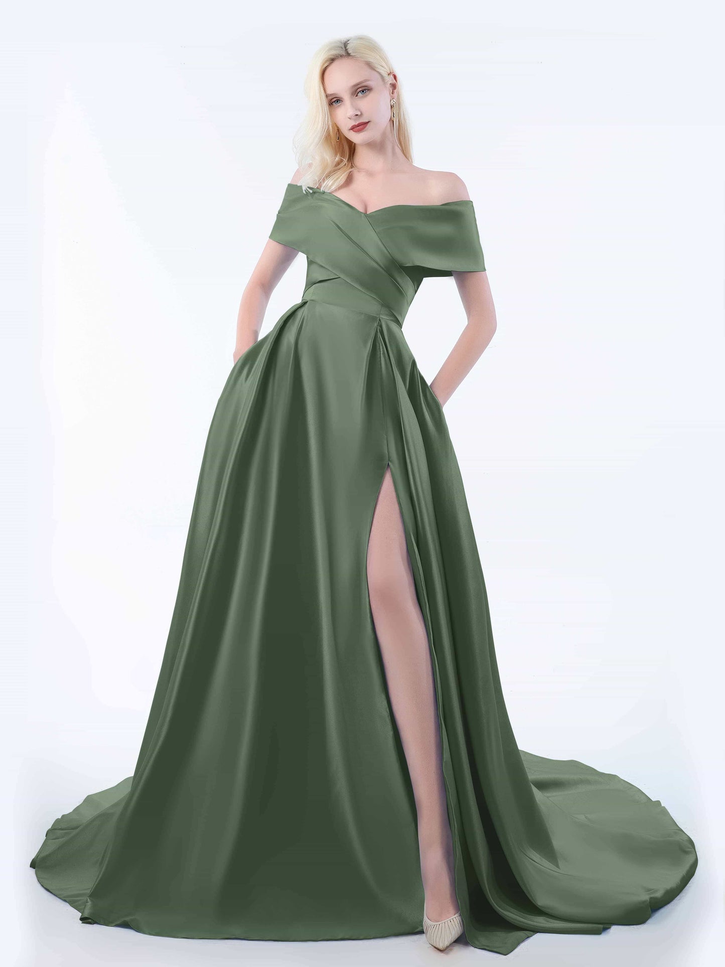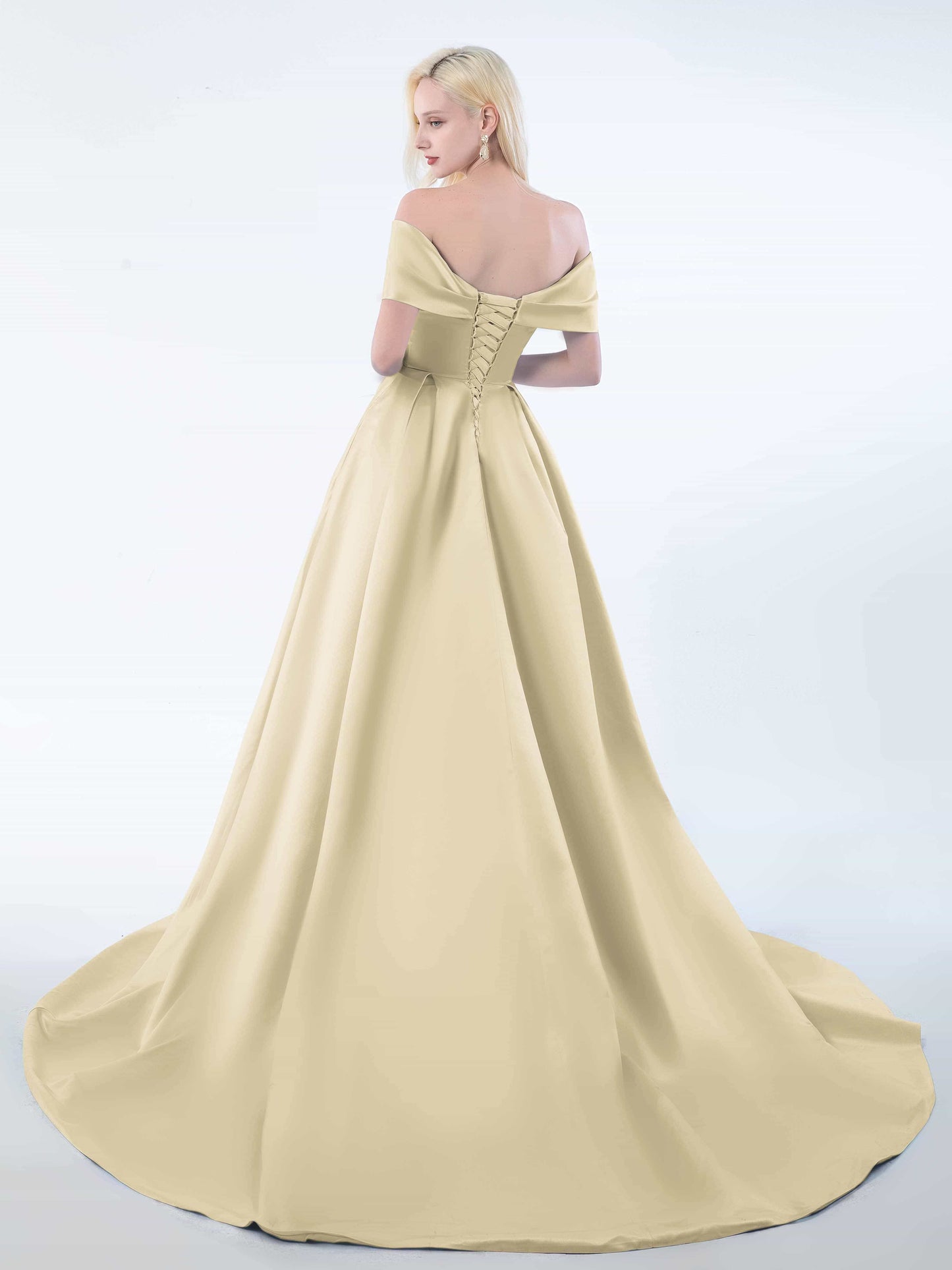 Striking Off The Shoulder Sweep Train Satin Dresses UK