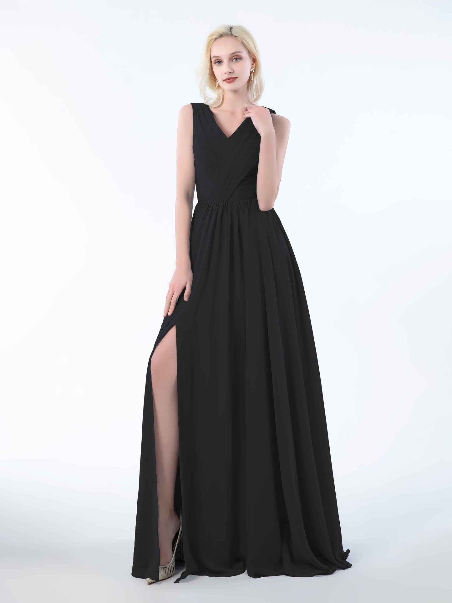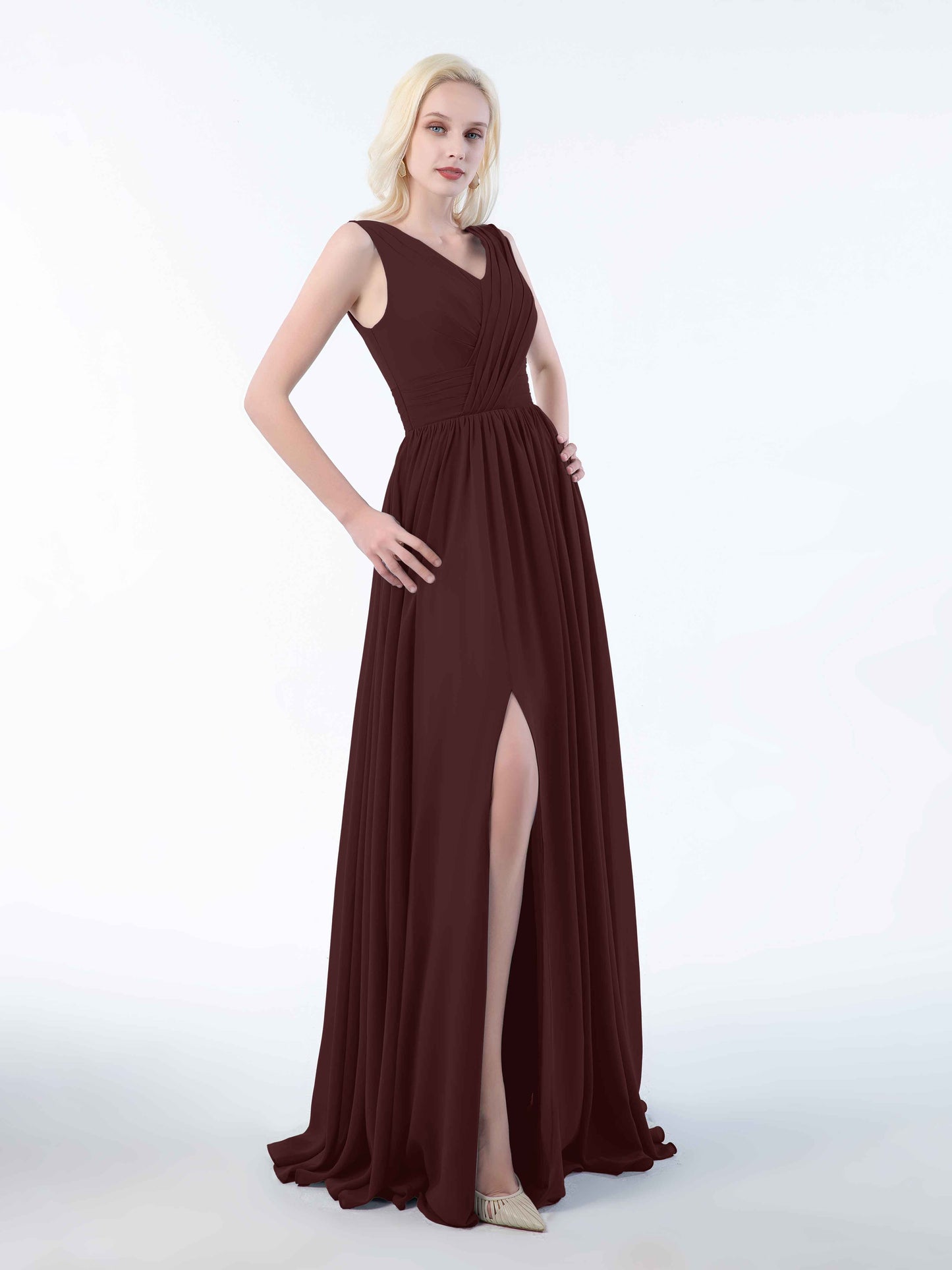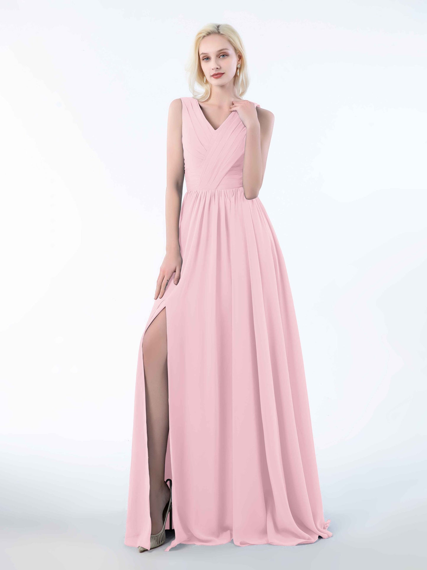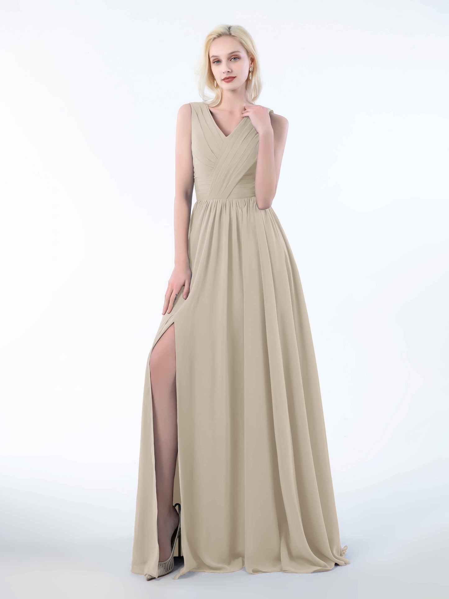 • Perfect for bridesmaids, these dresses add a touch of sophistication to any wedding. Shop now and dress your bridal party in these stunning sleeveless chiffon bridesmaid dresses that will leave everyone in awe.