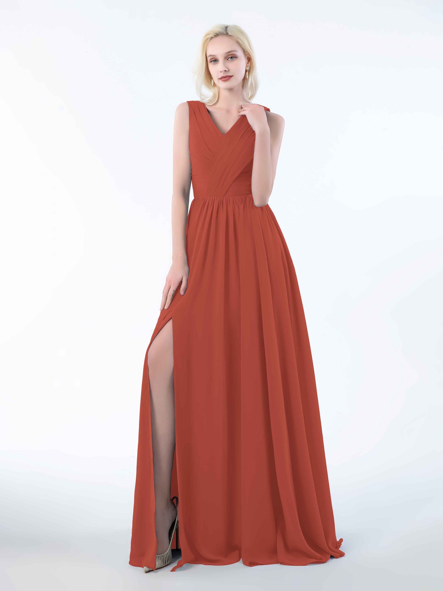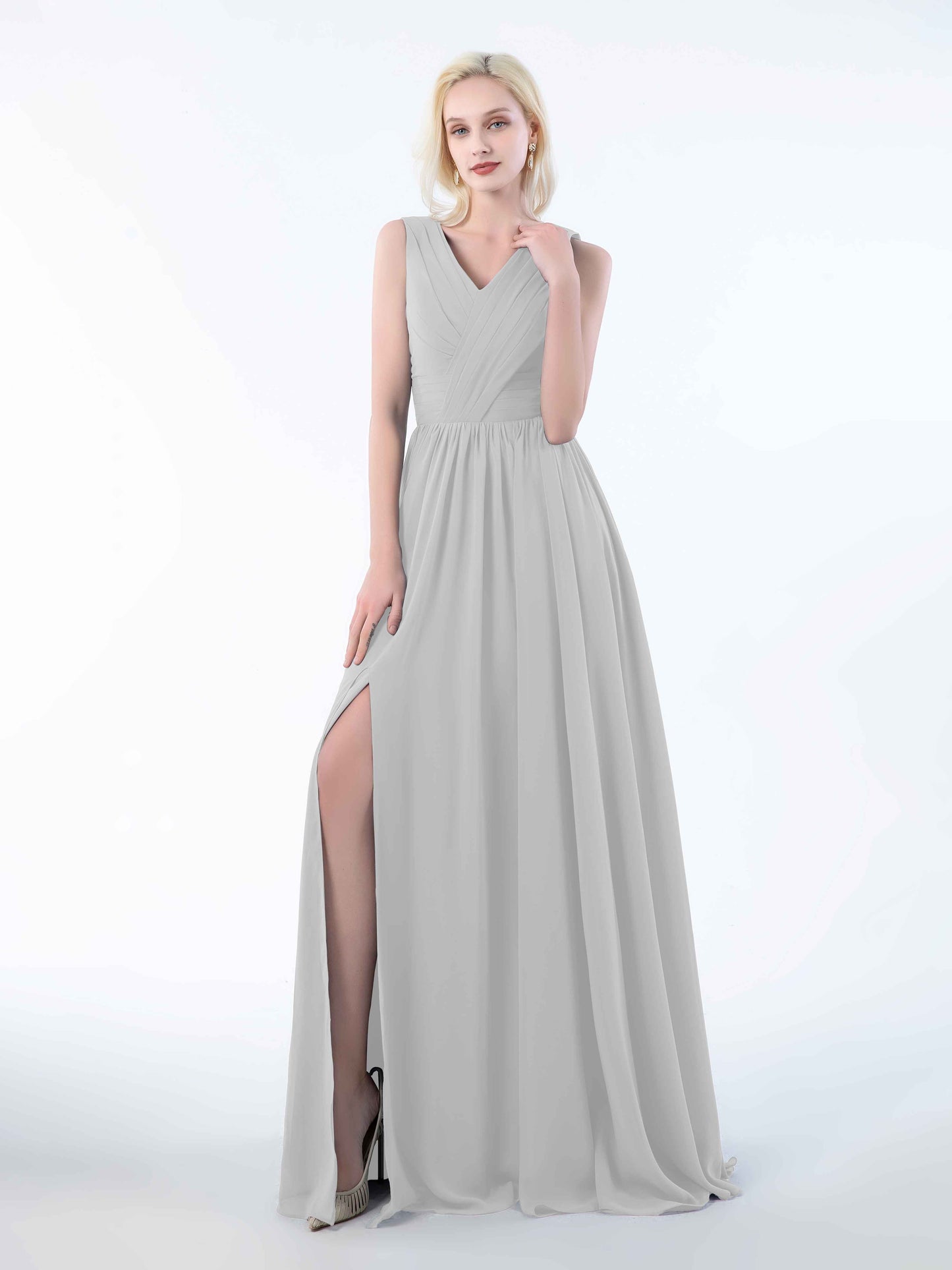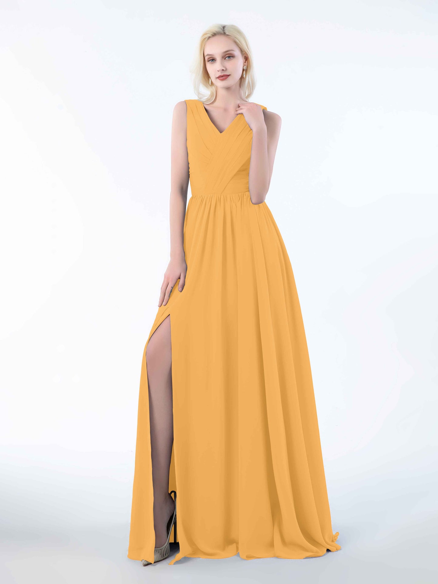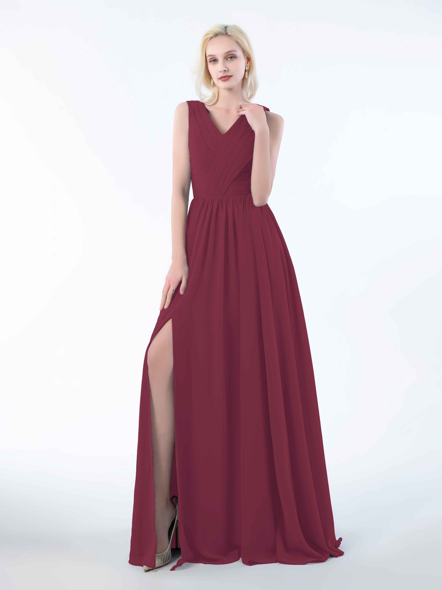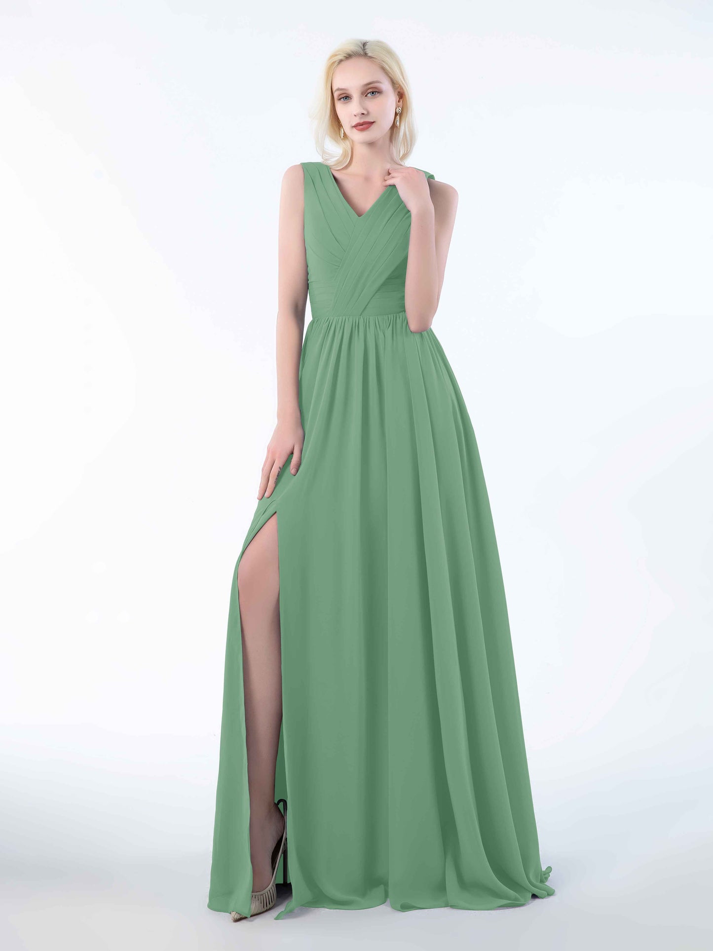 • Perfect for bridesmaids, these dresses add a touch of sophistication to any wedding. Shop now and dress your bridal party in these stunning sleeveless chiffon bridesmaid dresses that will leave everyone in awe.