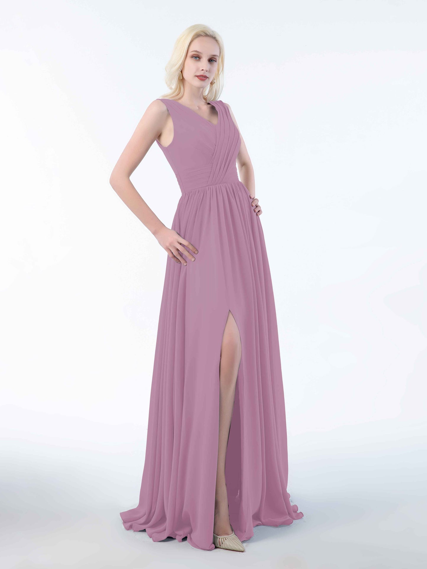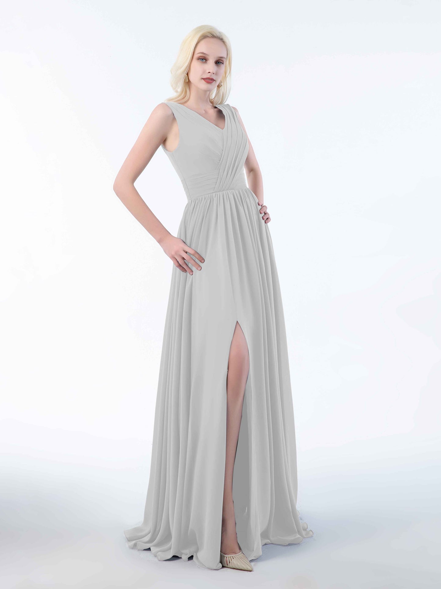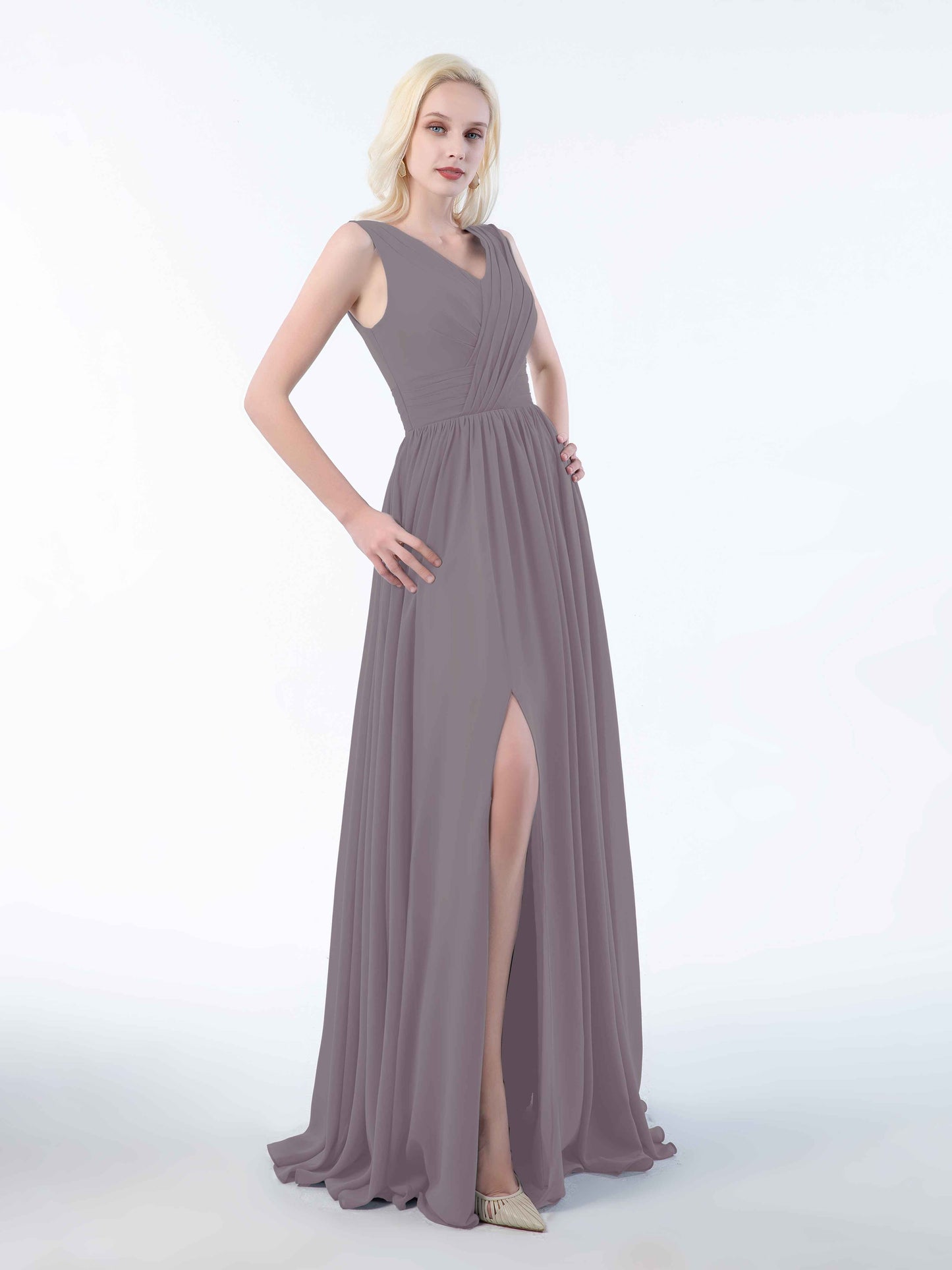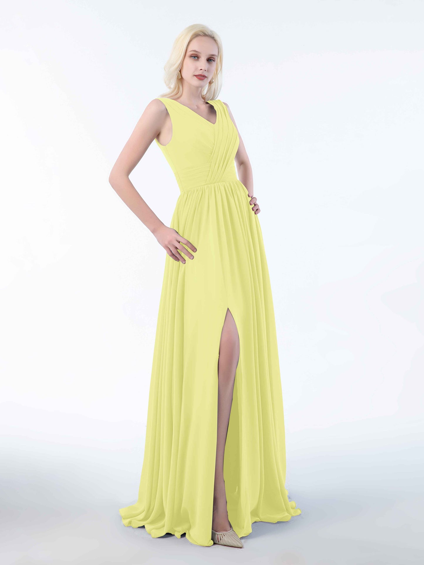Striking Ruched Sleeveless Slit Chiffon Bridesmaid Dresses UK