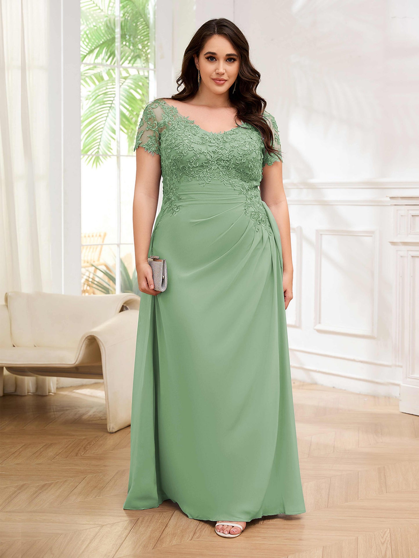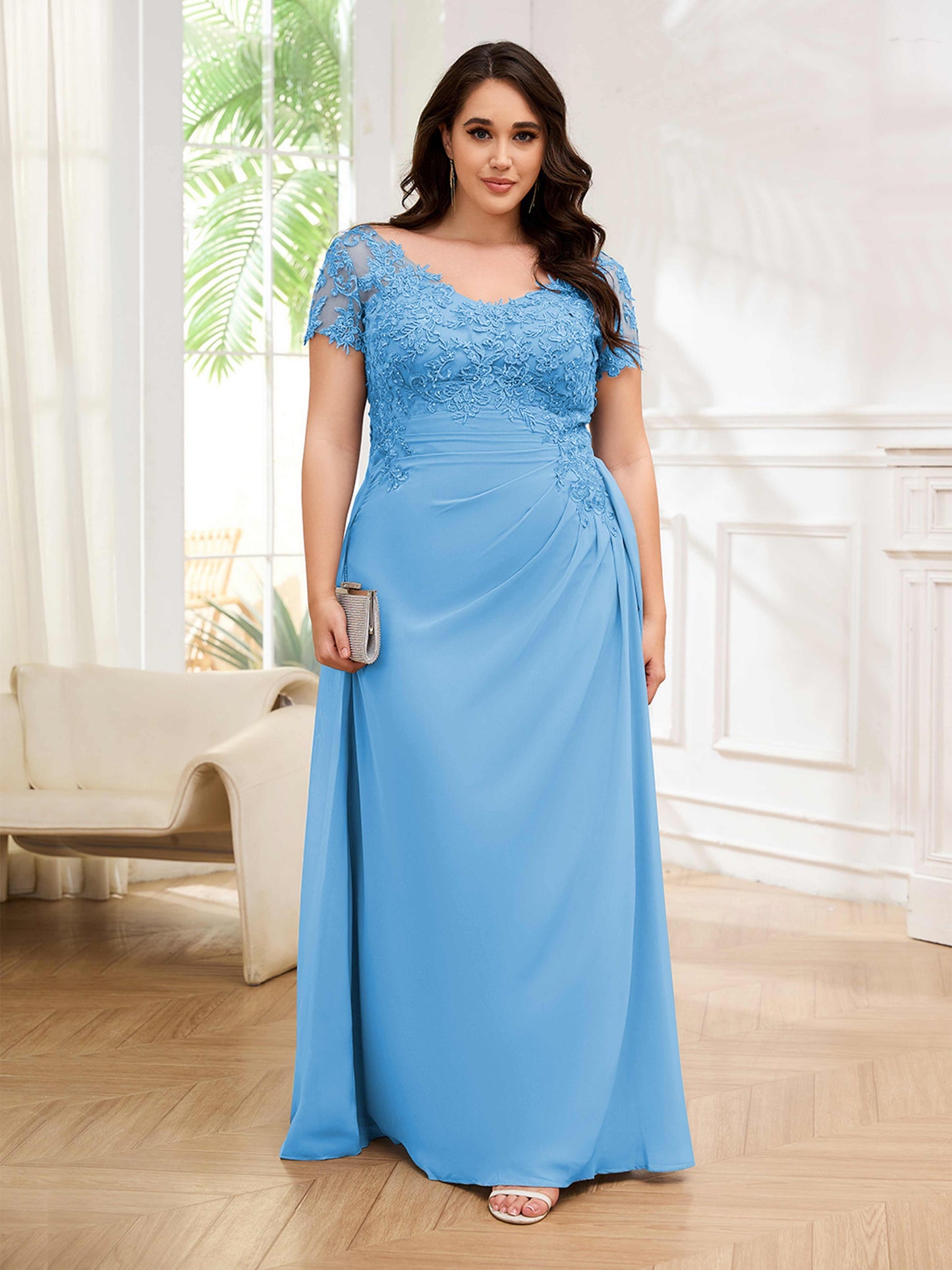• Turn heads with this stunning lace sheath chiffon mother of the bride dress. Designed for UK plus-size women, this dress offers a flattering silhouette and elegant look. Perfect for a formal wedding, this dress will make you look stunning.