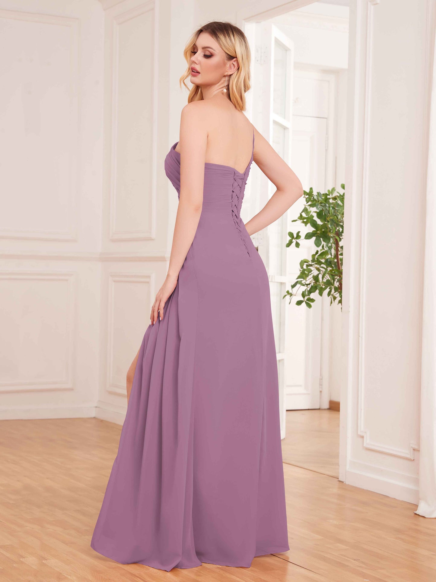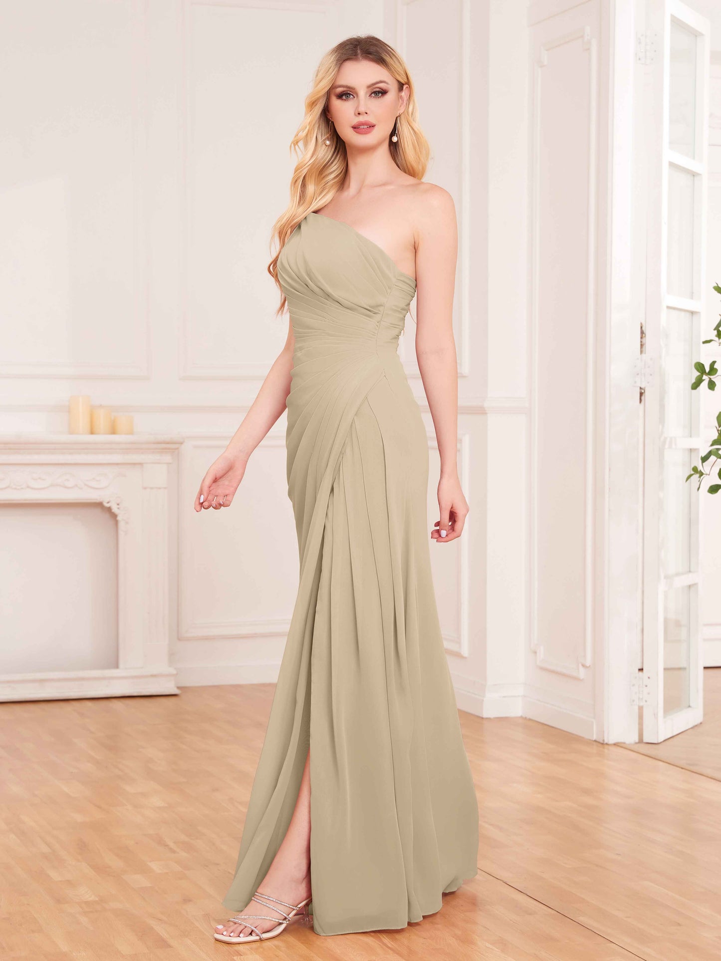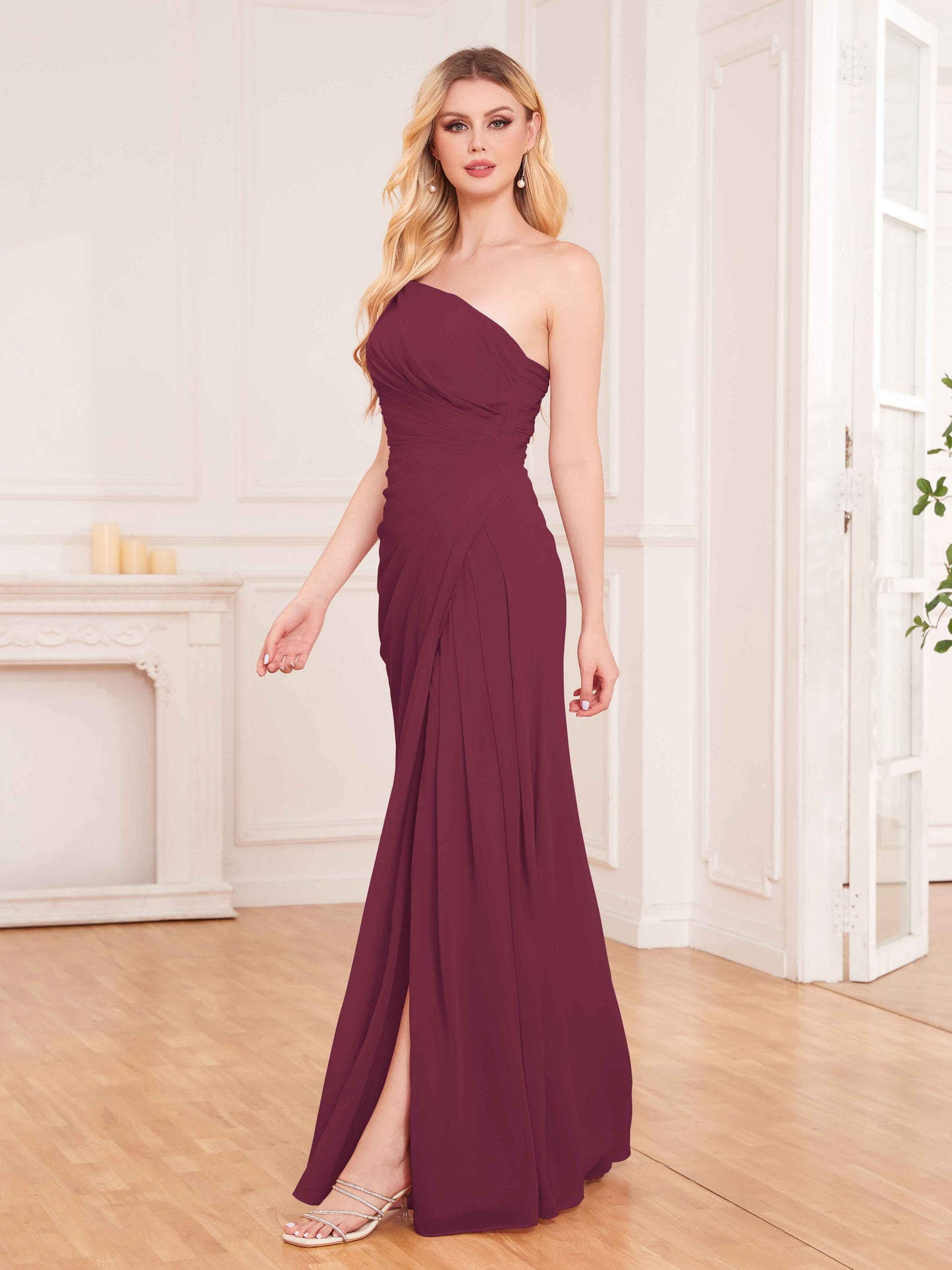 Stunning One Shoulder Ruched Slit Chiffon Bridesmaid Dresses UK