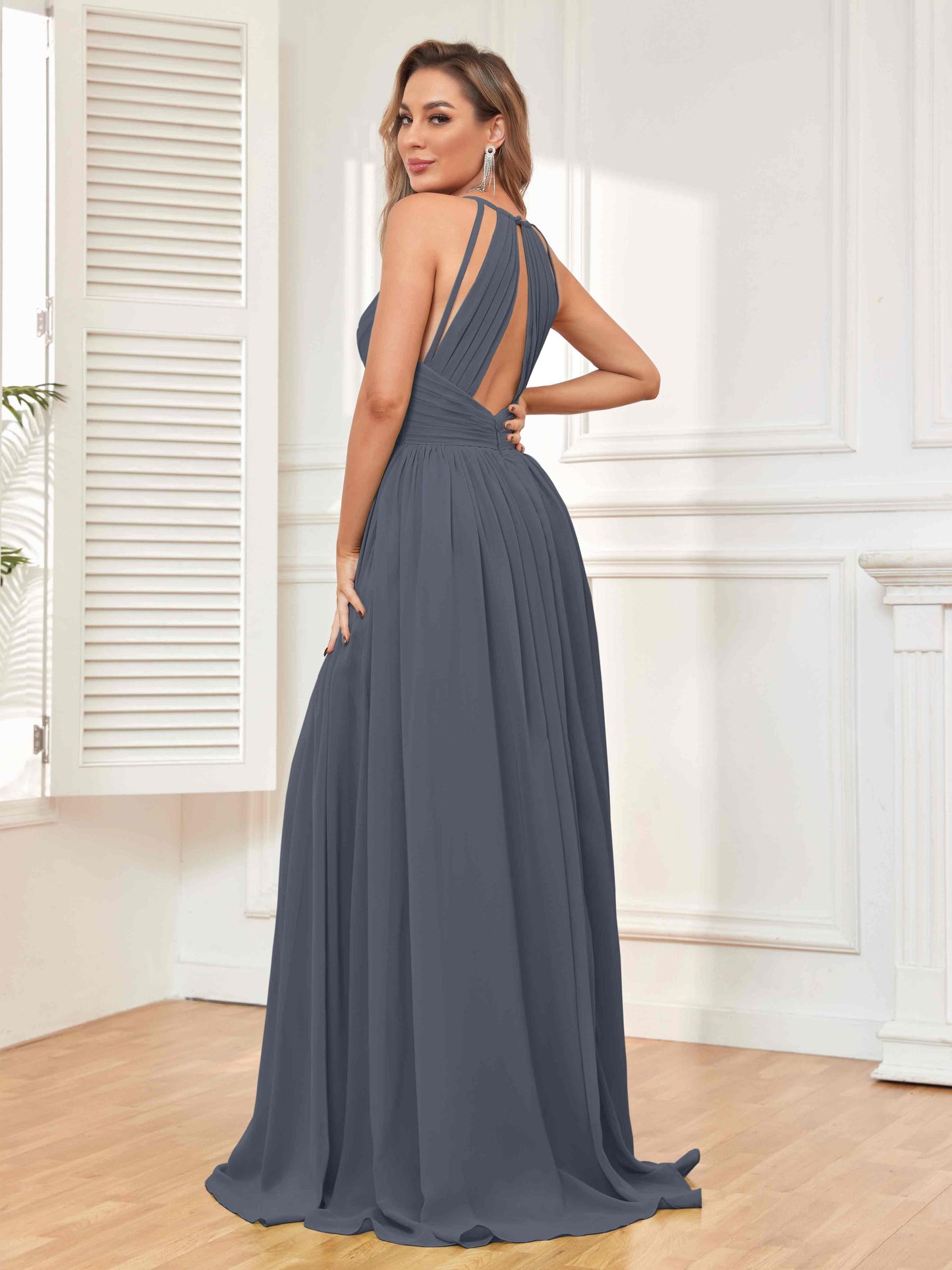 Stylish Spaghetti Straps Floor Length Chiffon Bridesmaid Dresses UK