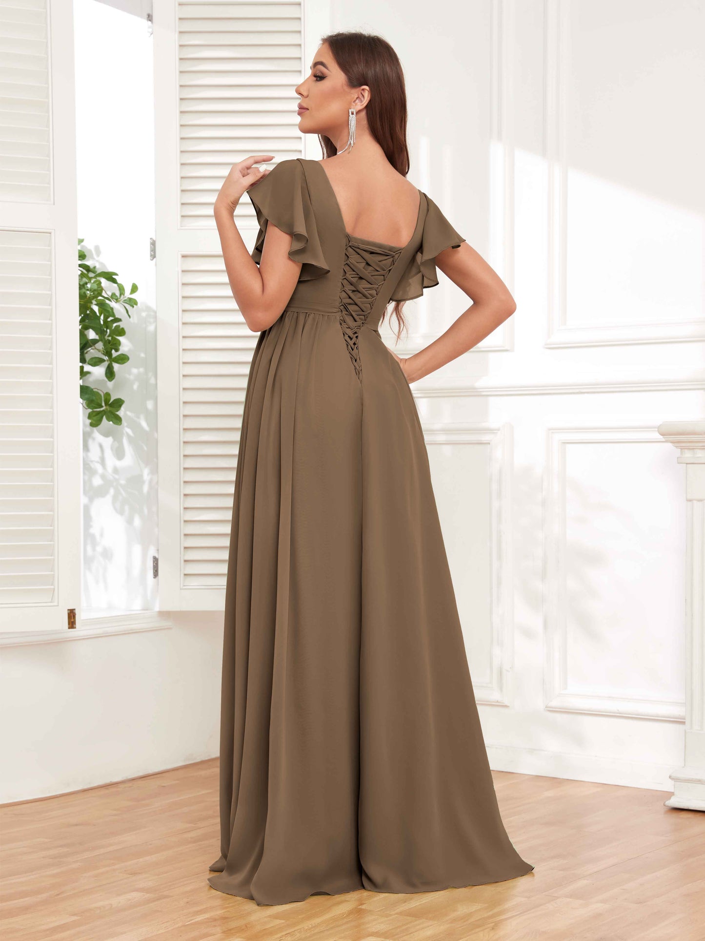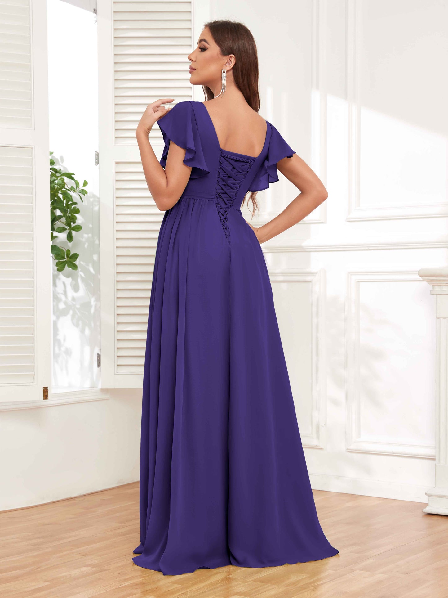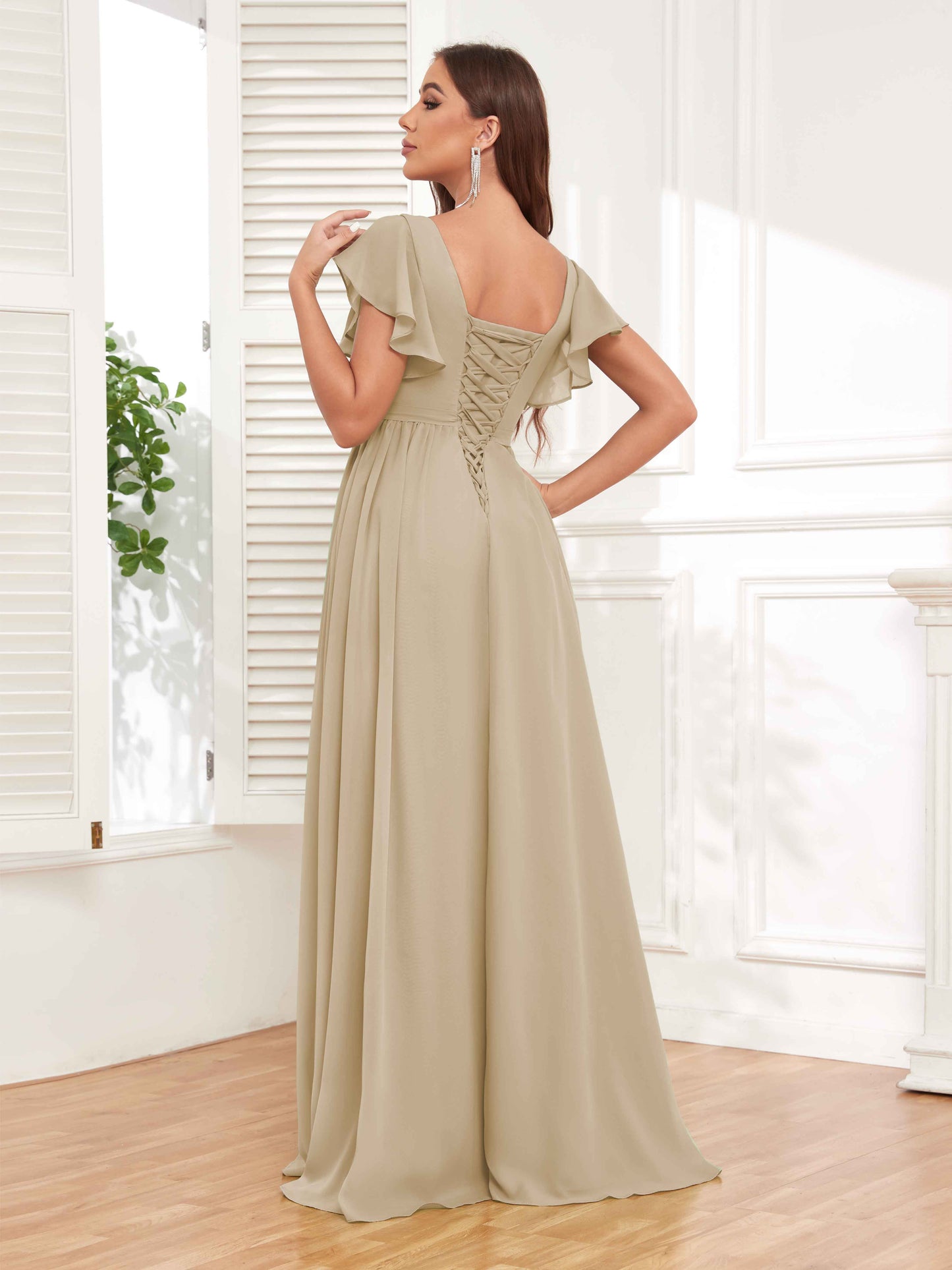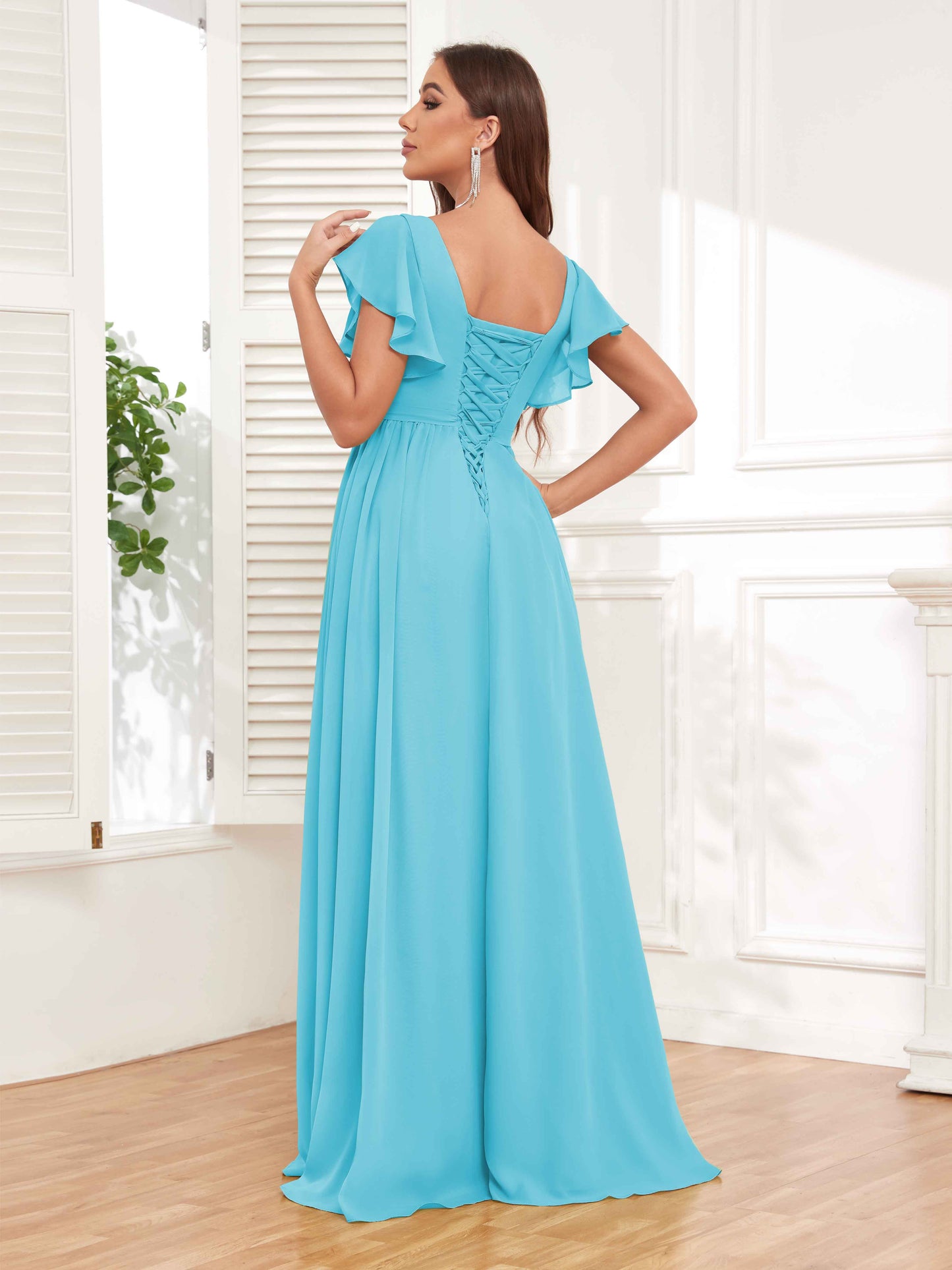 Stylish V Neck Short Sleeves Chiffon Bridesmaid Dresses UK