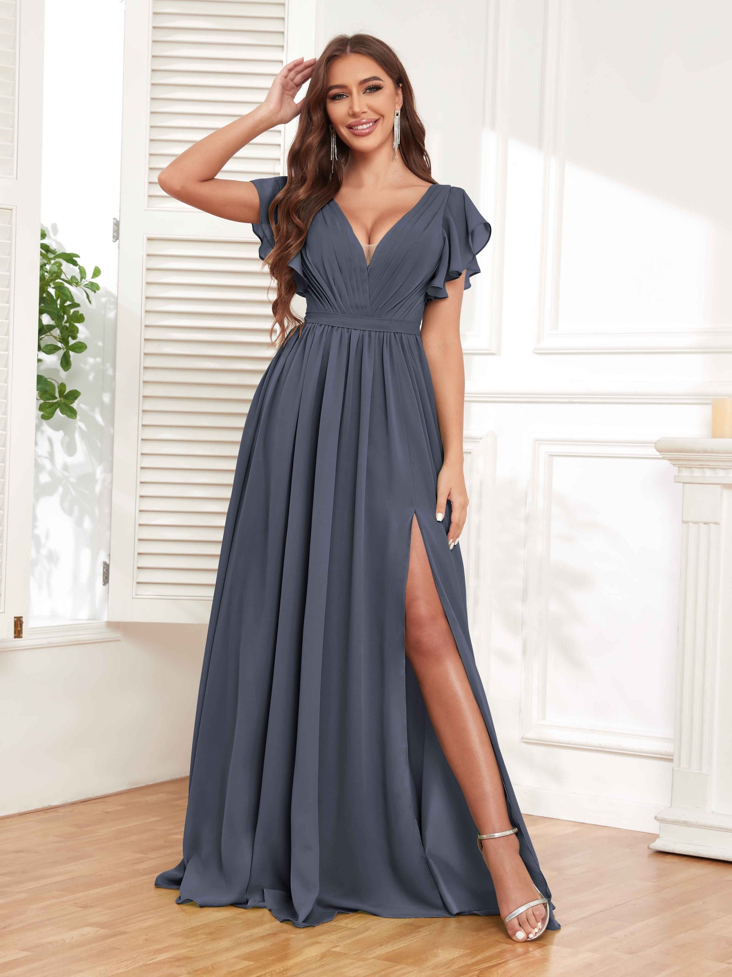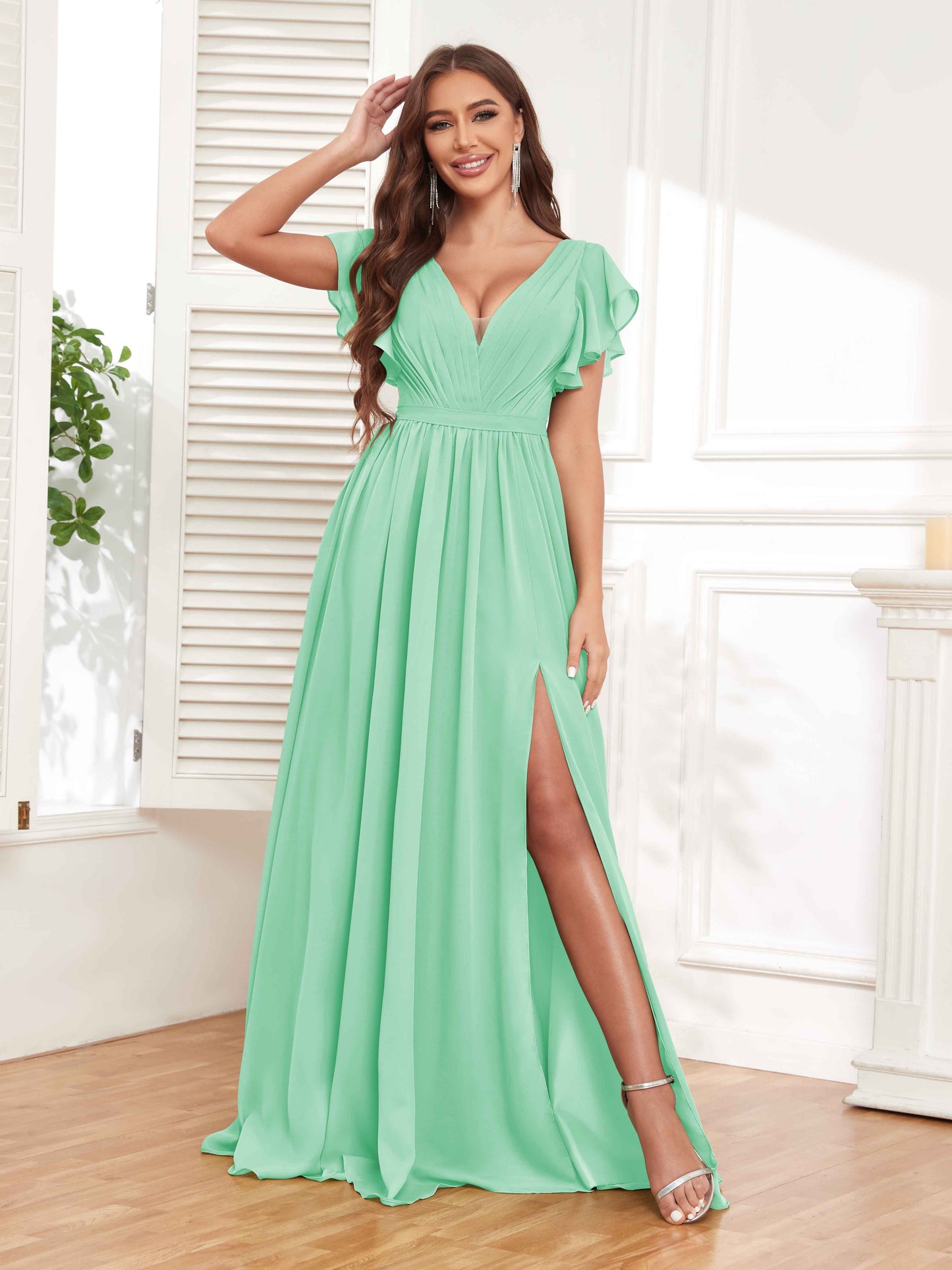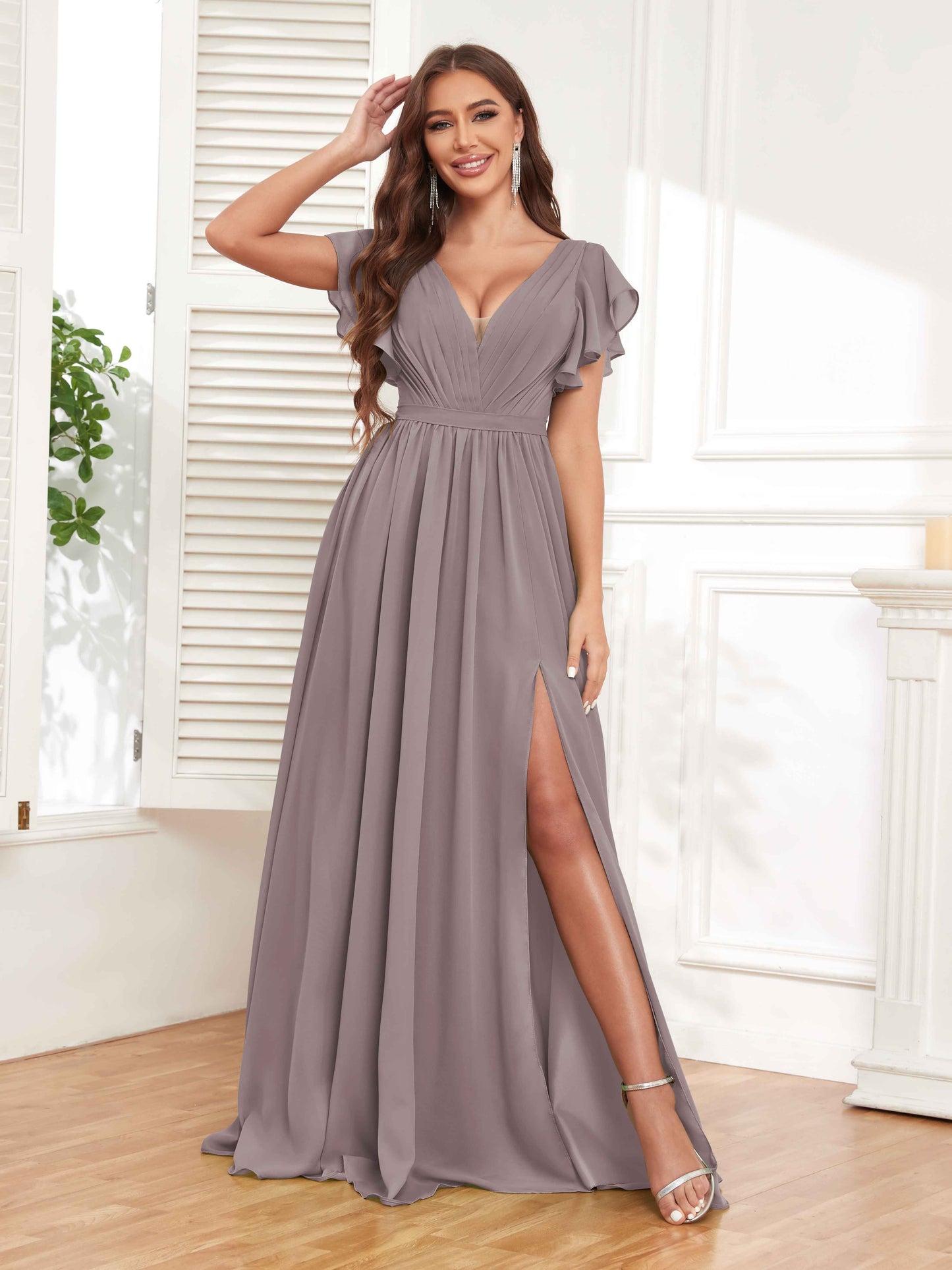 • Embrace style and comfort with Mollyevers' chiffon bridesmaid dress featuring a stylish V-neckline and short sleeves. The flowing chiffon fabric drapes gracefully, while the V-neckline complements your neckline. This dress is perfect for those who want to look effortlessly chic and feel comfortable throughout the event.