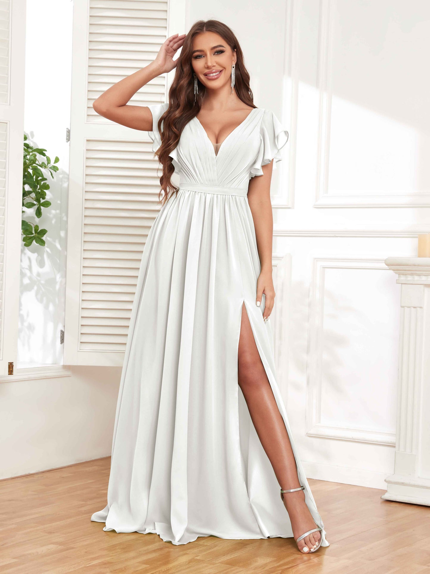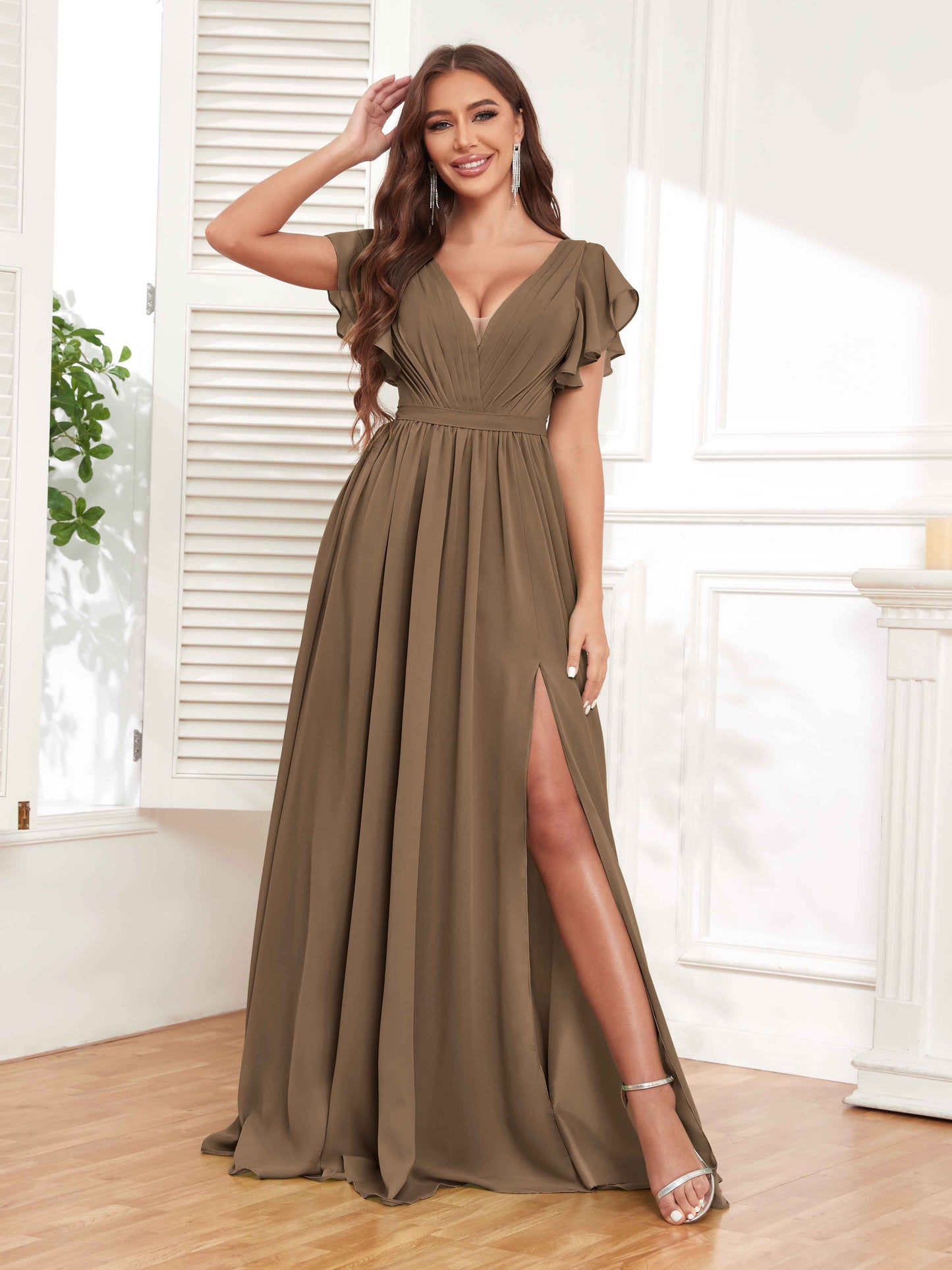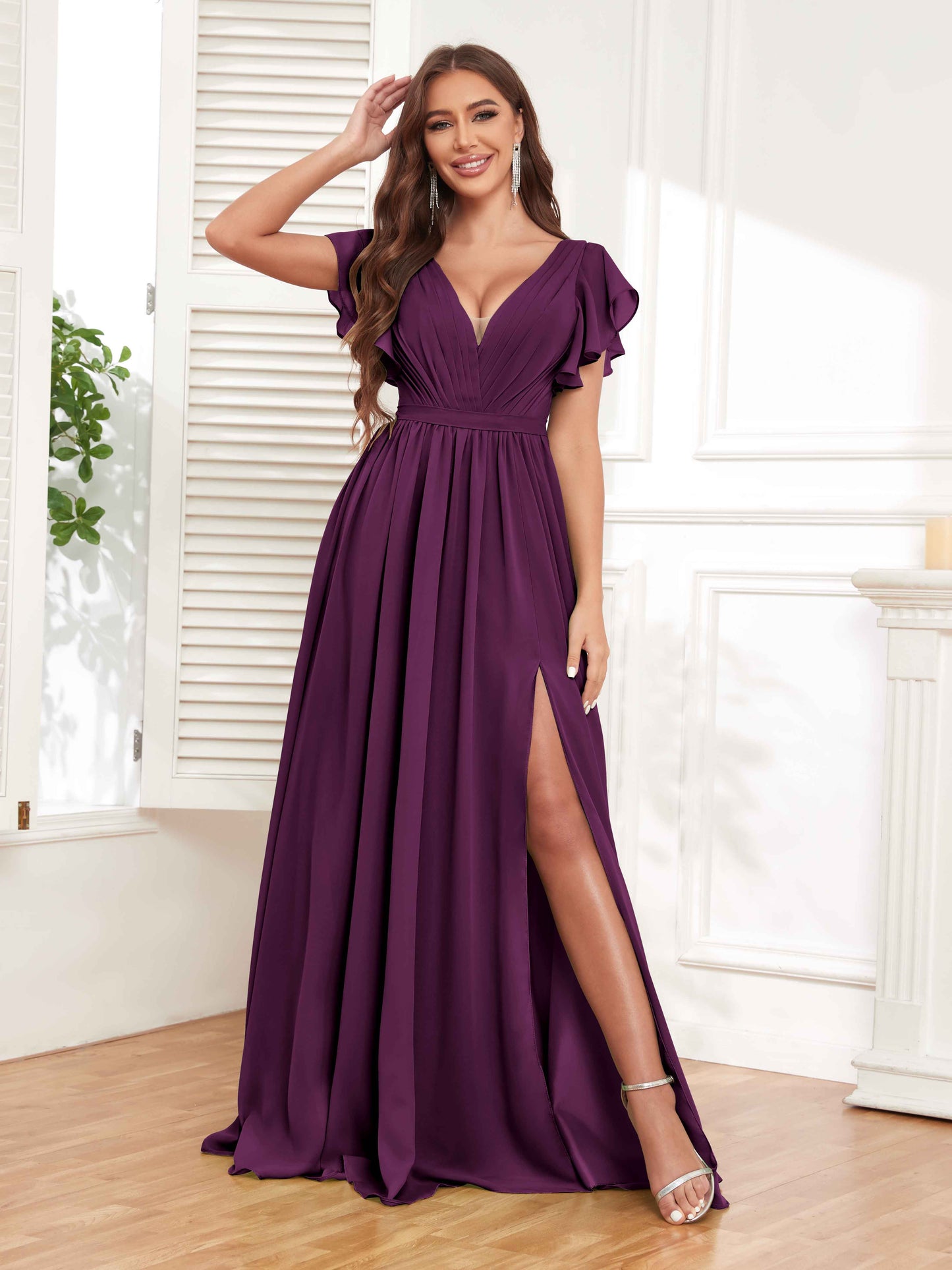 • Embrace style and comfort with Mollyevers' chiffon bridesmaid dress featuring a stylish V-neckline and short sleeves. The flowing chiffon fabric drapes gracefully, while the V-neckline complements your neckline. This dress is perfect for those who want to look effortlessly chic and feel comfortable throughout the event.