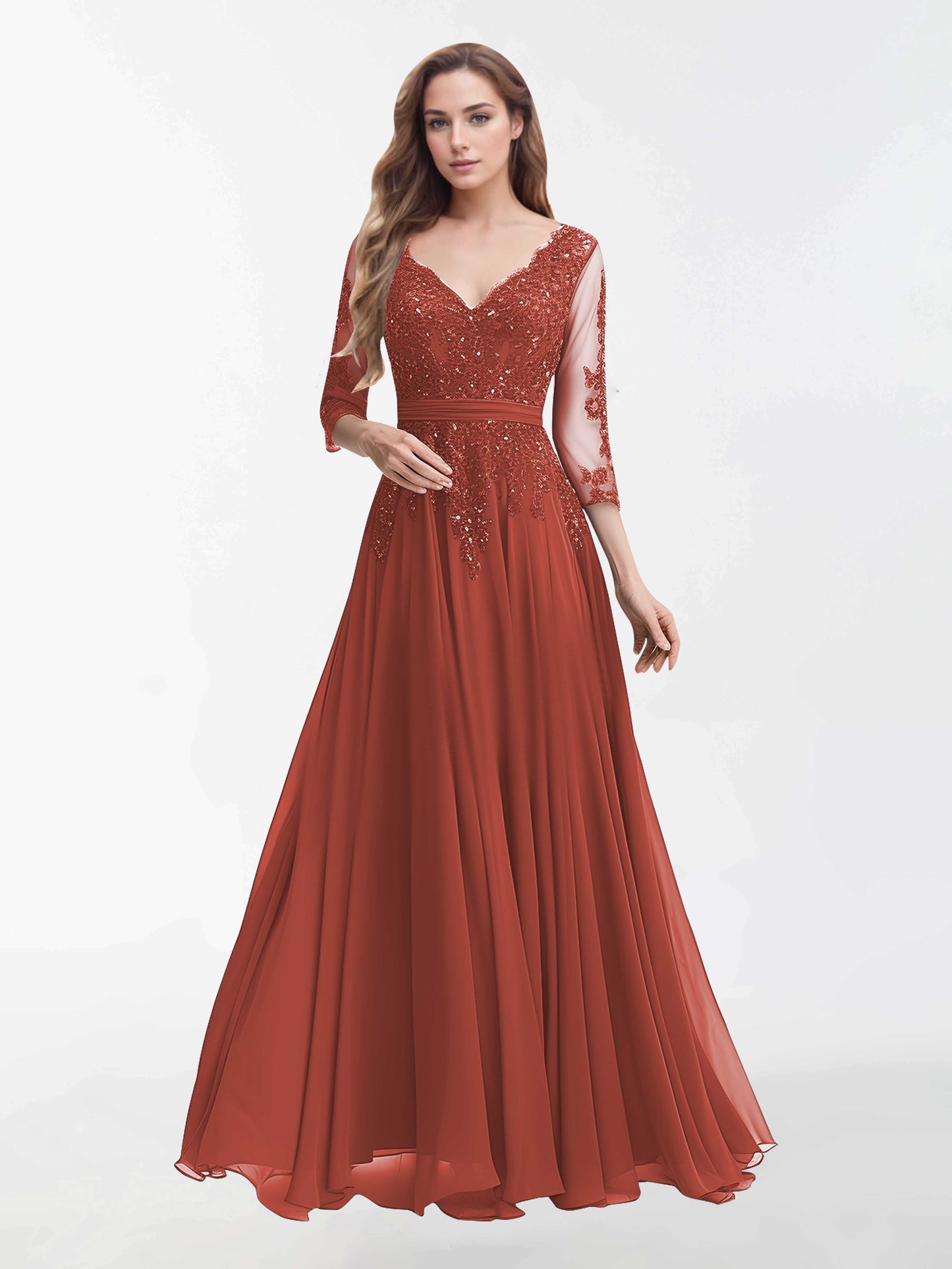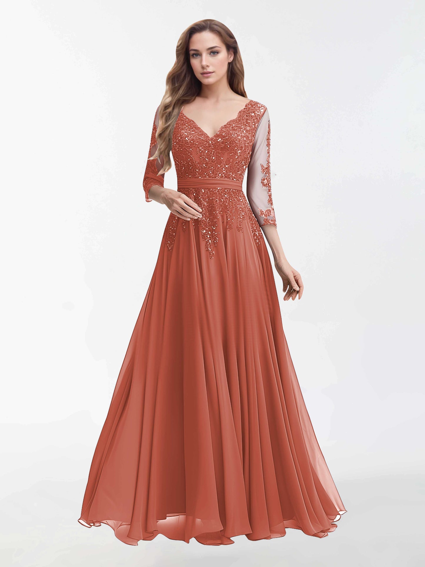 Stylish V Neck Sleeves Long Chiffon Mother Of The Bride Dresses