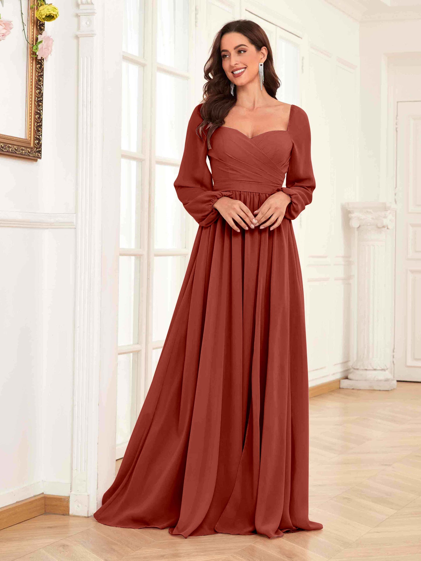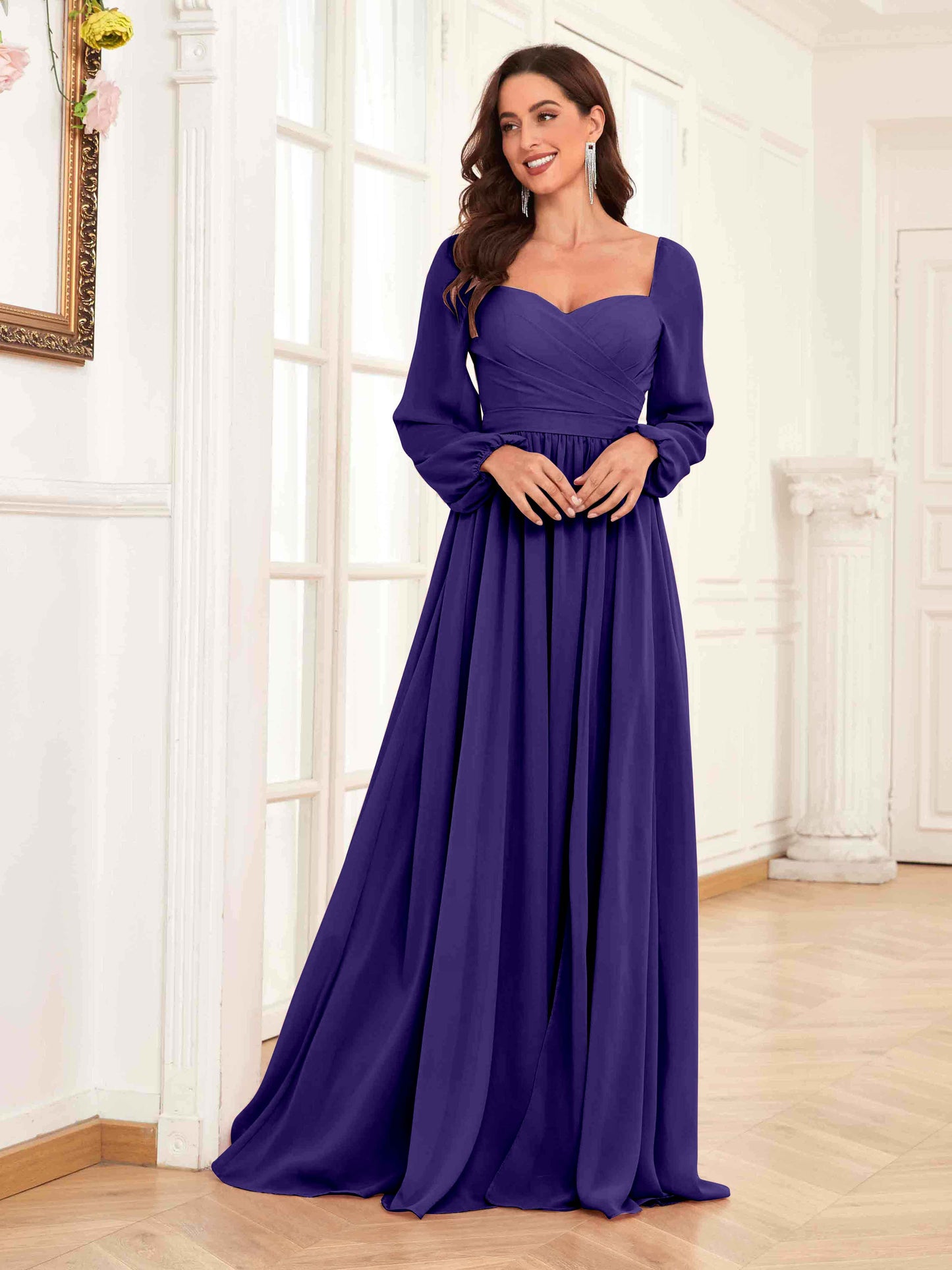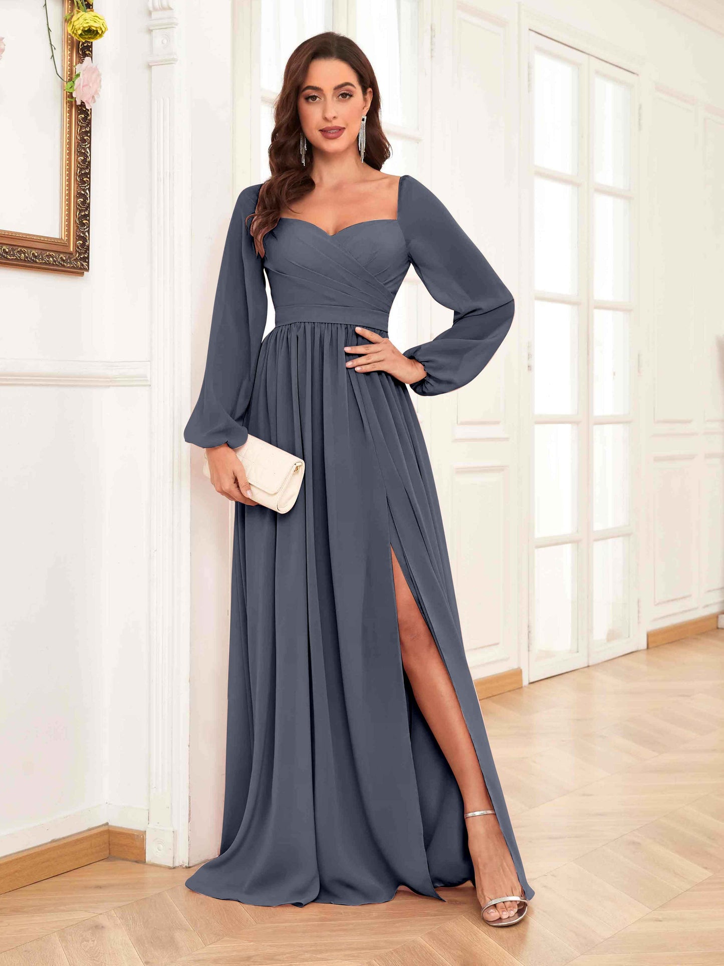 Sweetheart Long Sleeves Pleated Slit Maxi Chiffon Mother Of The Bride Dresses
