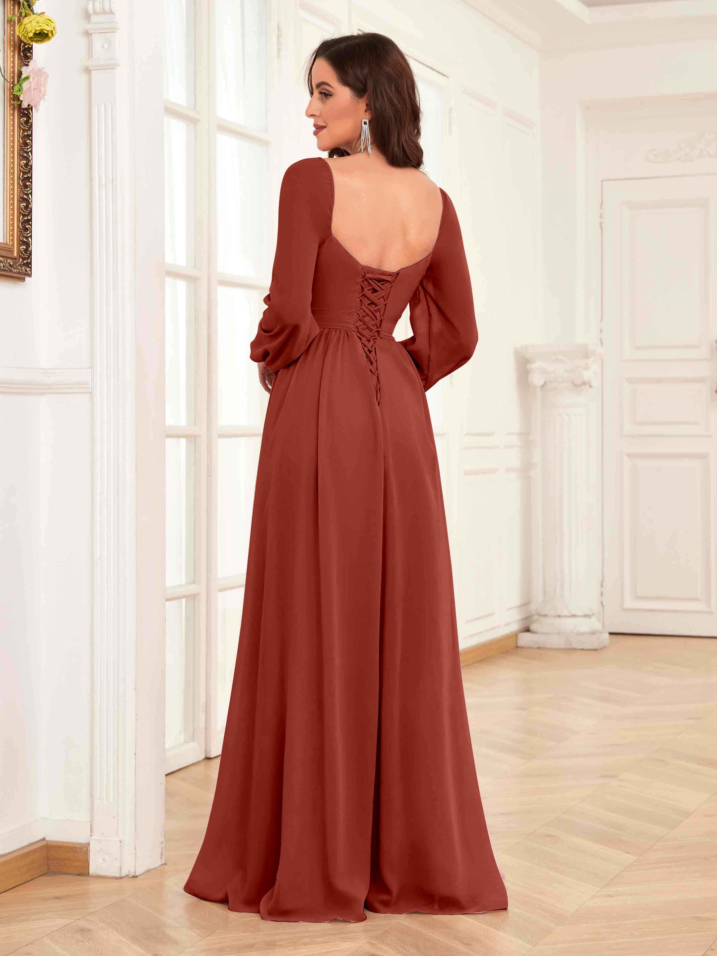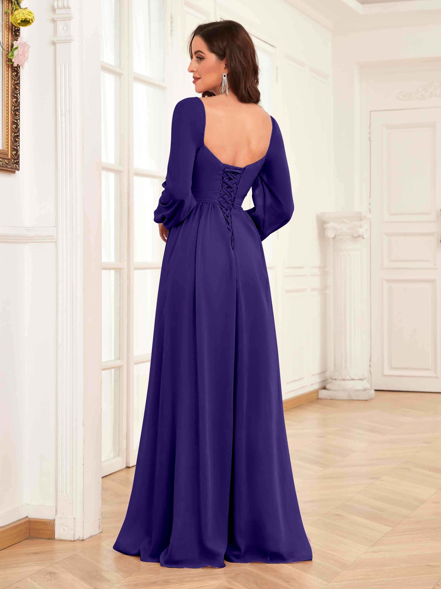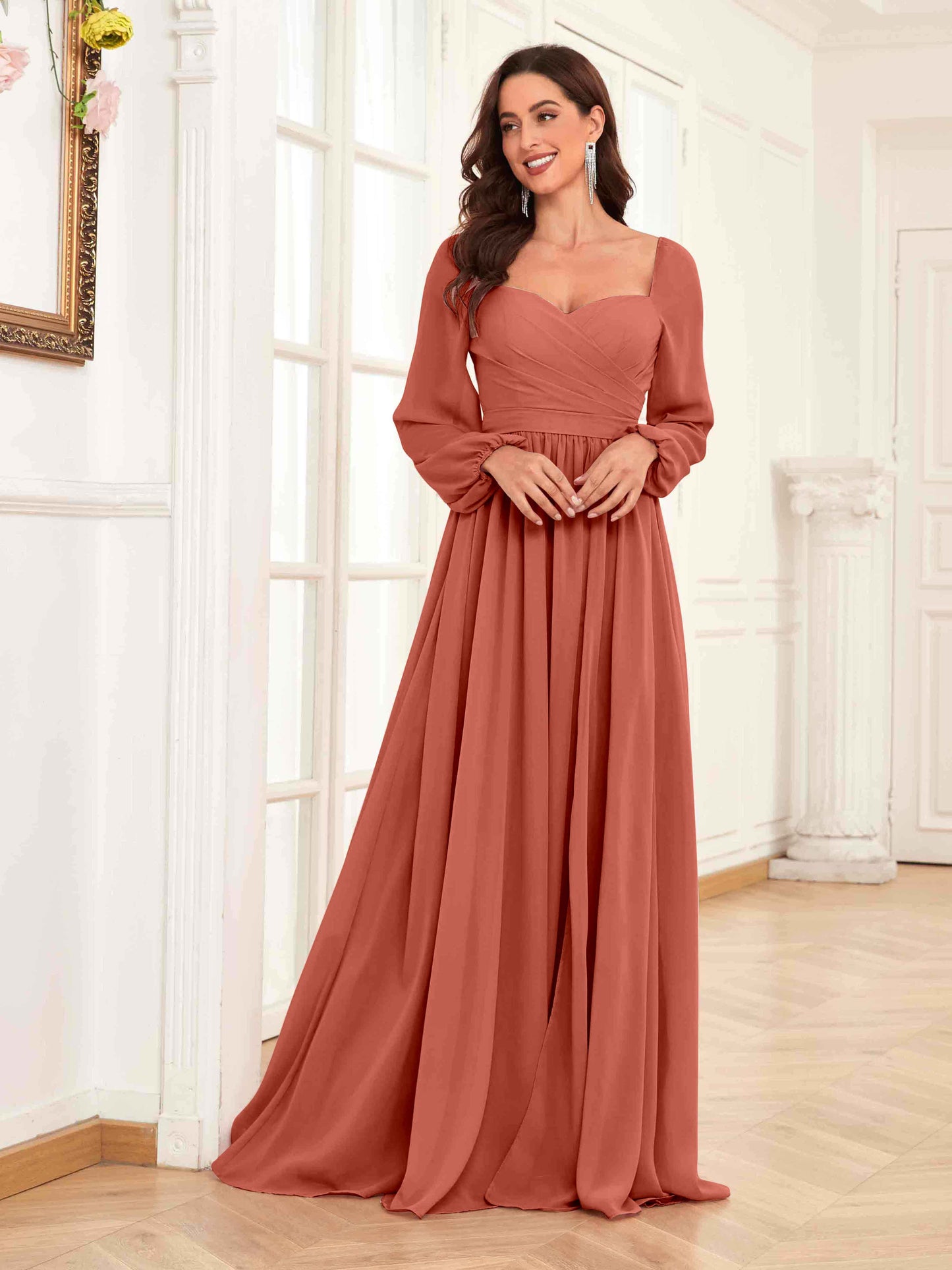 Sweetheart Long Sleeves Pleated Slit Maxi Chiffon Mother Of The Bride Dresses