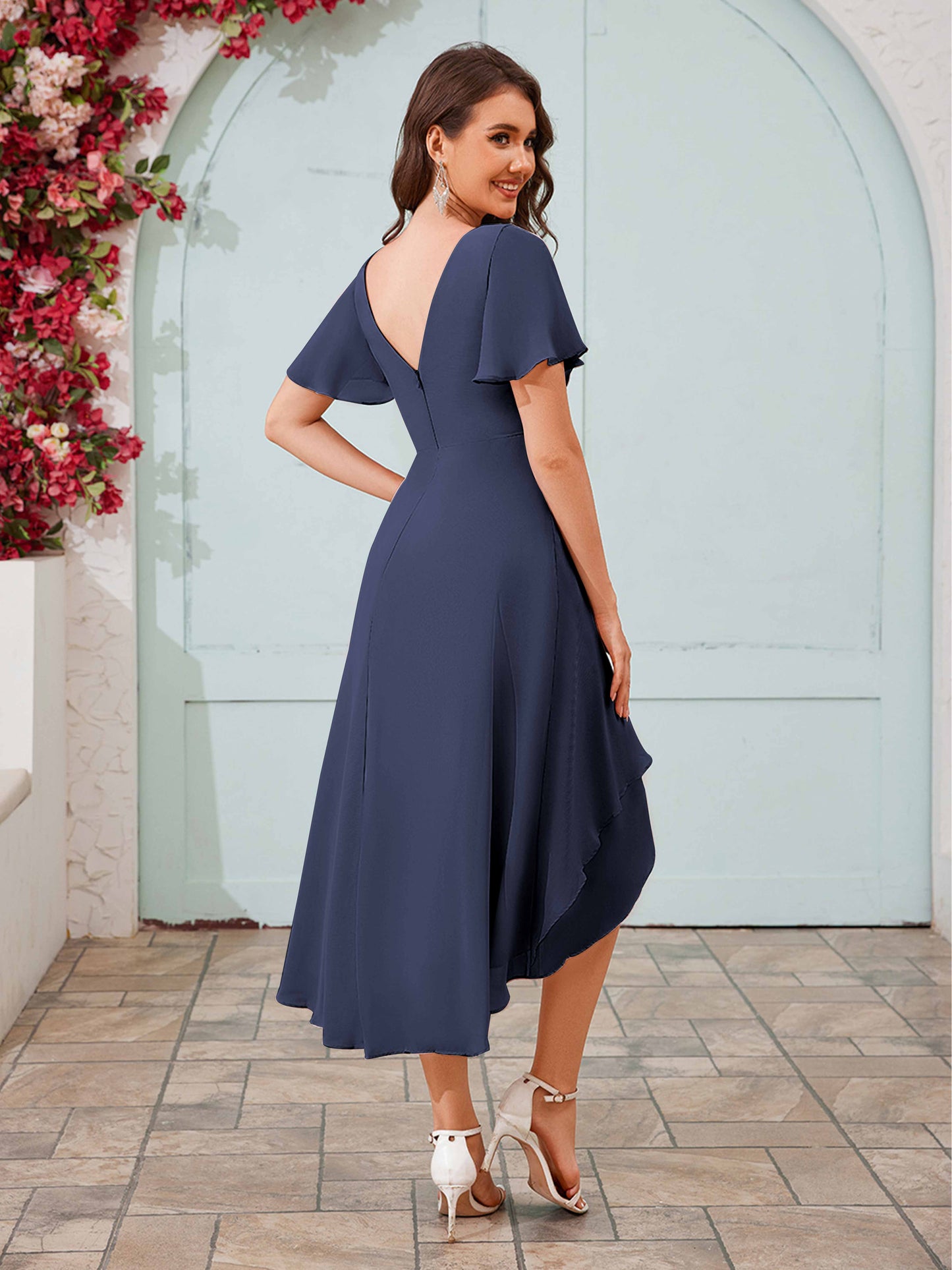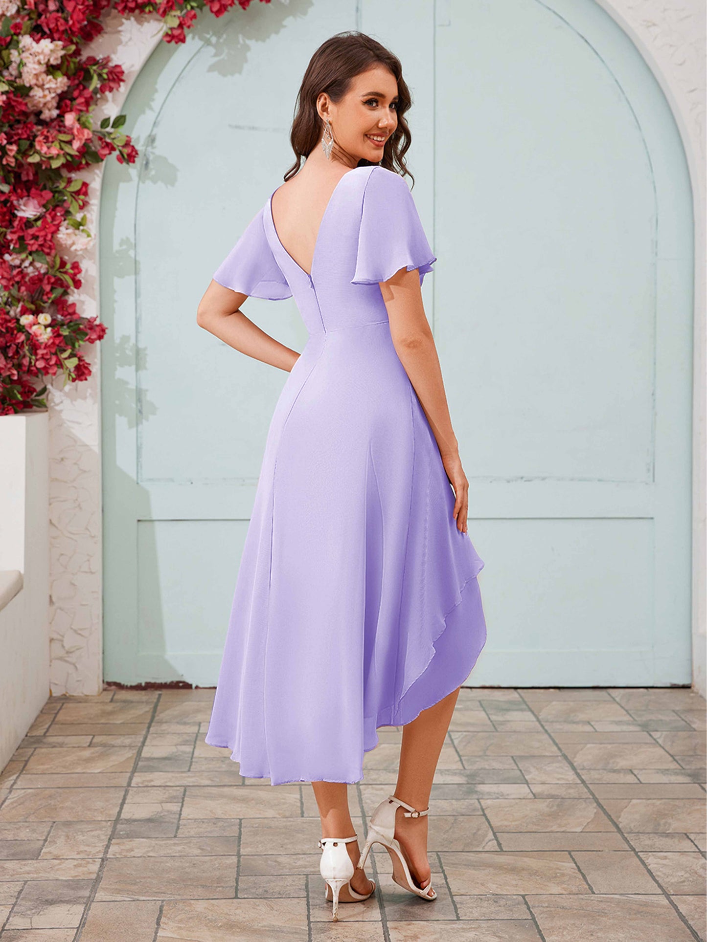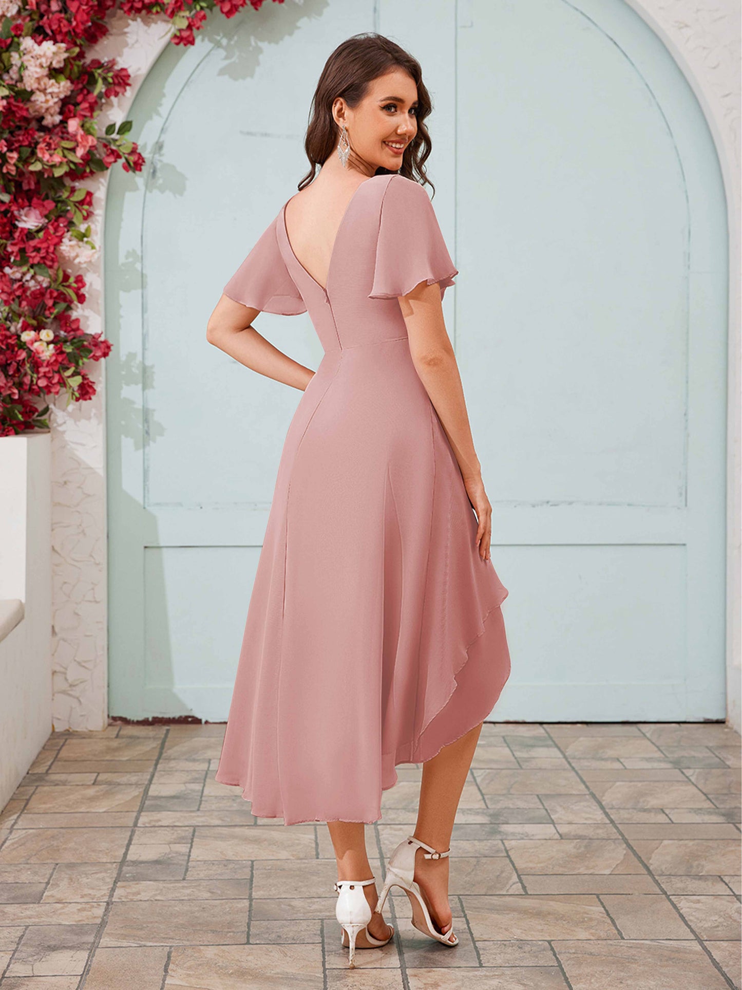 This dress made me feel so special at my best friend's wedding. The short sleeves and V-neck gave it a soft, romantic look, while the high-low hem kept it fun and fresh. The chiffon fabric was breezy and easy to move in, which was perfect for a long day of celebrating. I'd wear it again in a heartbeat!