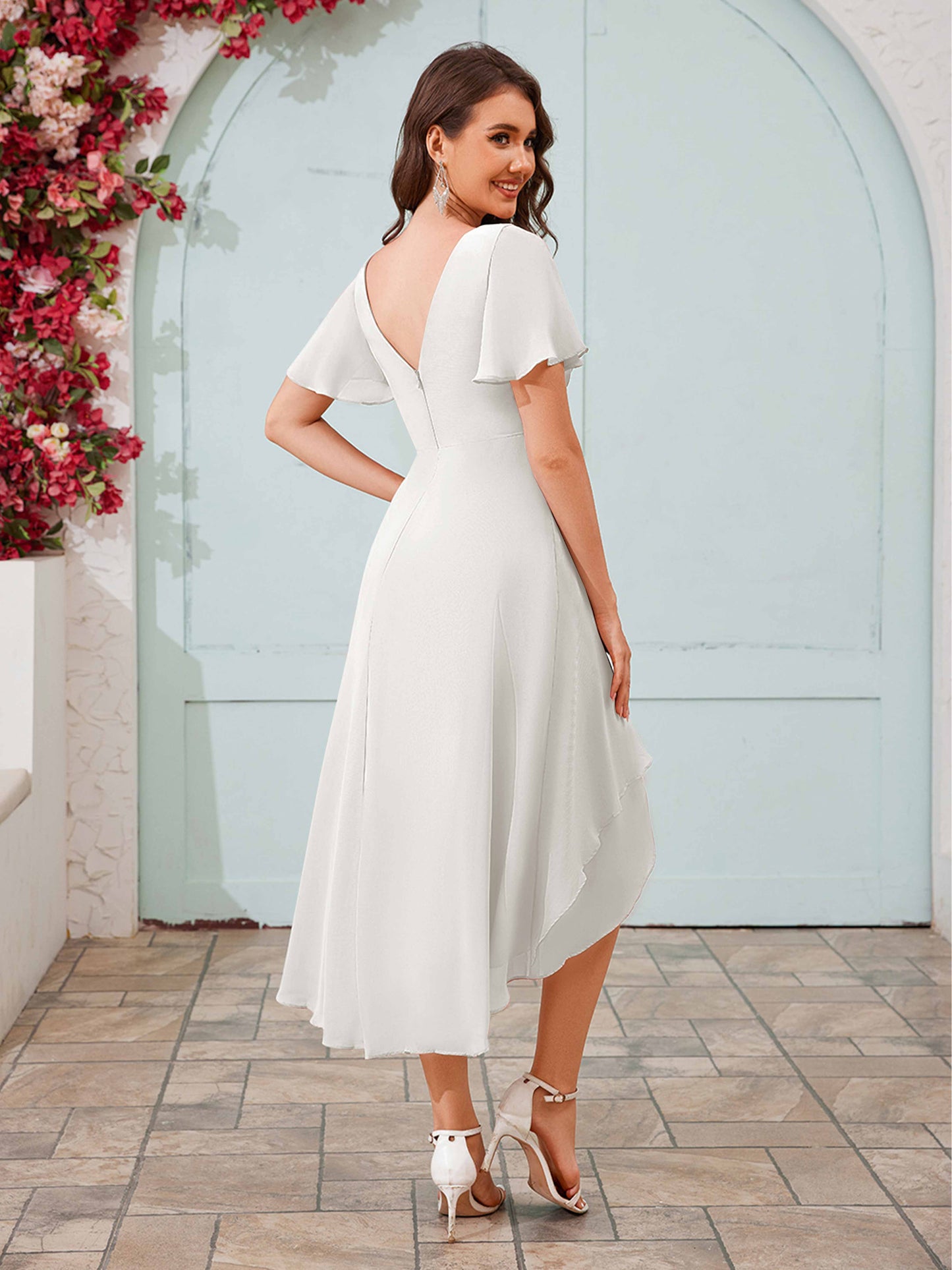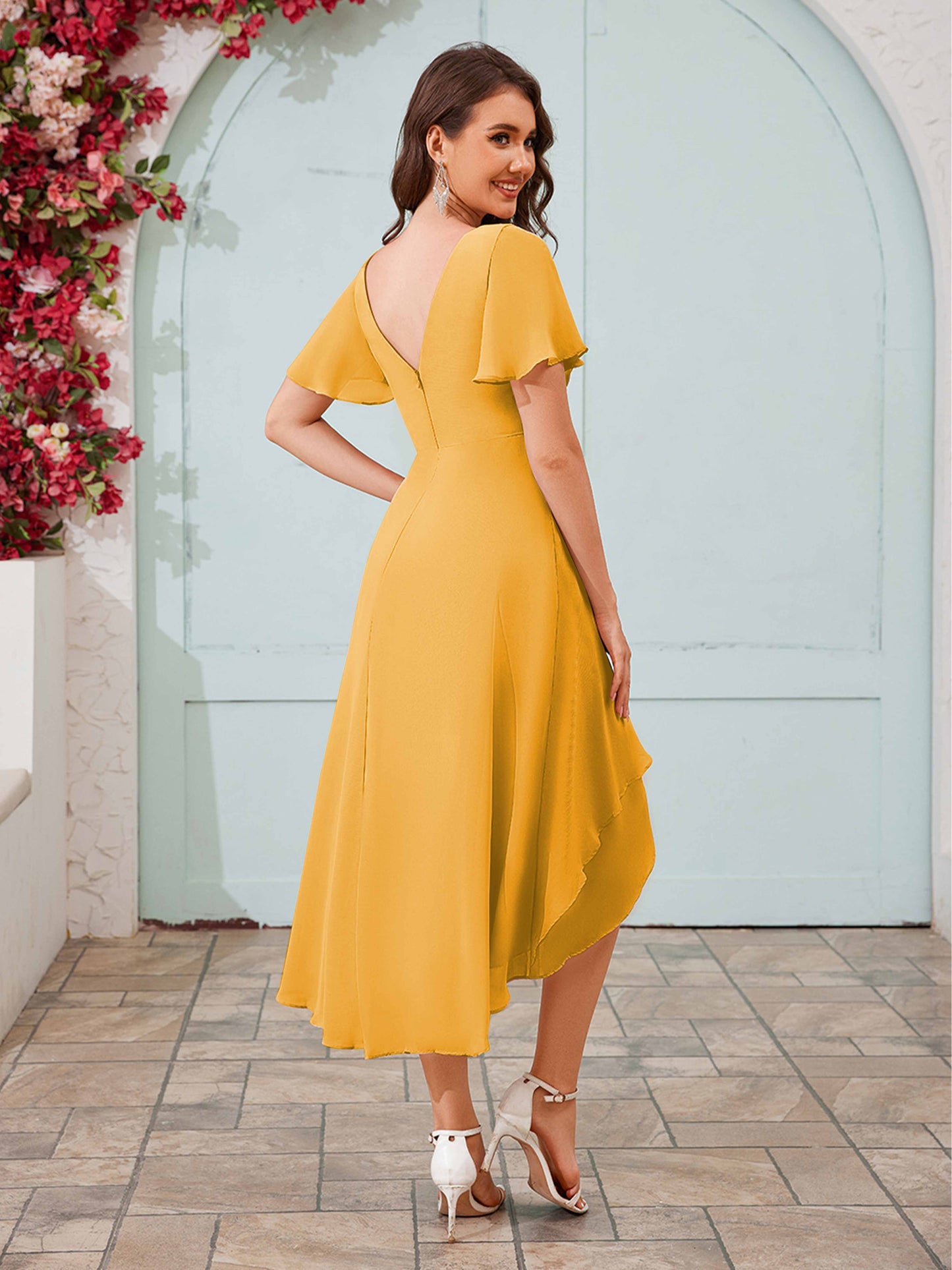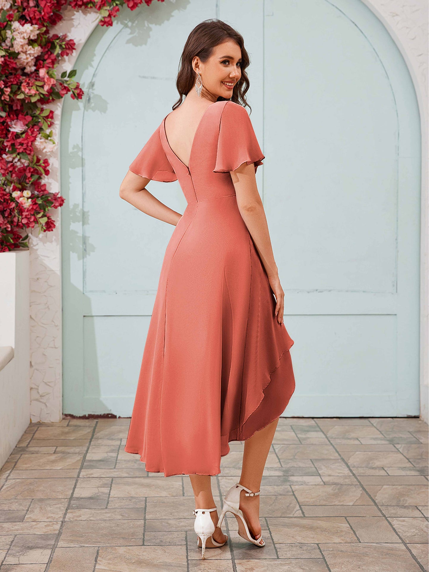 This dress made me feel so special at my best friend's wedding. The short sleeves and V-neck gave it a soft, romantic look, while the high-low hem kept it fun and fresh. The chiffon fabric was breezy and easy to move in, which was perfect for a long day of celebrating. I'd wear it again in a heartbeat!