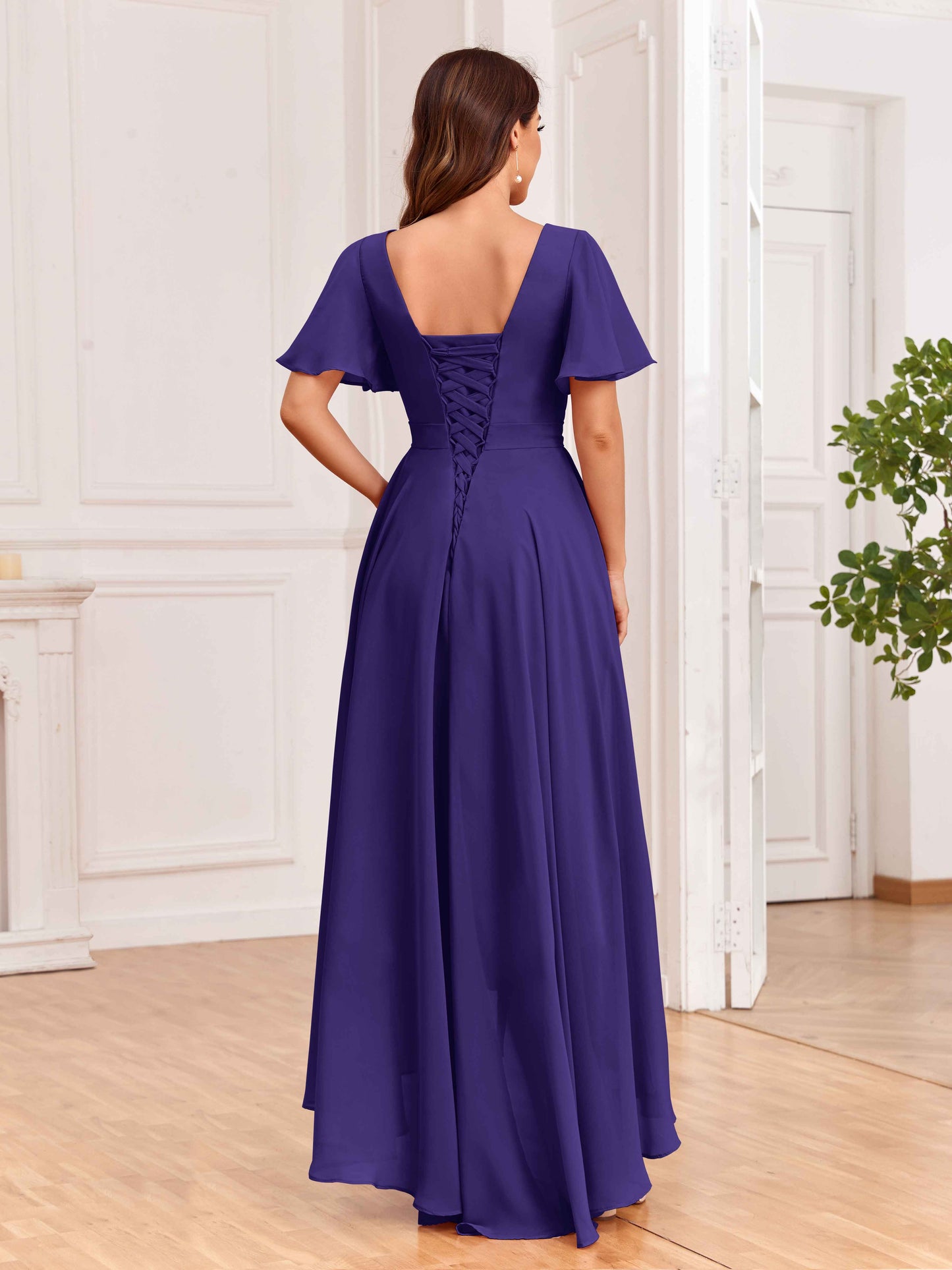 • The lace-up detail adds a unique and stylish element, while the flowing chiffon fabric creates a graceful silhouette. Perfect for weddings and special occasions, these dresses will make your bridesmaids feel luxurious and fashionable.