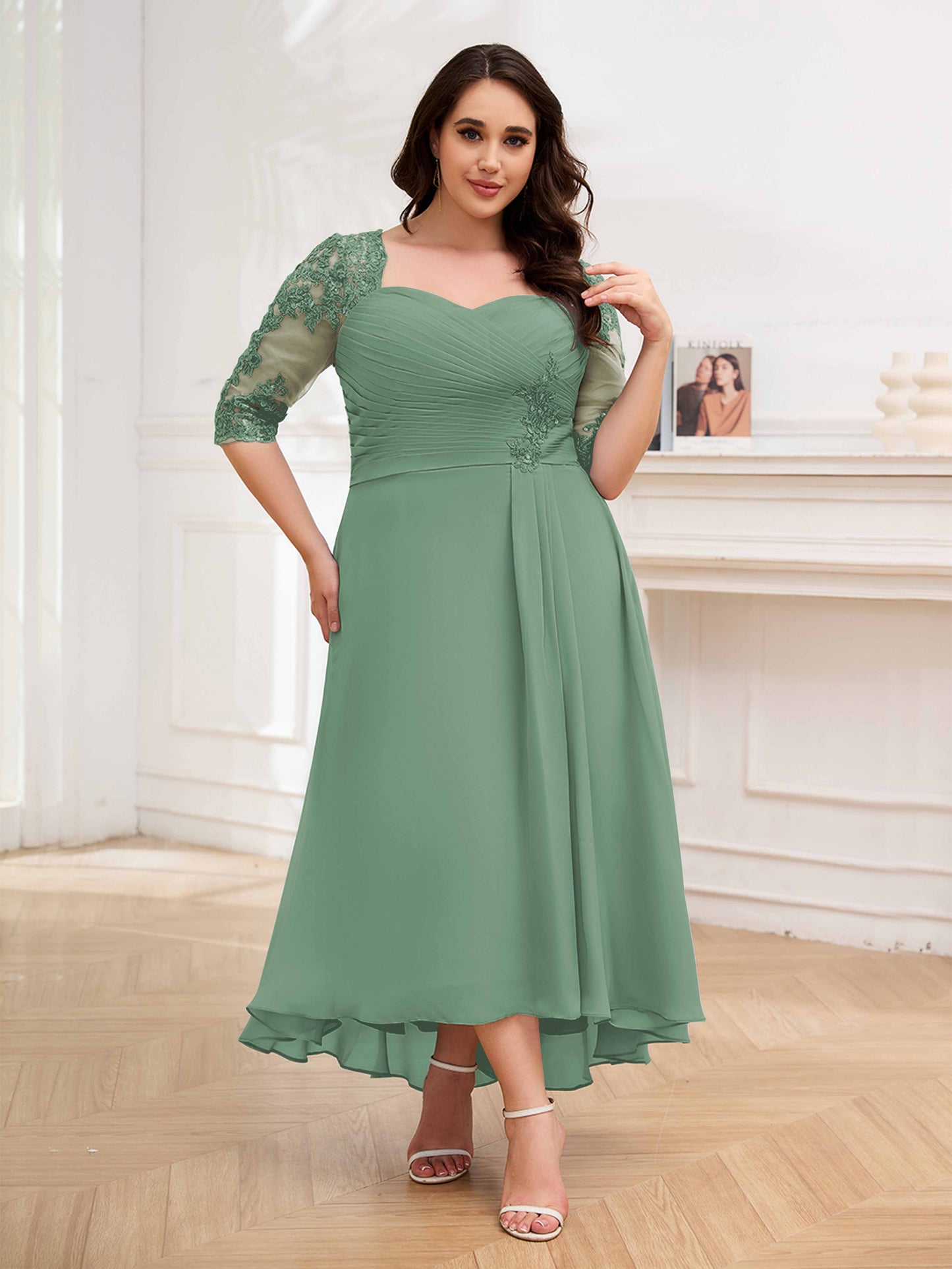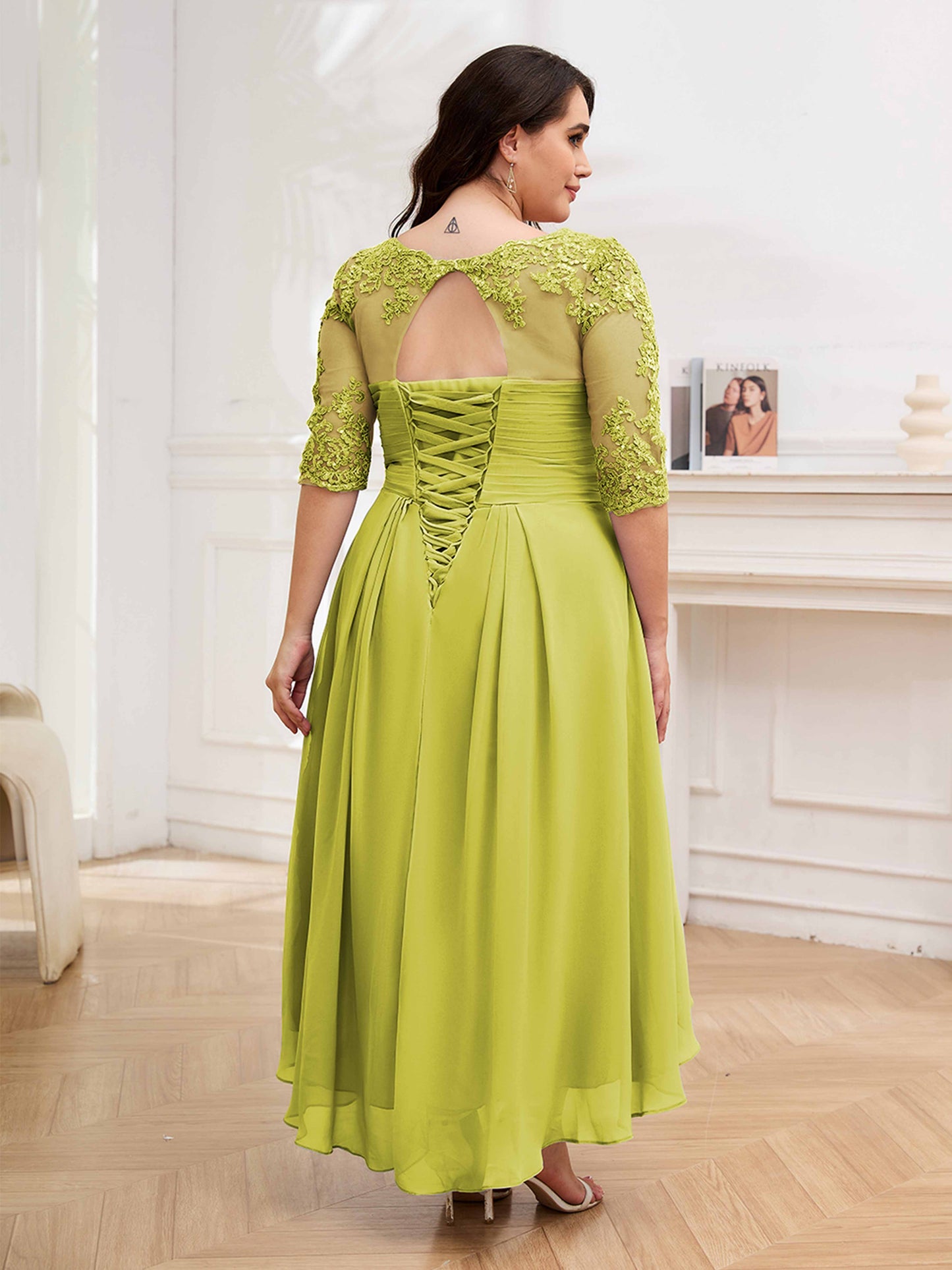 Vibrant Ruched Lace Chiffon Plus Size Mother Of The Bride Dresses UK