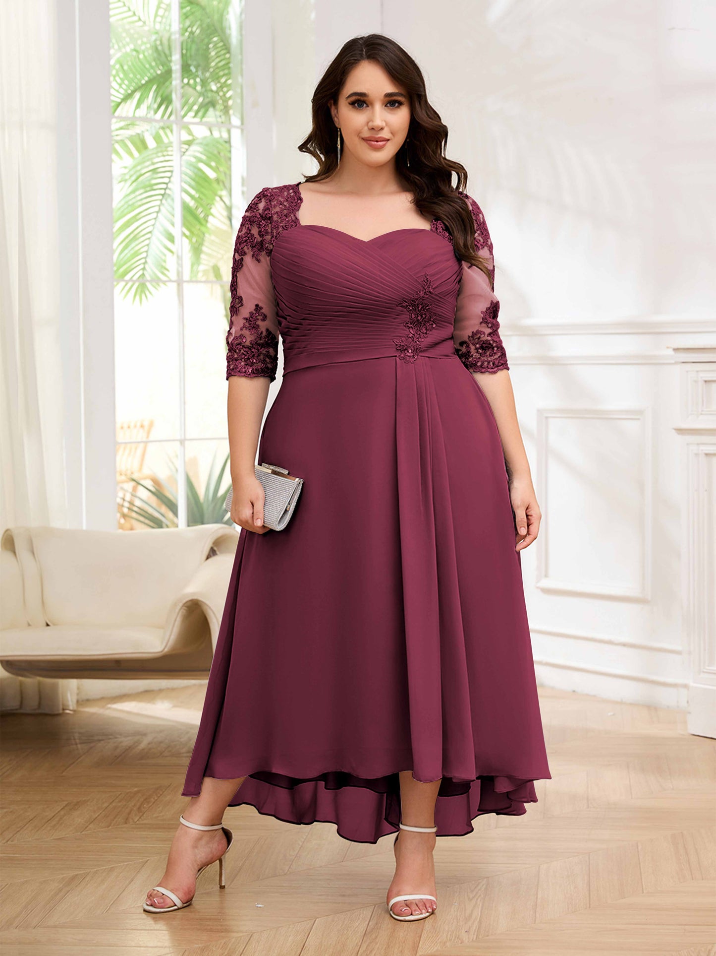 • Radiate vibrancy with this ruched lace chiffon mother of the bride dress. Designed for UK plus-size women, this dress offers a flattering silhouette and bold color. Perfect for a lively wedding, this dress will make you look stunning.