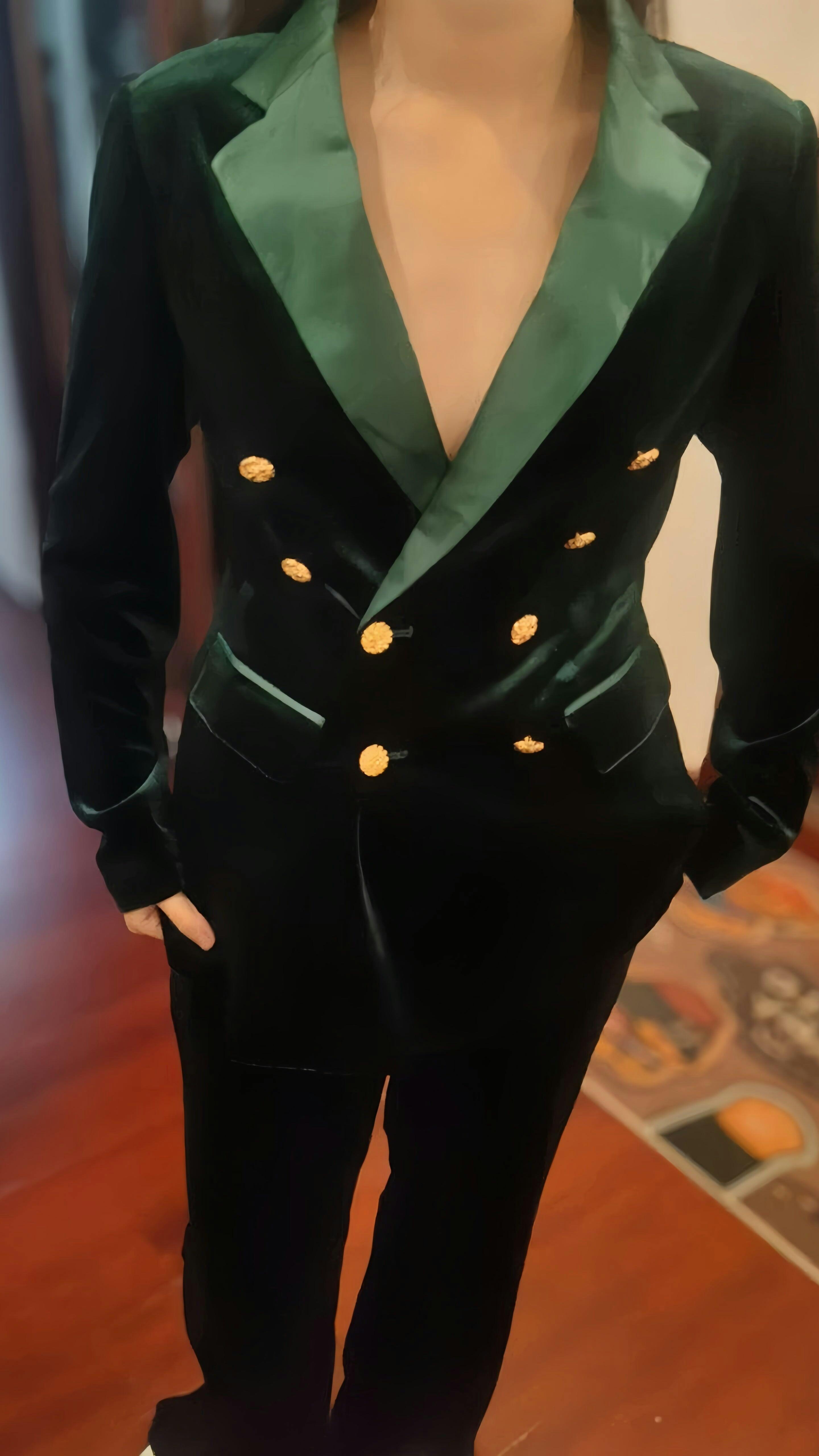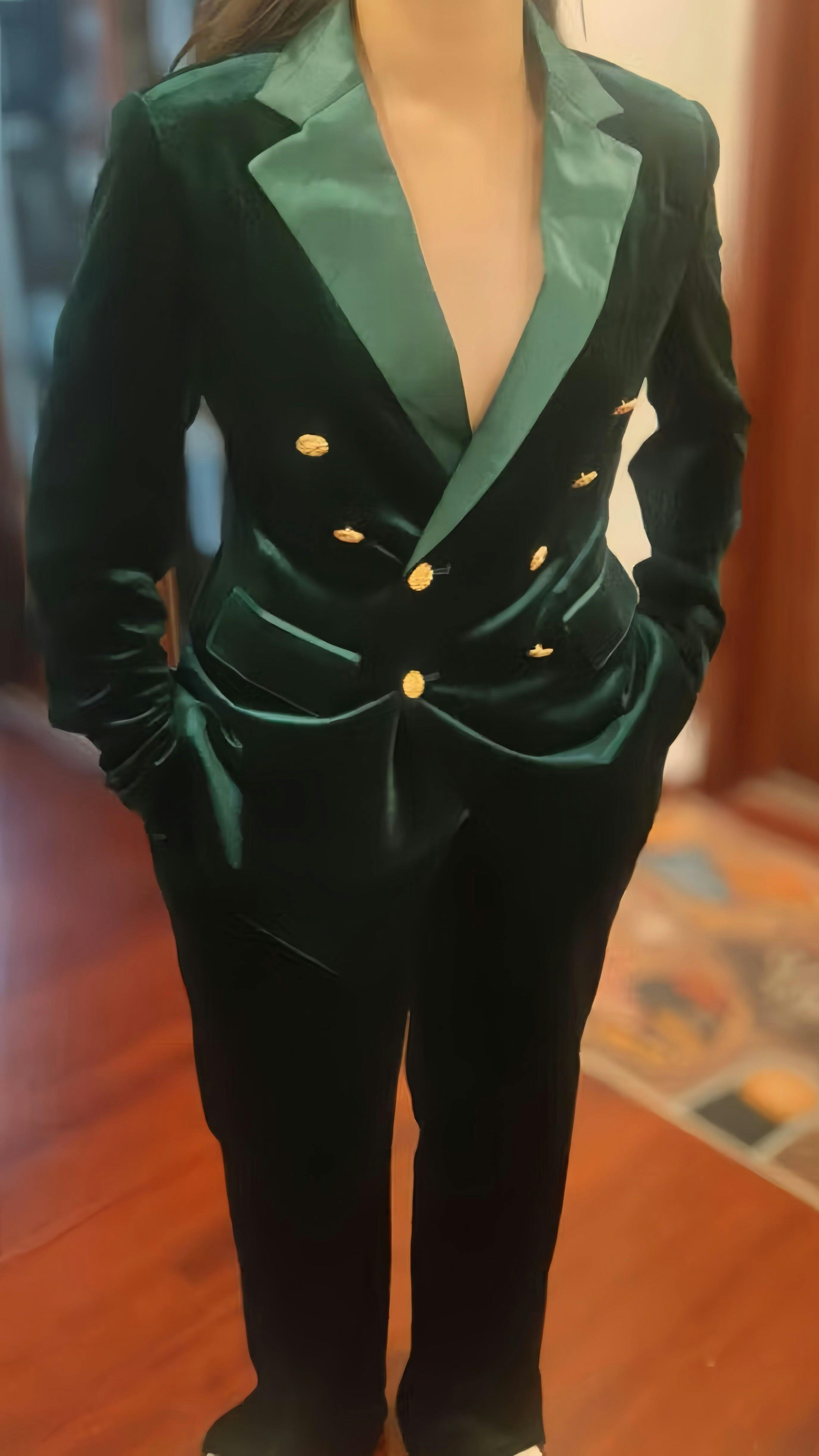 Women's Suits 2 Pieces Slim Fit Double Breasted Velvet Suits for Casual Chic UK