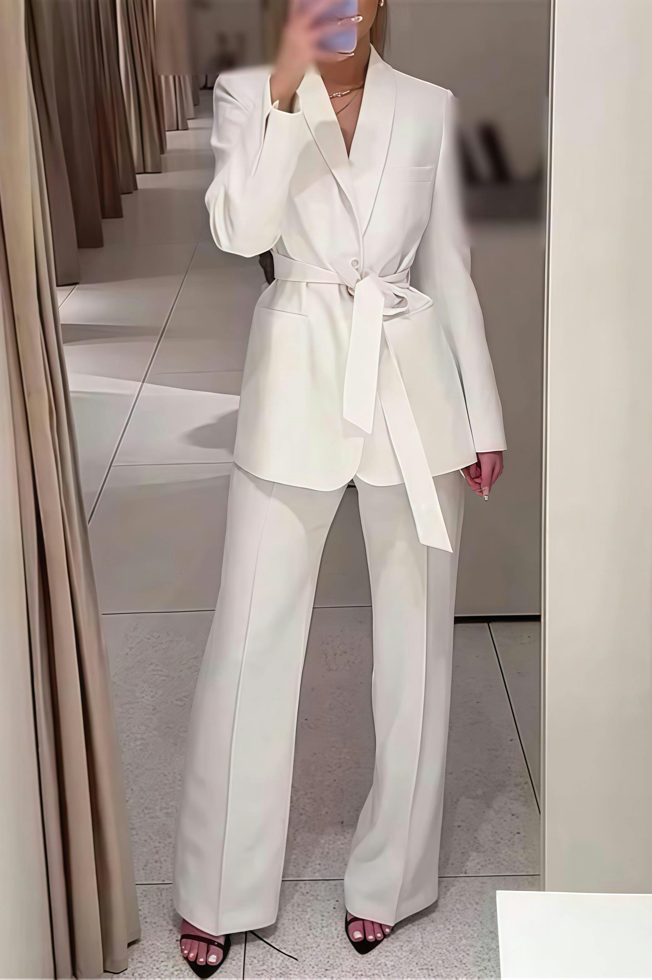 Women's Suits 2 Pieces Wide-Leg Shawl Lapel Suits with Belt for Urban Women UK